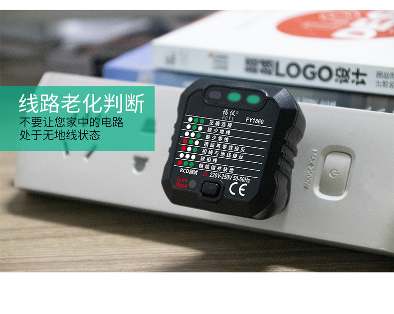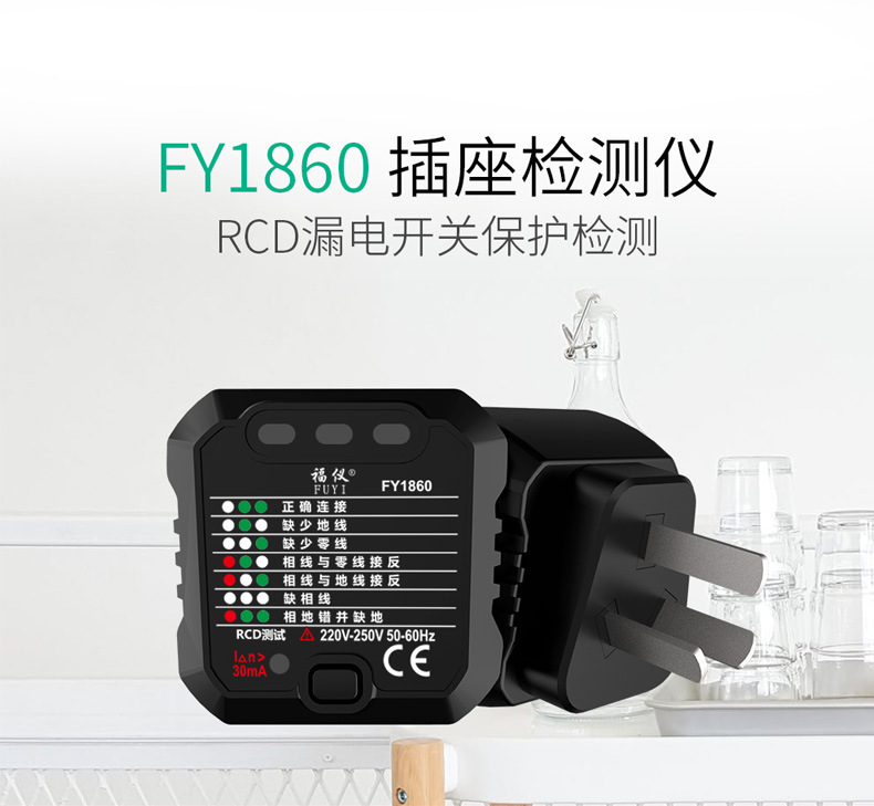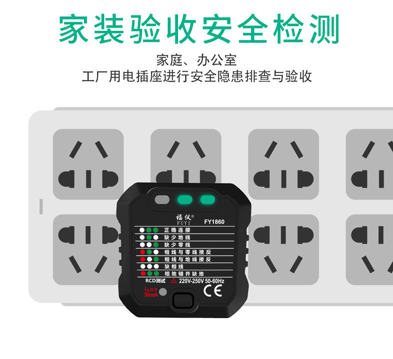Fuyi 소켓 테스터 접지 와이어 중립 와이어 라이브 와이어 위상 극성 누설 탐지기 다기능 전기 현미경스토어 가기