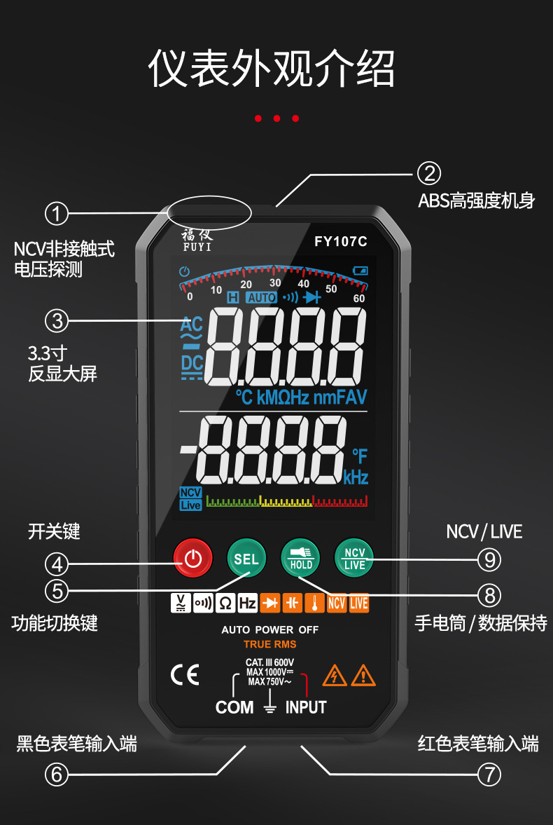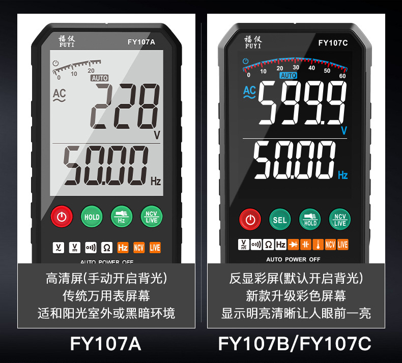 • FY107C [새로운 컬러 대형 스크린 멀티미터] 자동 + 수동 듀얼 모드