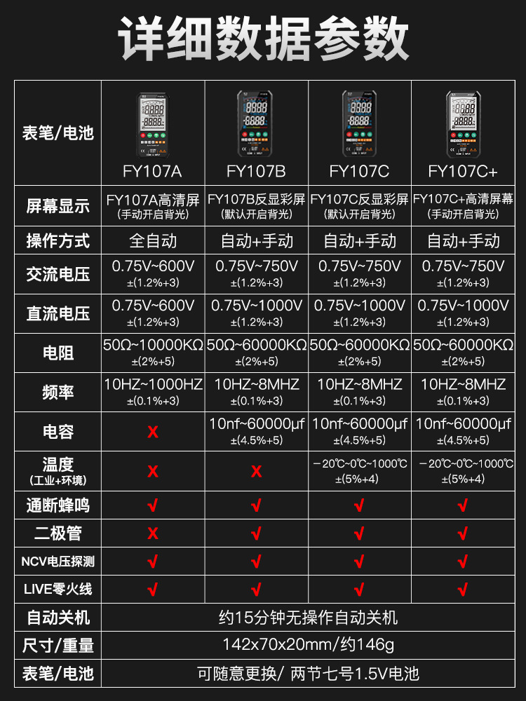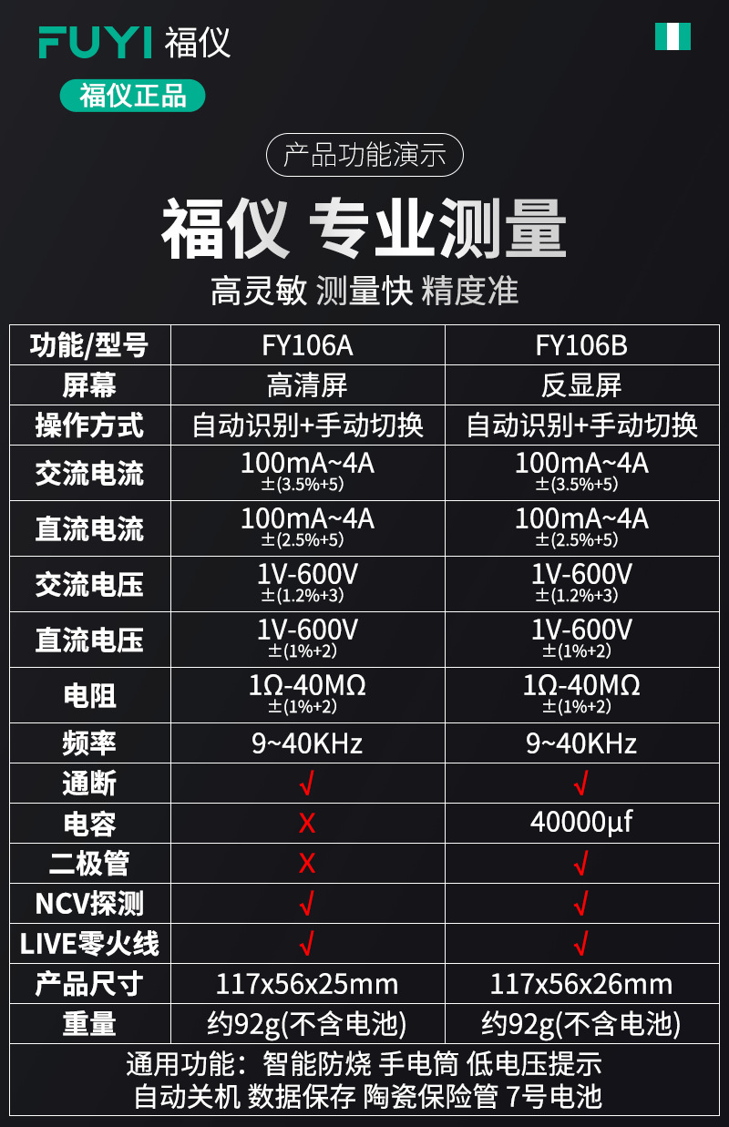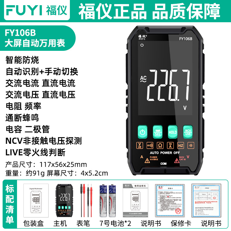 • FY106A 새로운 대형 화면 [새 멀티미터] 전류/전압 + 특수 팁 펜 자동 + 수동