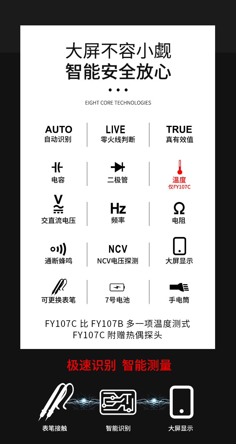 • FY107A [신형 고화질 대형 스크린 멀티미터] 완전 자동 식별