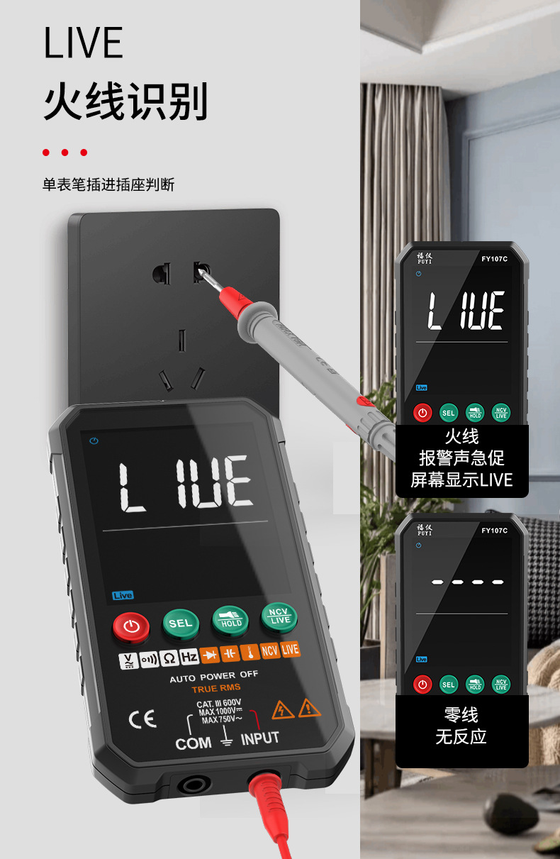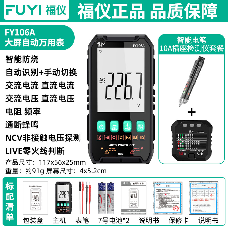 • FY106A 새로운 대형 화면 [새 멀티미터] 전류/전압 + 전기 펜 + 소켓 감지기 자동 + 수동