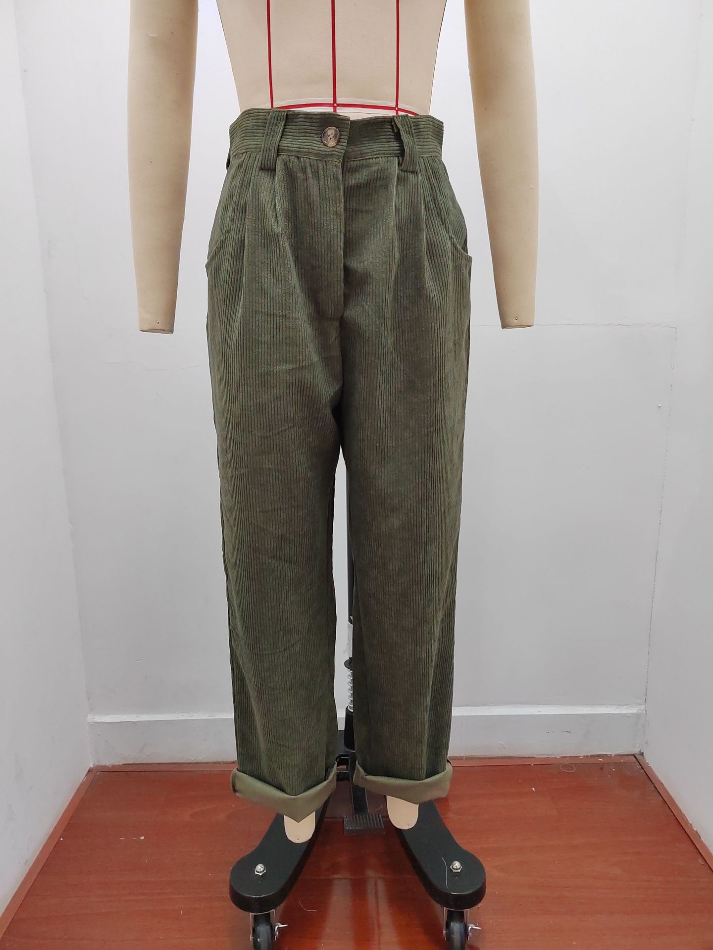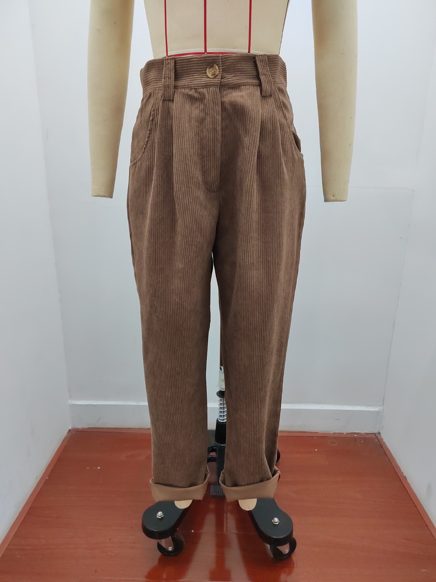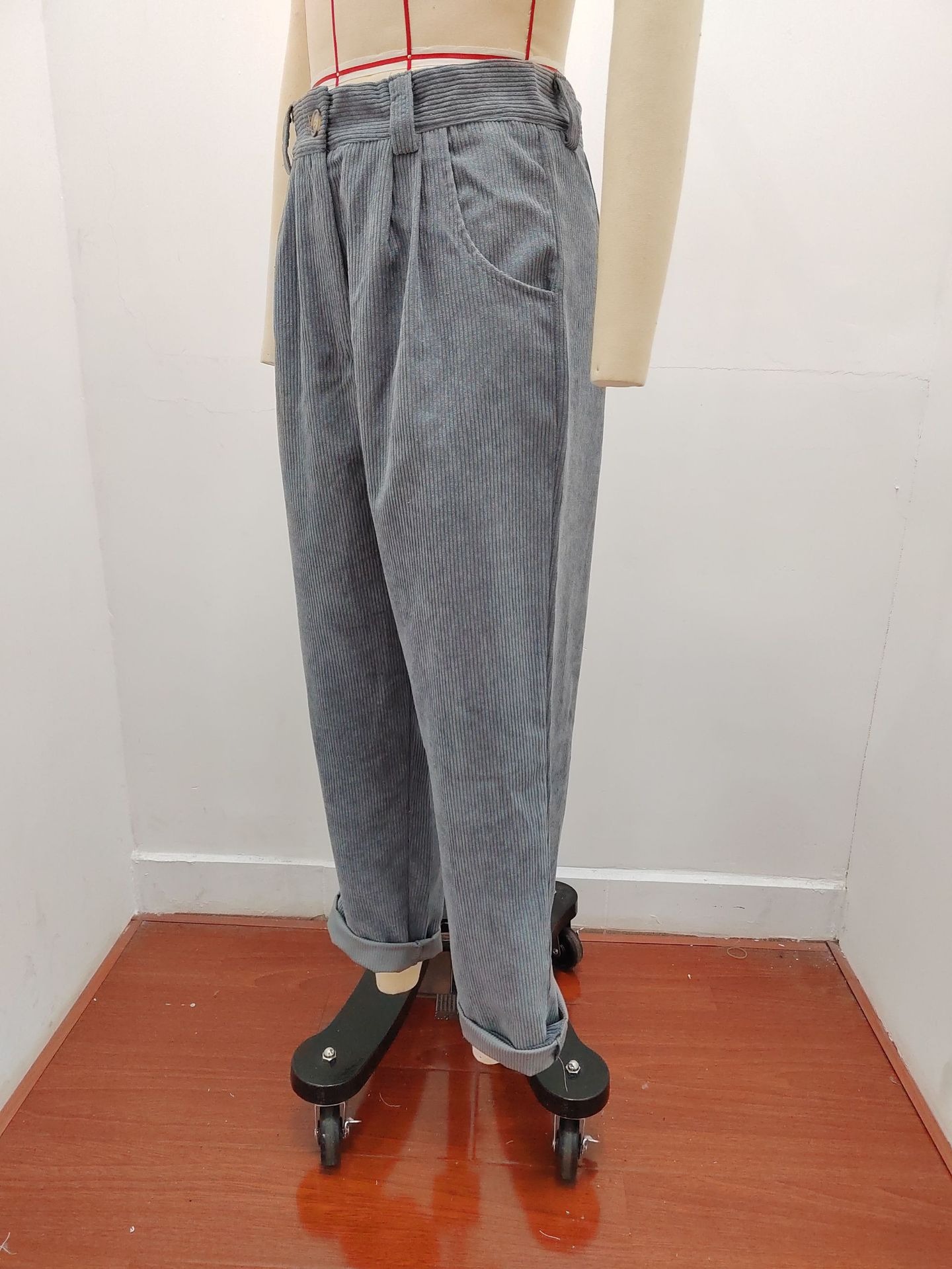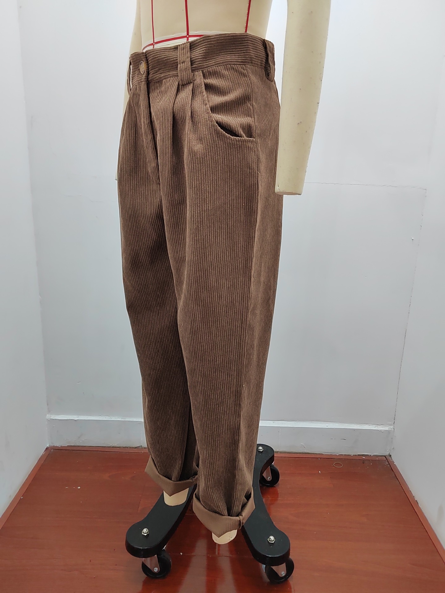 봄과 여름 2025 TEMU 아마존 국경 유럽과 미국의 새로운 캐주얼 하이 웨이스트 코듀로이 느슨한 직선 캐주얼 바지스토어 가기