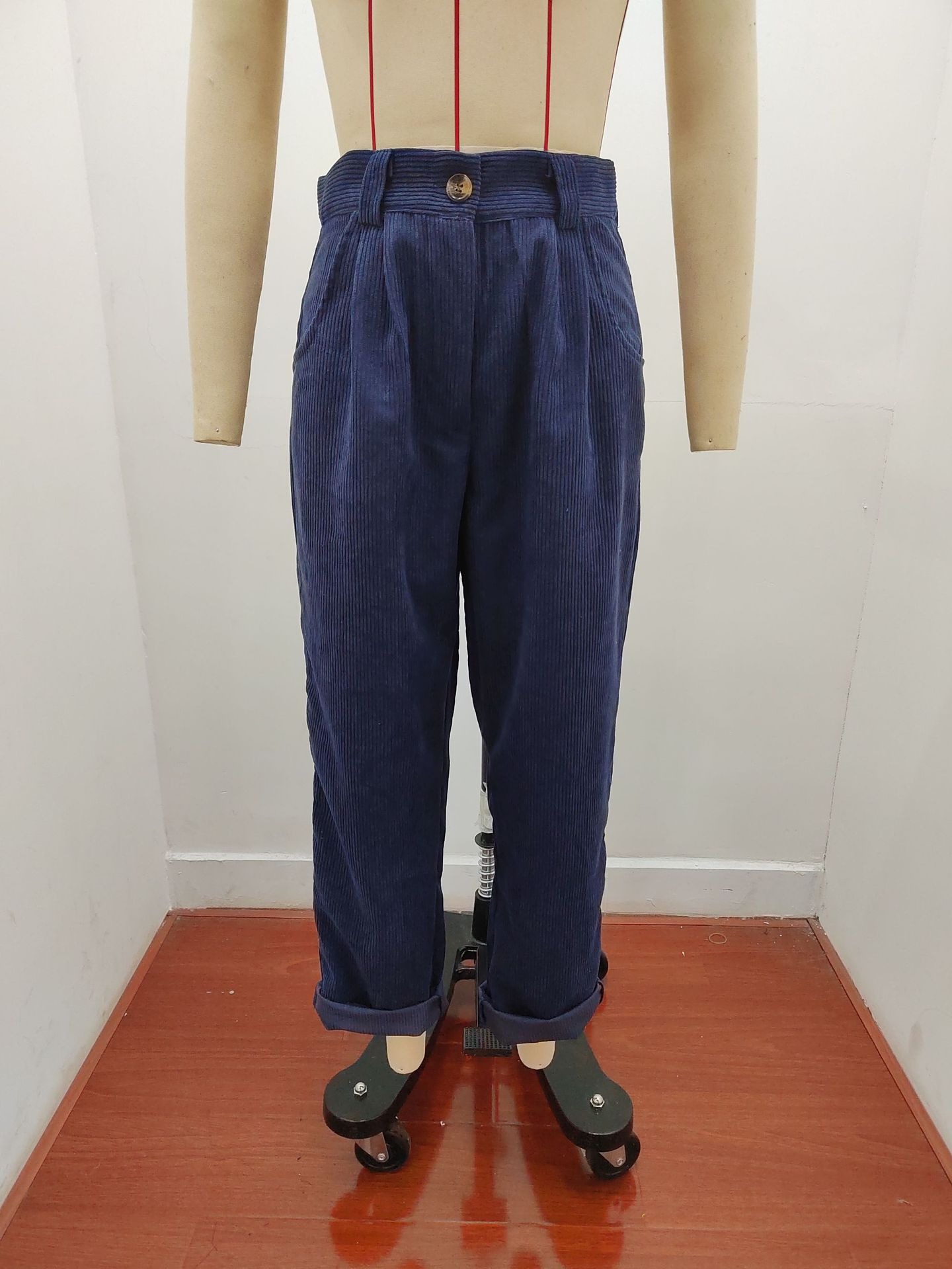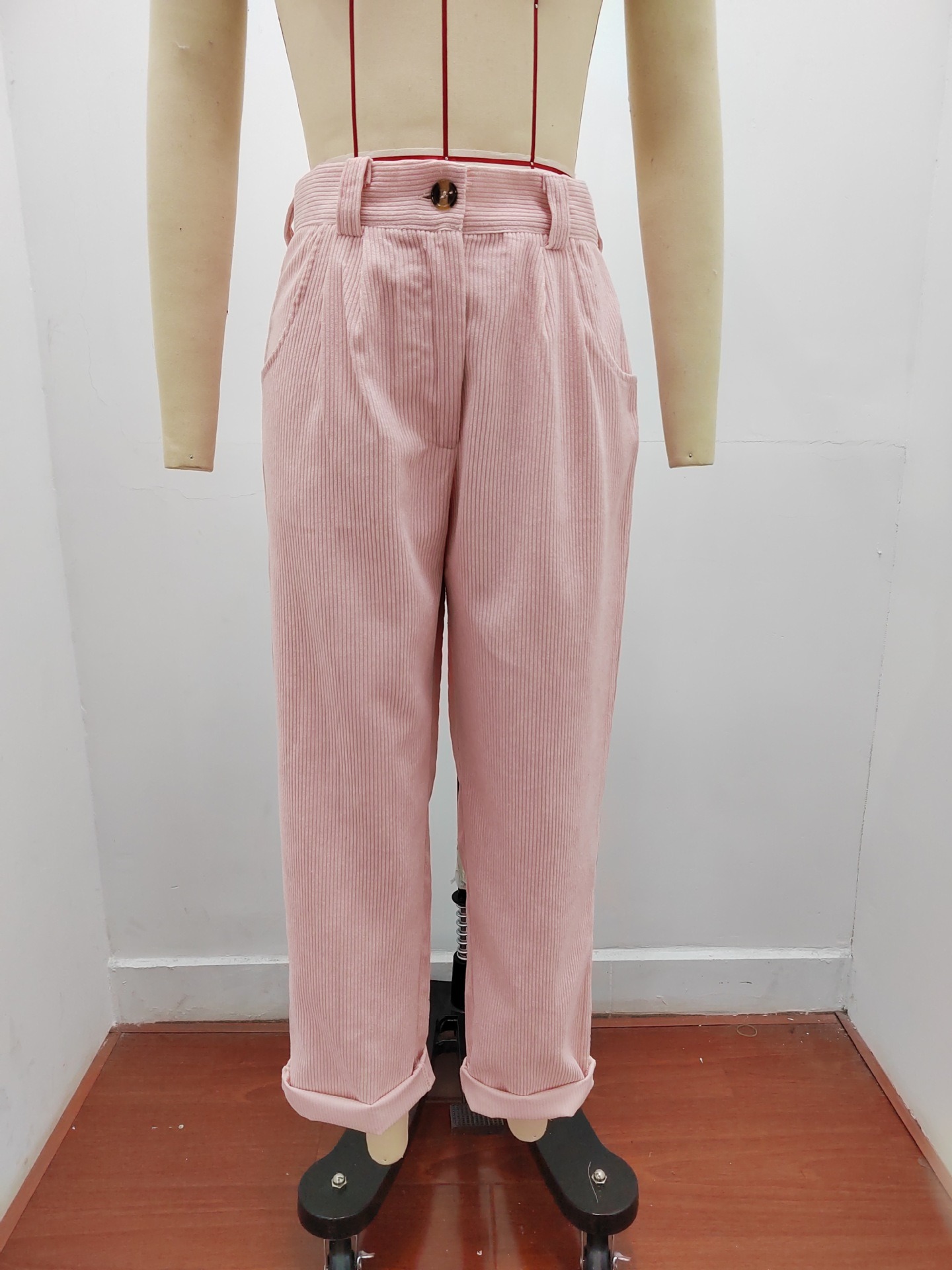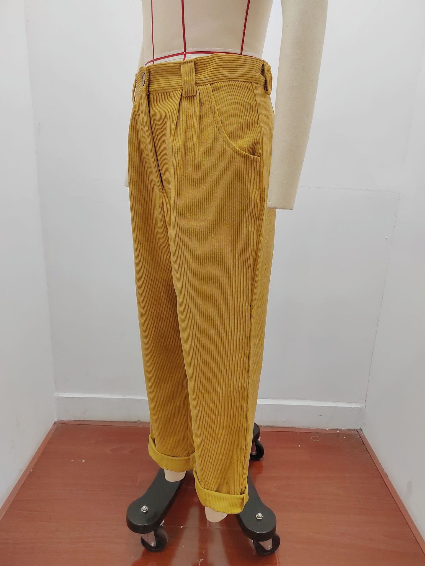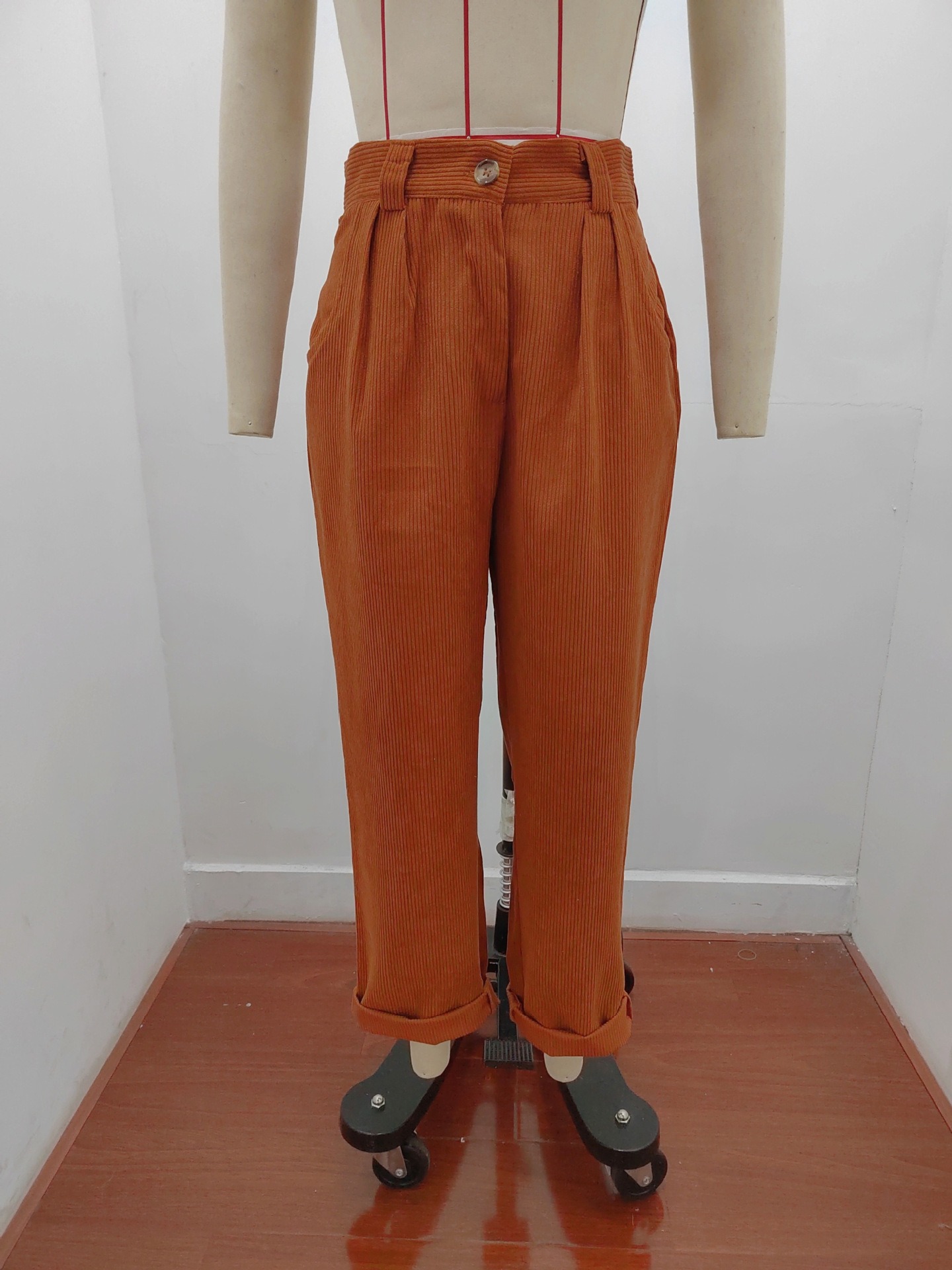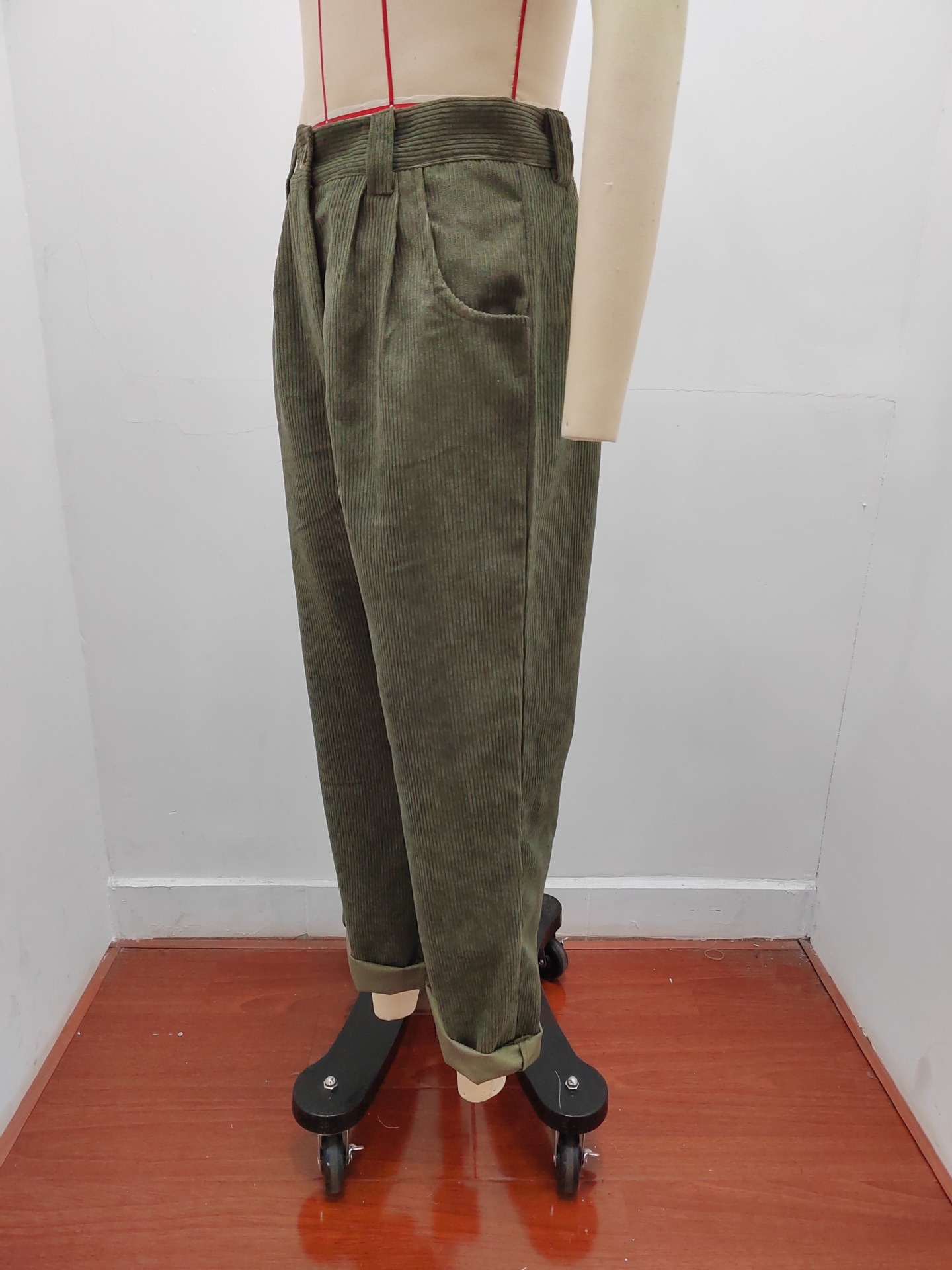 봄과 여름 2025 TEMU 아마존 국경 유럽과 미국의 새로운 캐주얼 하이 웨이스트 코듀로이 느슨한 직선 캐주얼 바지스토어 가기