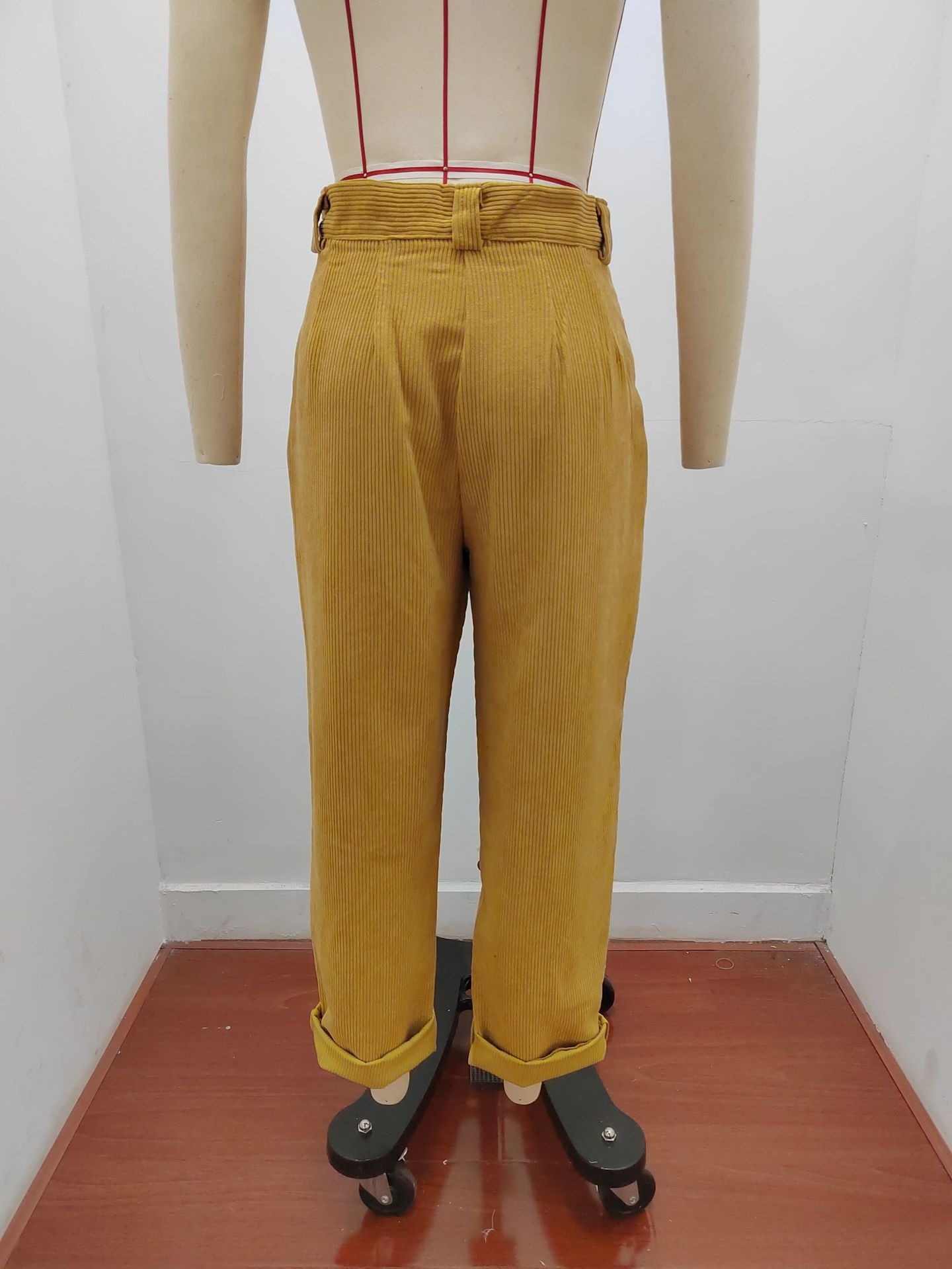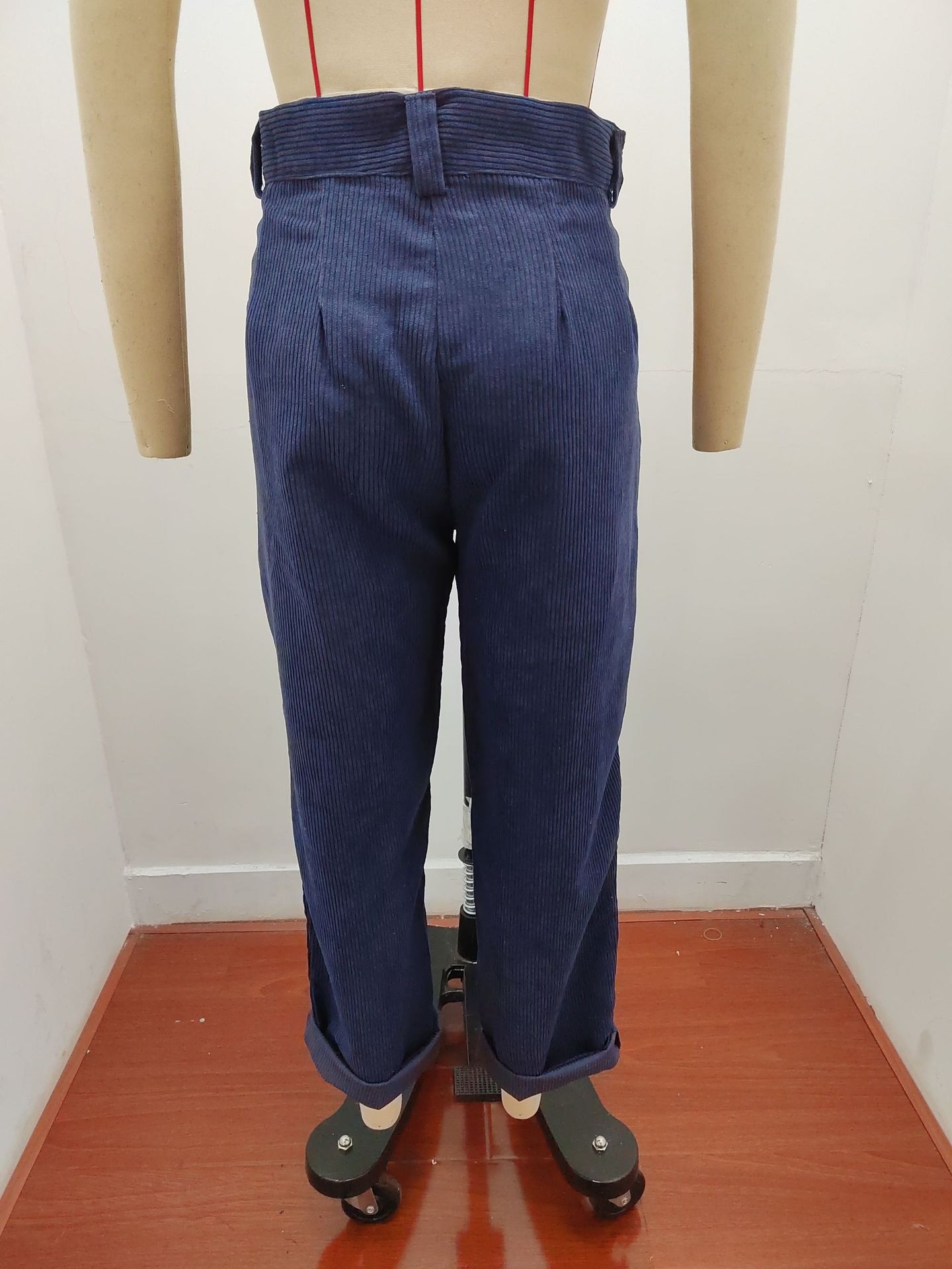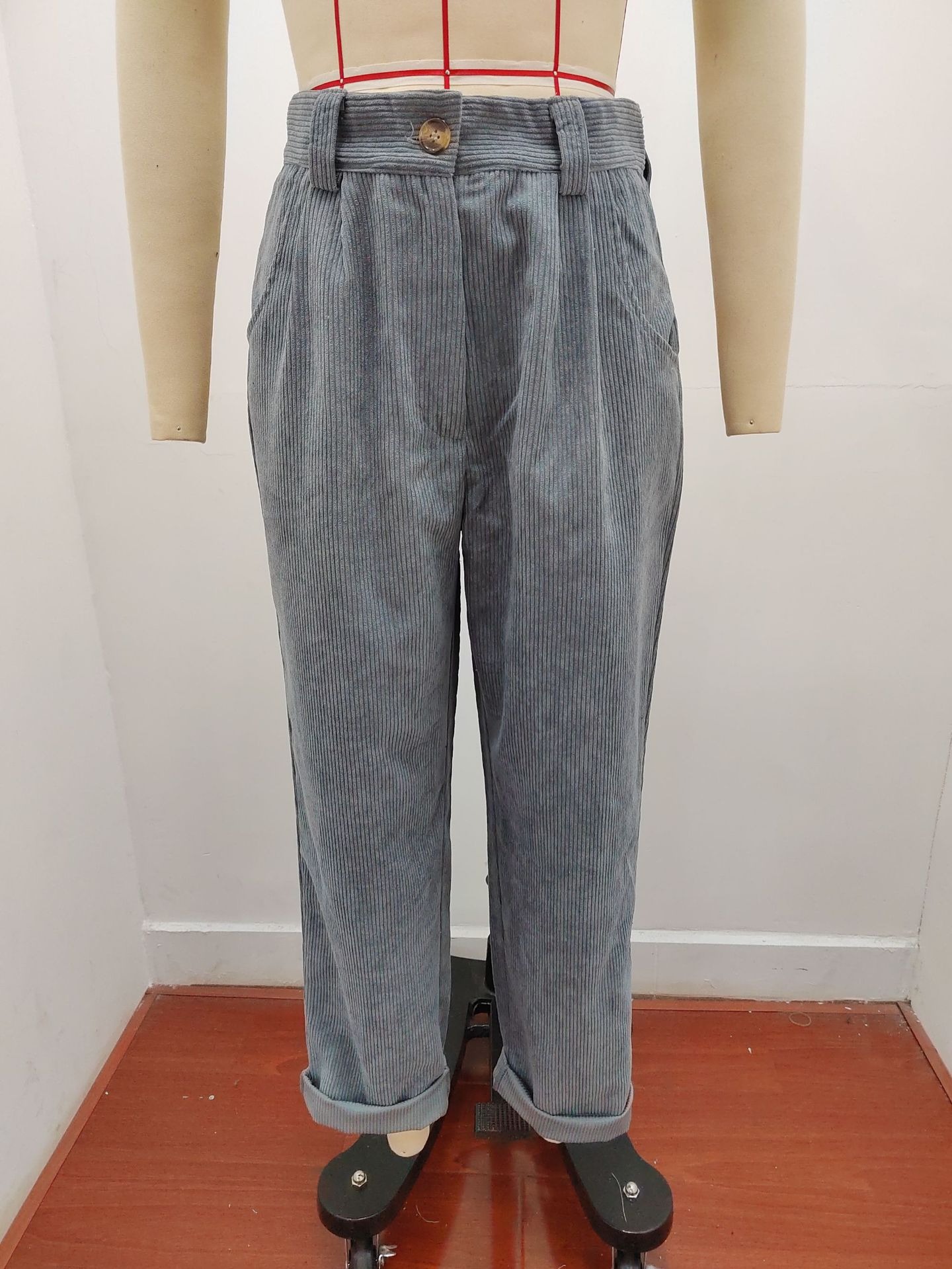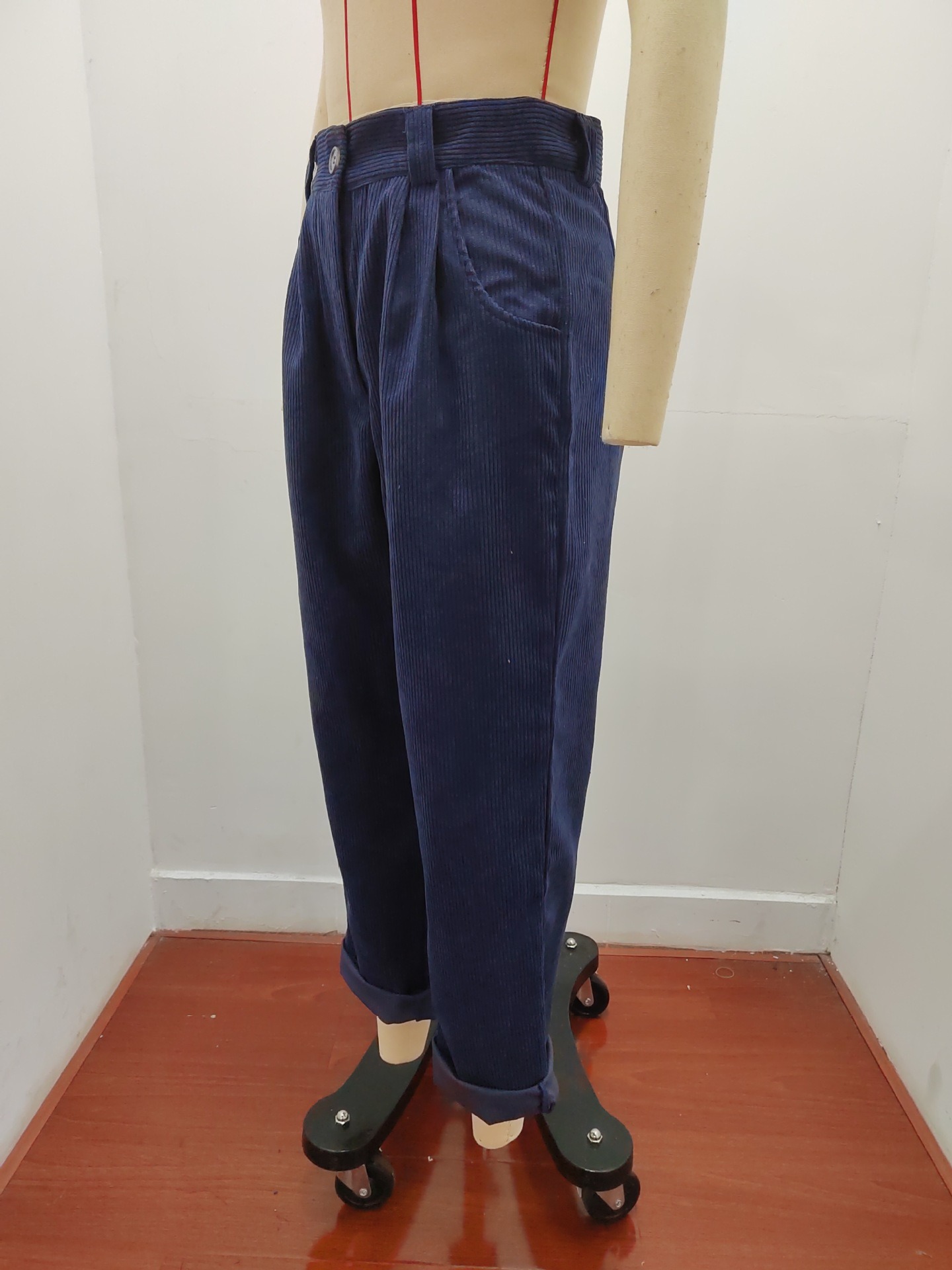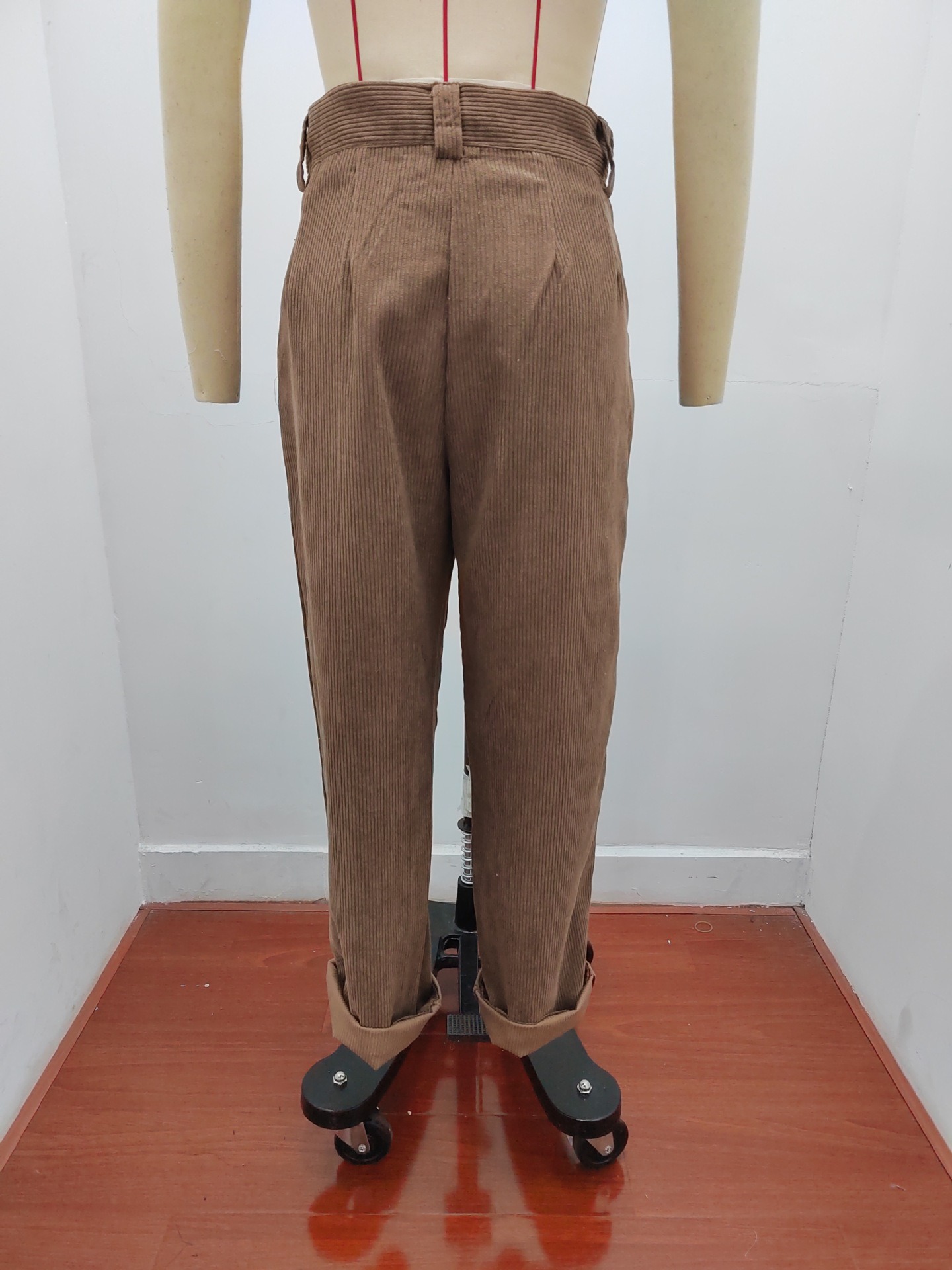 봄과 여름 2025 TEMU 아마존 국경 유럽과 미국의 새로운 캐주얼 하이 웨이스트 코듀로이 느슨한 직선 캐주얼 바지