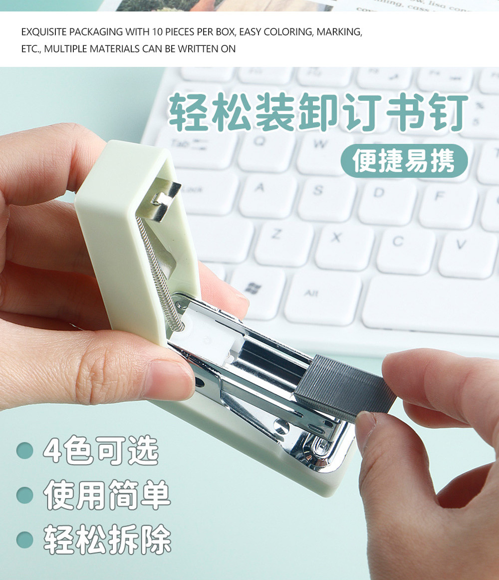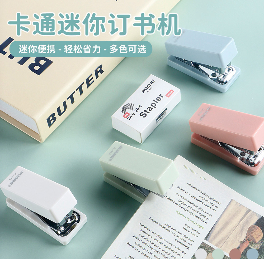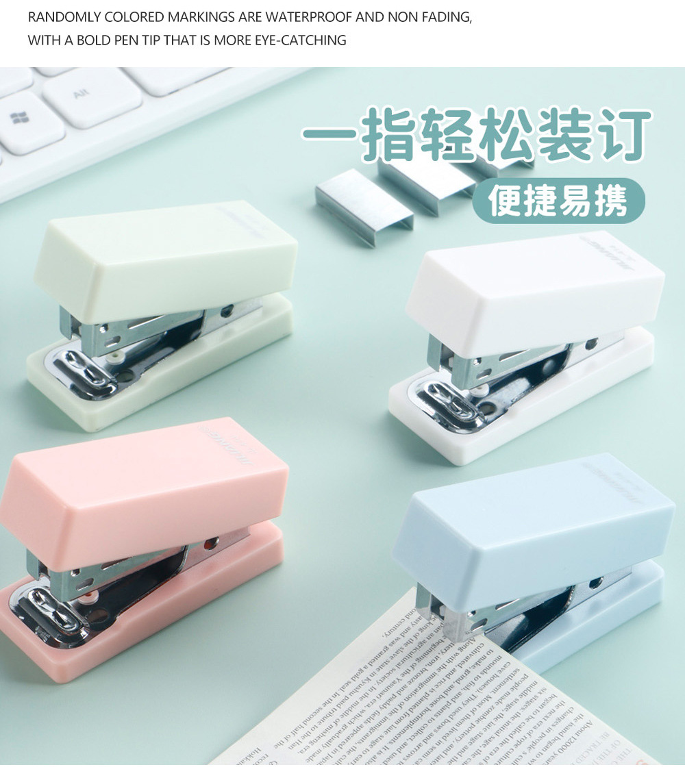 휴대용 미니 스테이플러 세트 스몰 사이즈 학생 포켓 테스트 종이 바인딩 기계 간단한 스테이플러 문구 도매스토어 가기
