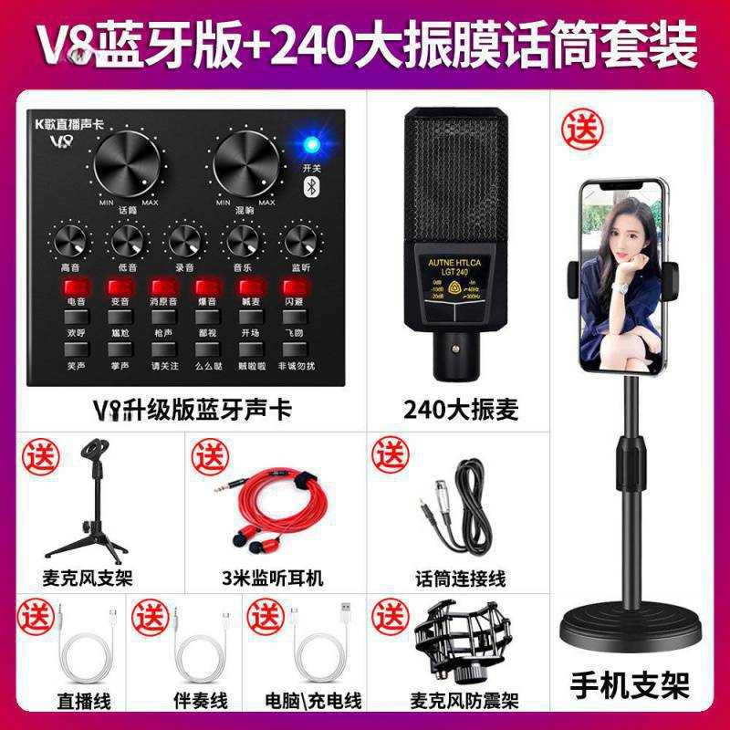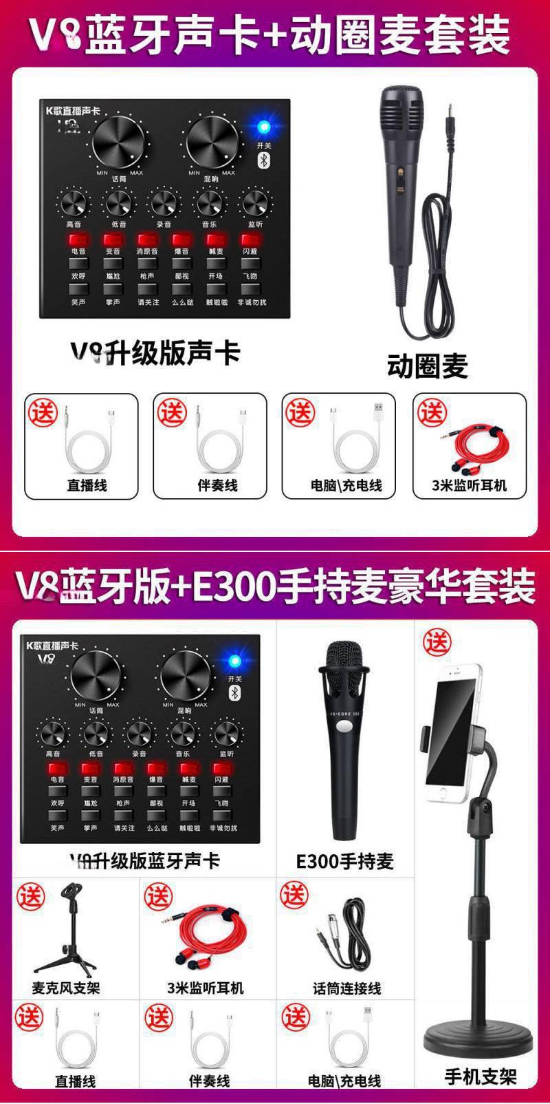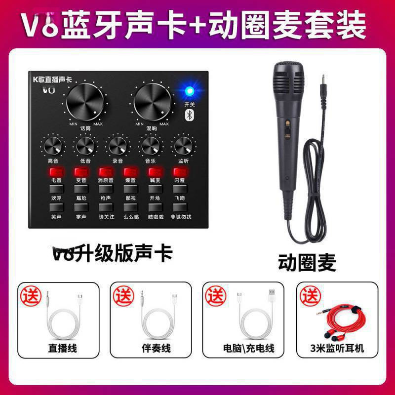 • V8 블루투스 사운드 카드 + 다이나믹 마이크 세트