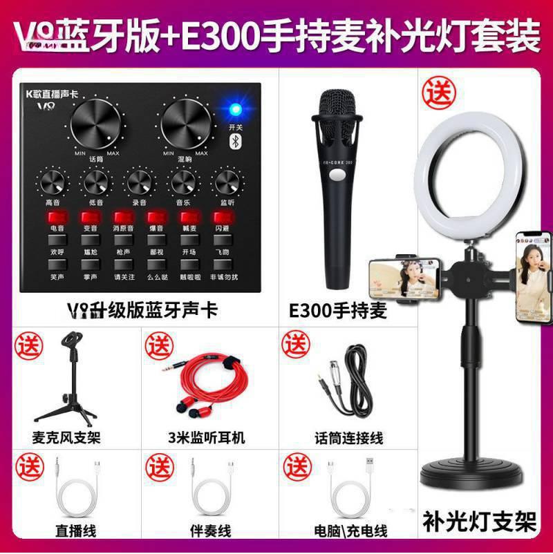새로운 라이브 방송 사운드 카드 세트 모든 민요 앵커 라이브 방송 장비 전체 앵커 사운드 카드 E300 마이크 생성스토어 가기