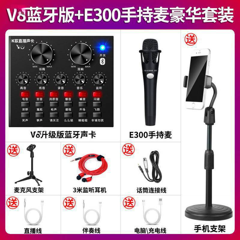 새로운 라이브 방송 사운드 카드 세트 모든 민요 앵커 라이브 방송 장비 전체 앵커 사운드 카드 E300 마이크 생성