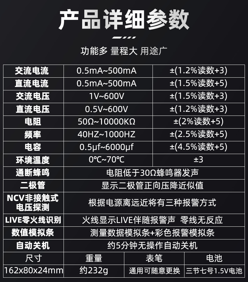 Fuyi 초박형 멀티 미터 디지털 고정밀 다기능 자동 디지털 디스플레이 유지 보수 전기 범용 미터 전체 지능스토어 가기