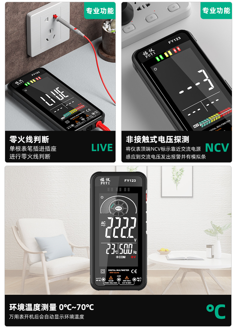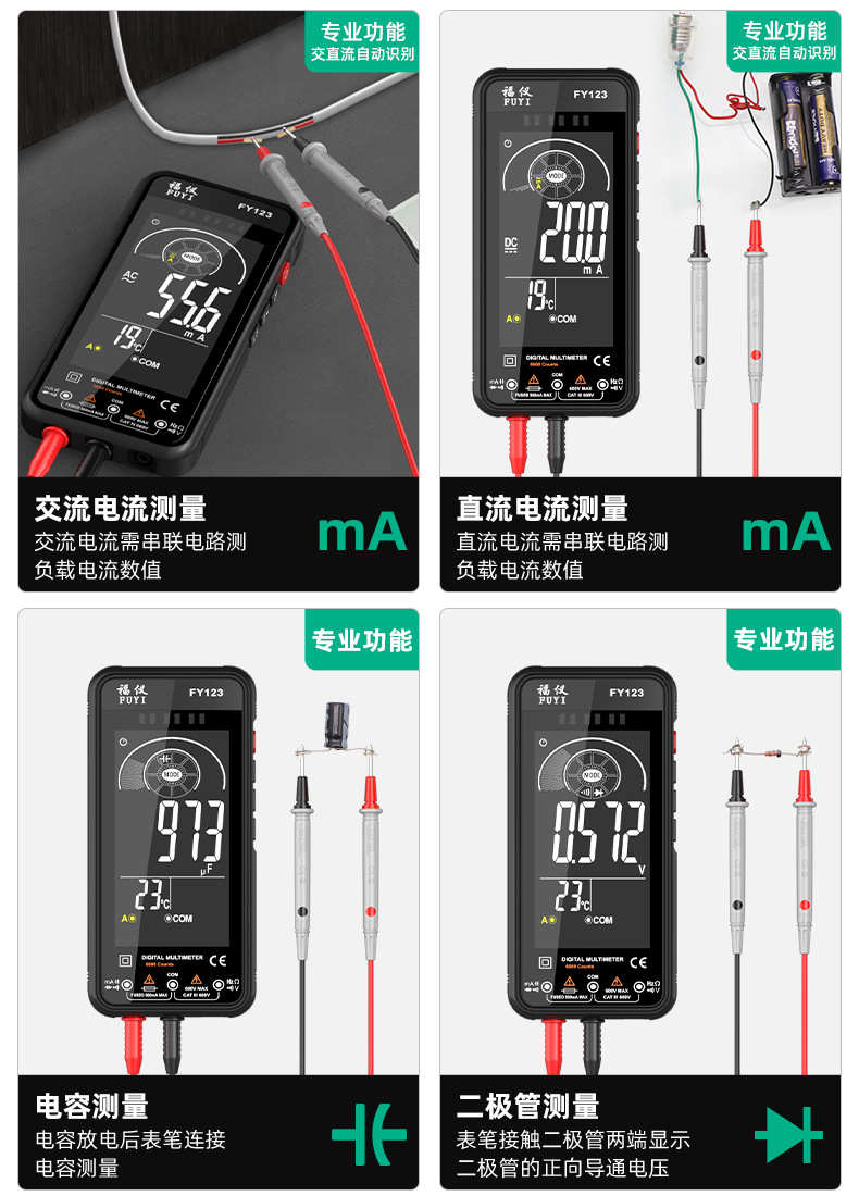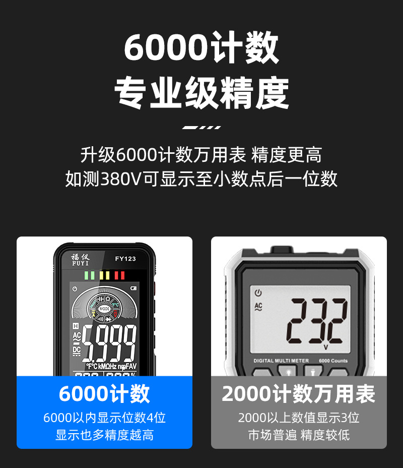 Fuyi 초박형 멀티 미터 디지털 고정밀 다기능 자동 디지털 디스플레이 유지 보수 전기 범용 미터 전체 지능