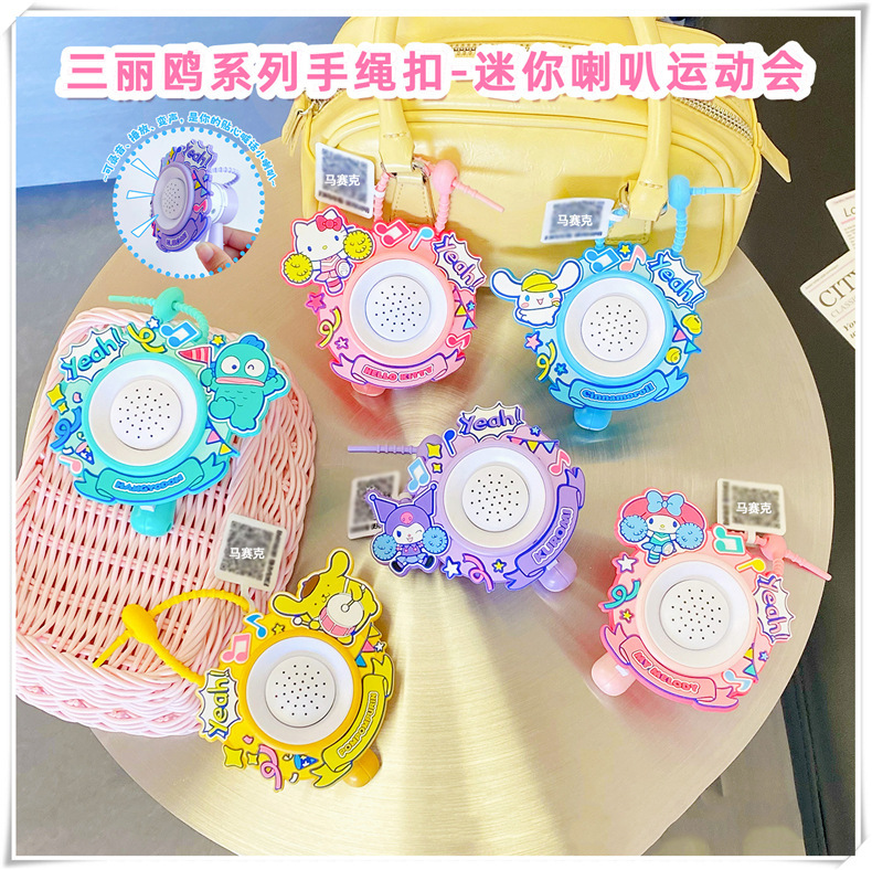 정품 Sanrio 시리즈 녹음 경적 키 체인 Kulomi Schoolbag 펜던트 체인 인형 기계 장난감 도매스토어 가기