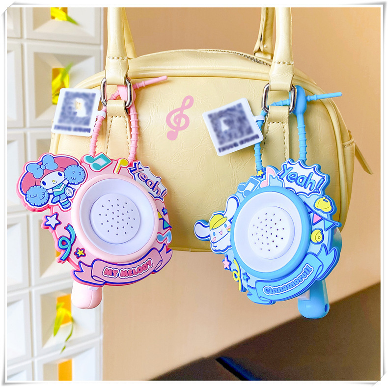 정품 Sanrio 시리즈 녹음 경적 키 체인 Kulomi Schoolbag 펜던트 체인 인형 기계 장난감 도매