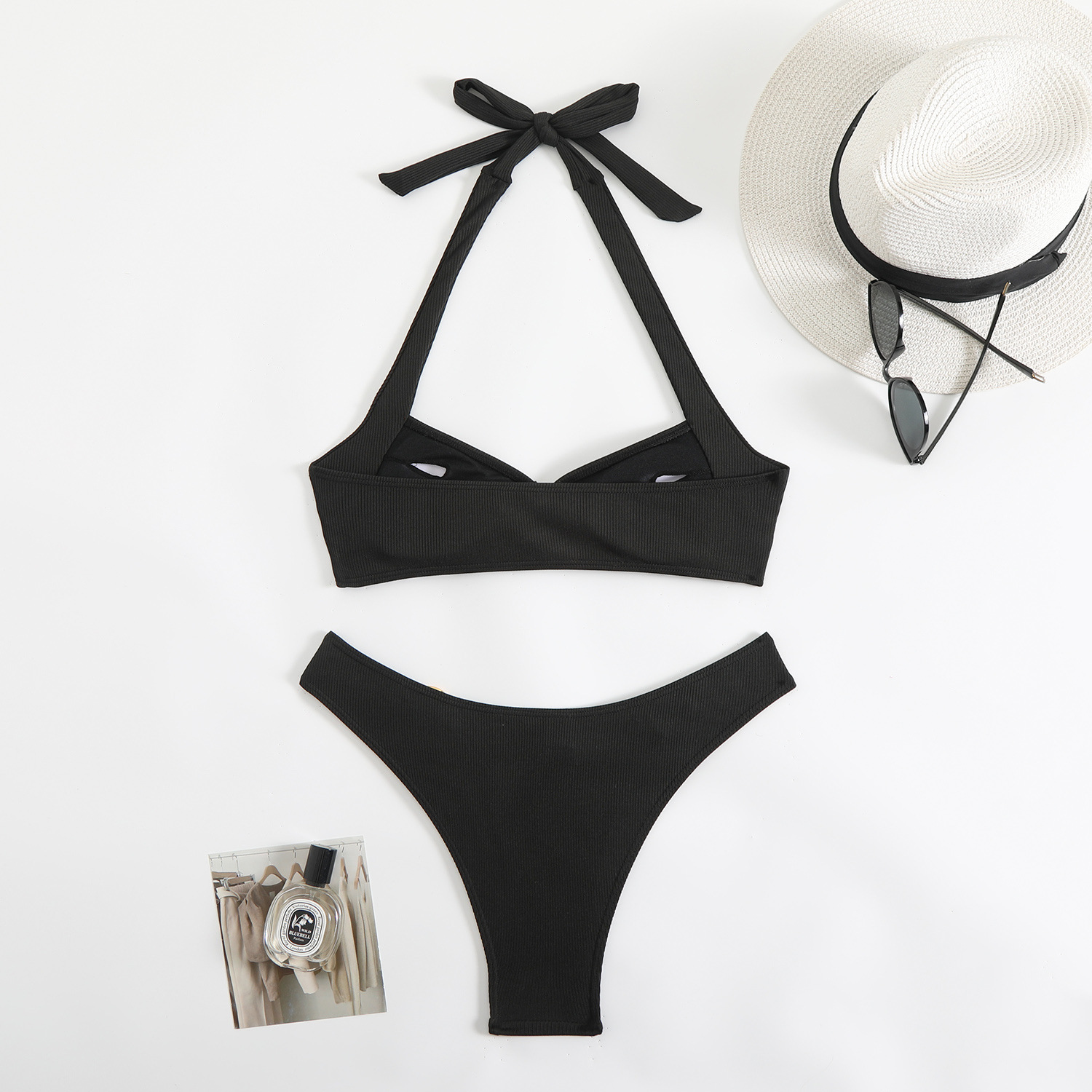 Langxin 2025 새로운 유럽 및 미국 국경 단색 분할 수영복 섹시한 백리스 핏 비키니 수영복 비키니