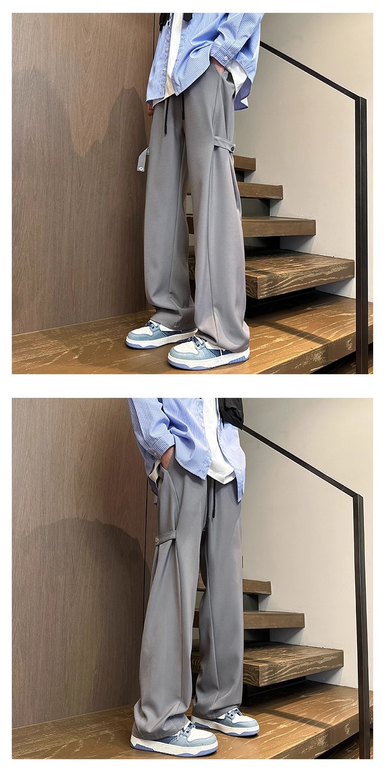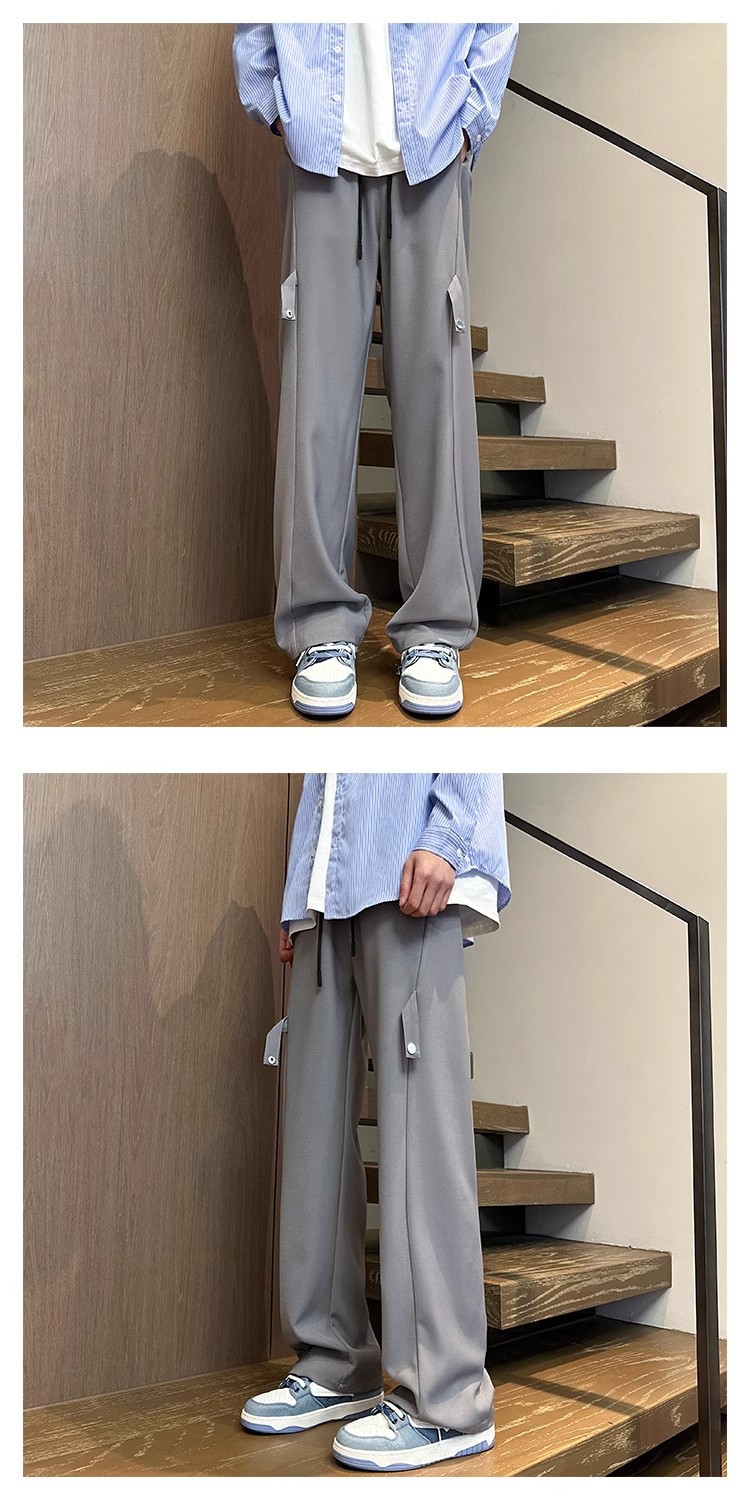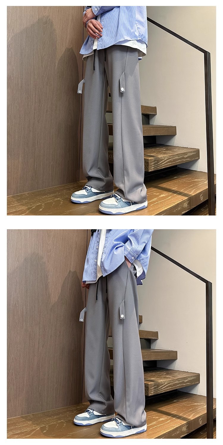 아메리칸 스타일 땀 바지 남성용 느슨한 틈새 디자인 고급 센스 솔리드 컬러 에어 레이어 올 매치 와이드 레그 팬츠 스트레이트 레그 바지 캐주얼 바지스토어 가기