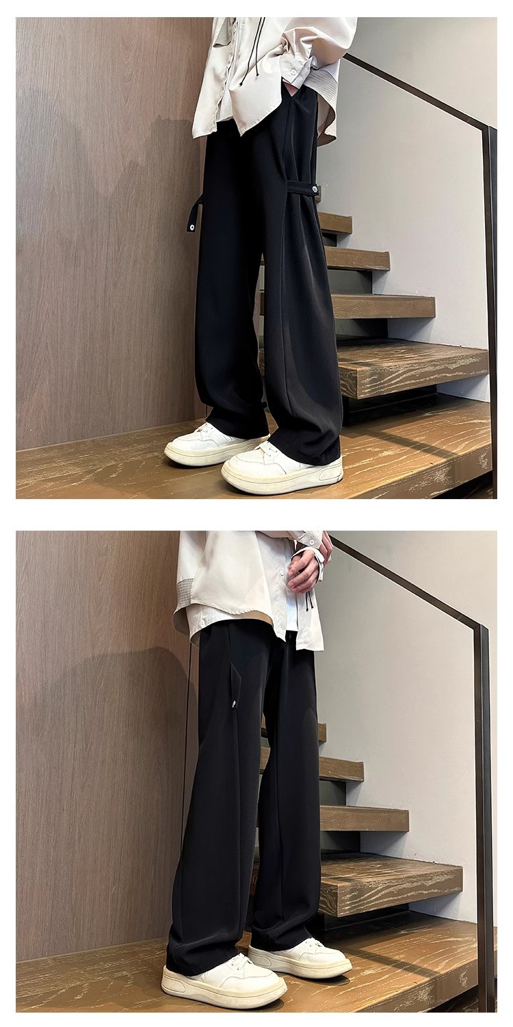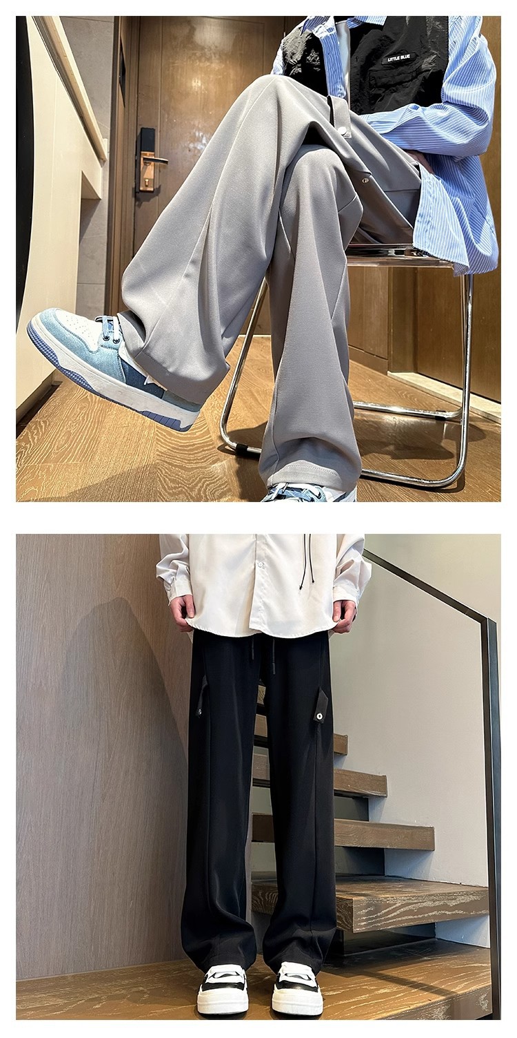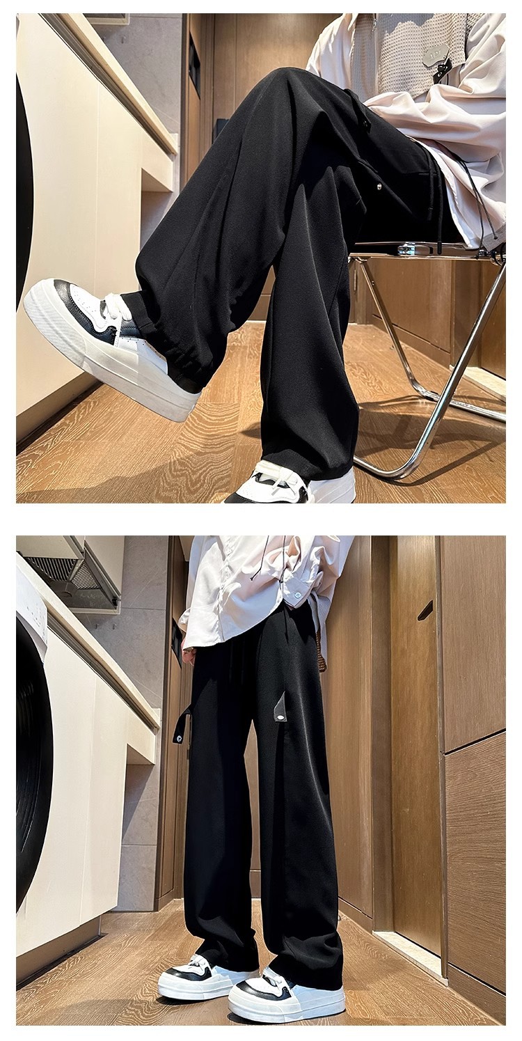아메리칸 스타일 땀 바지 남성용 느슨한 틈새 디자인 고급 센스 솔리드 컬러 에어 레이어 올 매치 와이드 레그 팬츠 스트레이트 레그 바지 캐주얼 바지스토어 가기