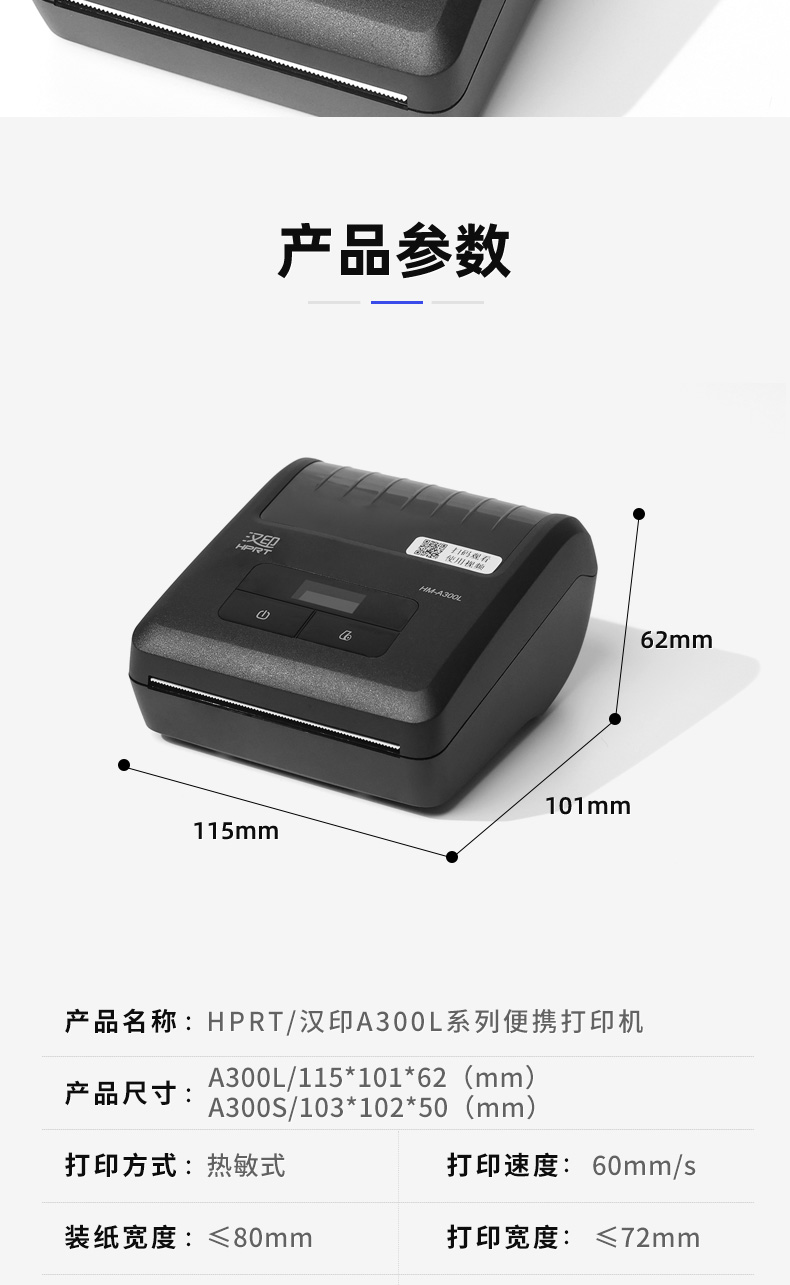 Hanyin A300L 택배 휴대용 창고 라벨 픽업 코드 휴대 전화 블루투스 범용 열 프린터