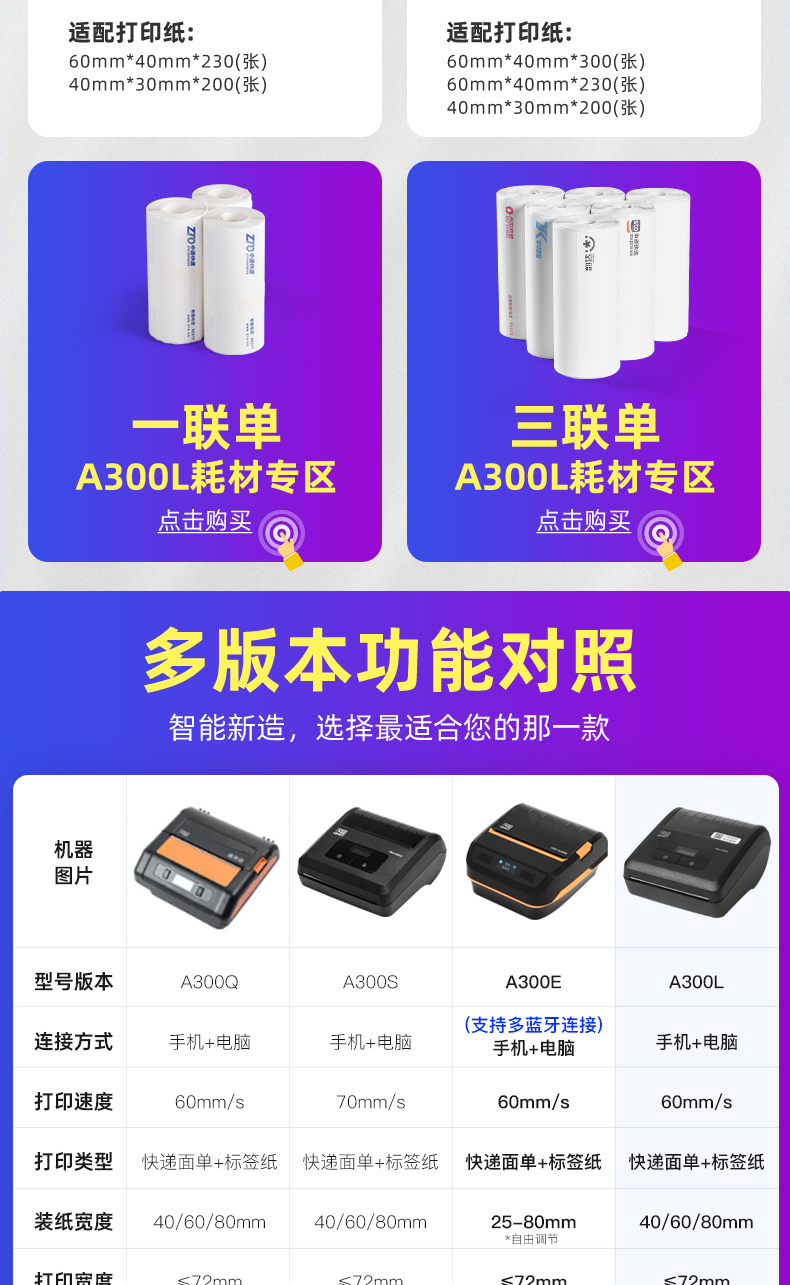 • A300L 역 유니버설 버전 + 허리 가방 + 클리닝 펜 + [40롤, 50매/롤] Yuantong 싱글 76*130mm