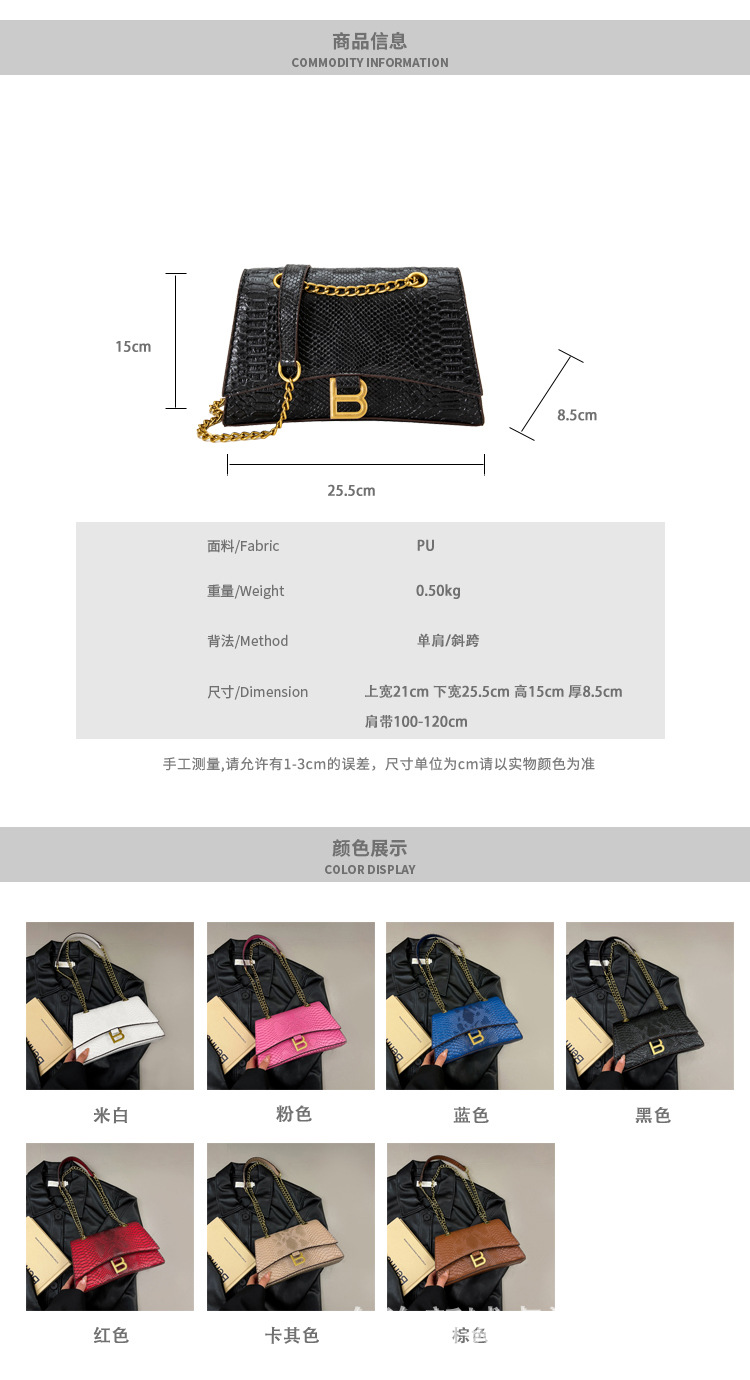 2024 새로운 국경 복고풍 가방 고급 질감 B 악어 패턴 체인 어깨 크로스 바디 여성용 가방스토어 가기