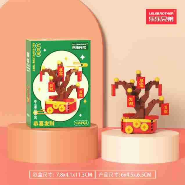 새해 오렌지 레드 봉투 현금 트리 랜턴 빌딩 블록 레고 축제 장식품과 호환되는 봄 축제 선물 도매