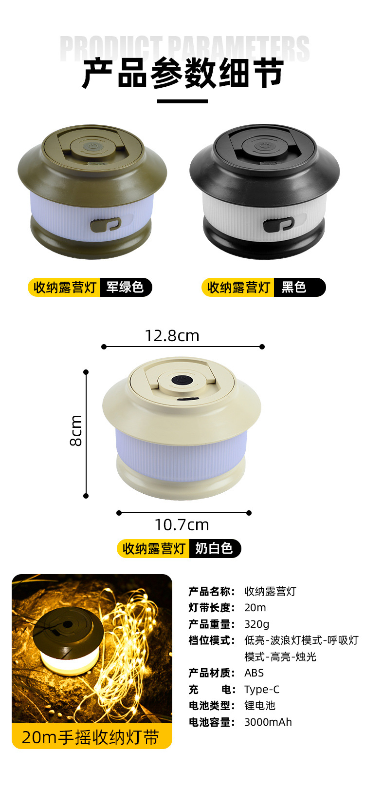 야외 캠핑 램프 텐트 테이프 측정 LED 램프 스트링 램프 조명 캠프 분위기 램프 휴대용 캠핑 다채로운 램프