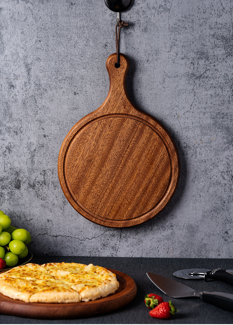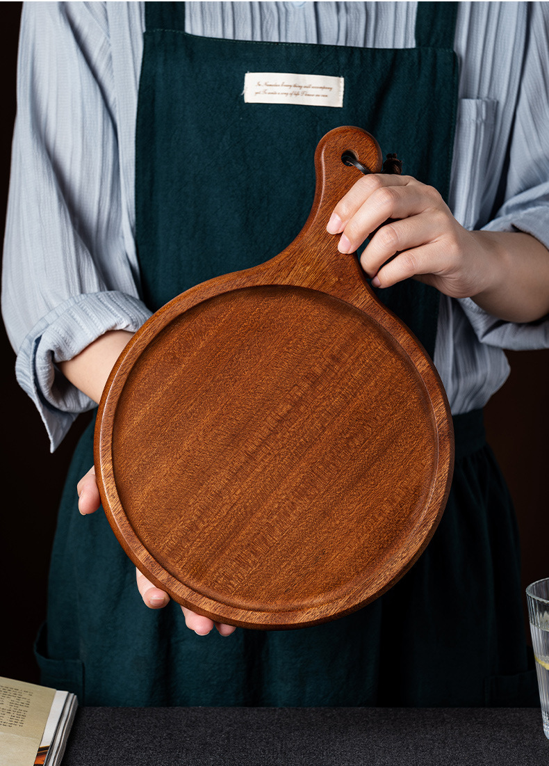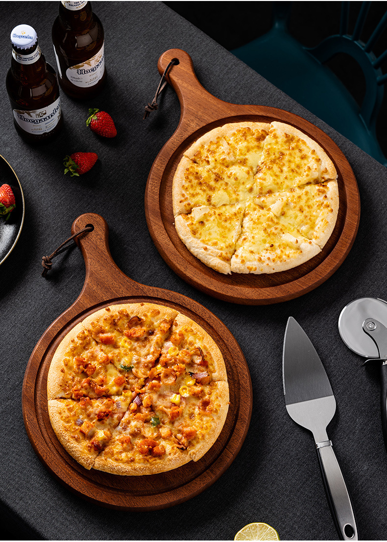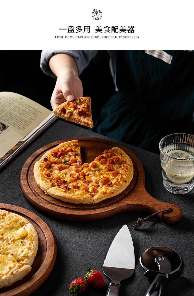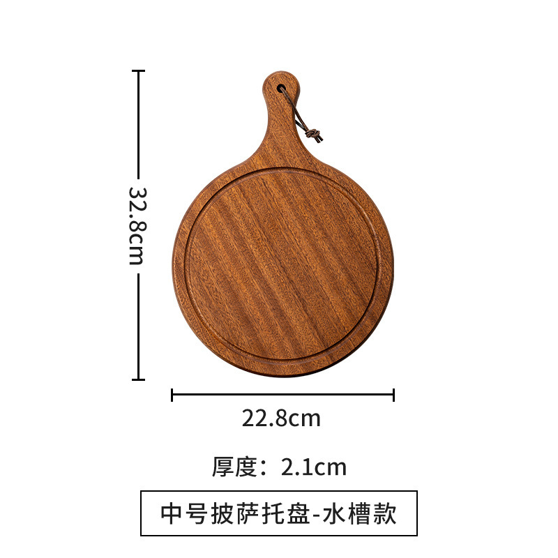 沙比利披萨盘托盘圆形实木乌檀木比萨饼盘子西餐pizza木板托