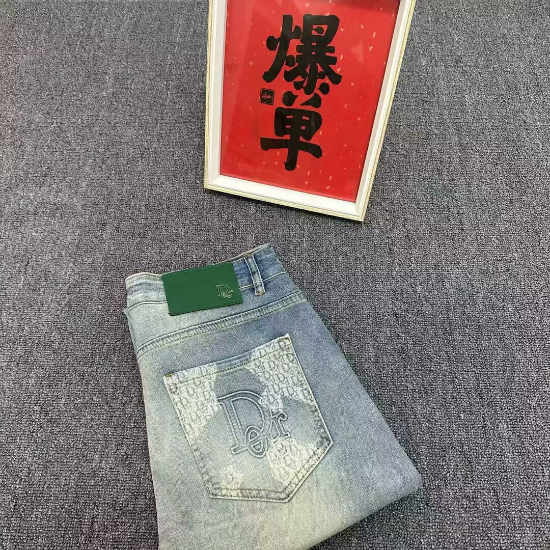 봄 여름 얇은 트렌디 브랜드 청바지 남성 슬림핏 크로스보더 레트로 라이트 럭셔리 자수 크로스보더 남성 캐주얼 패션 스타일스토어 가기