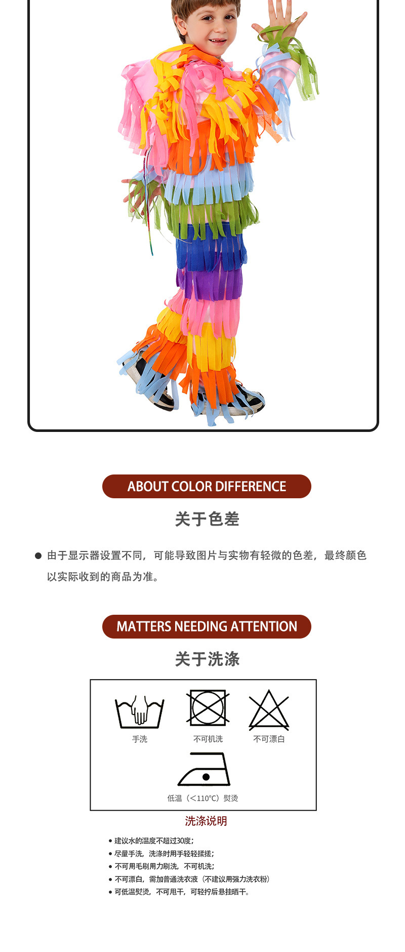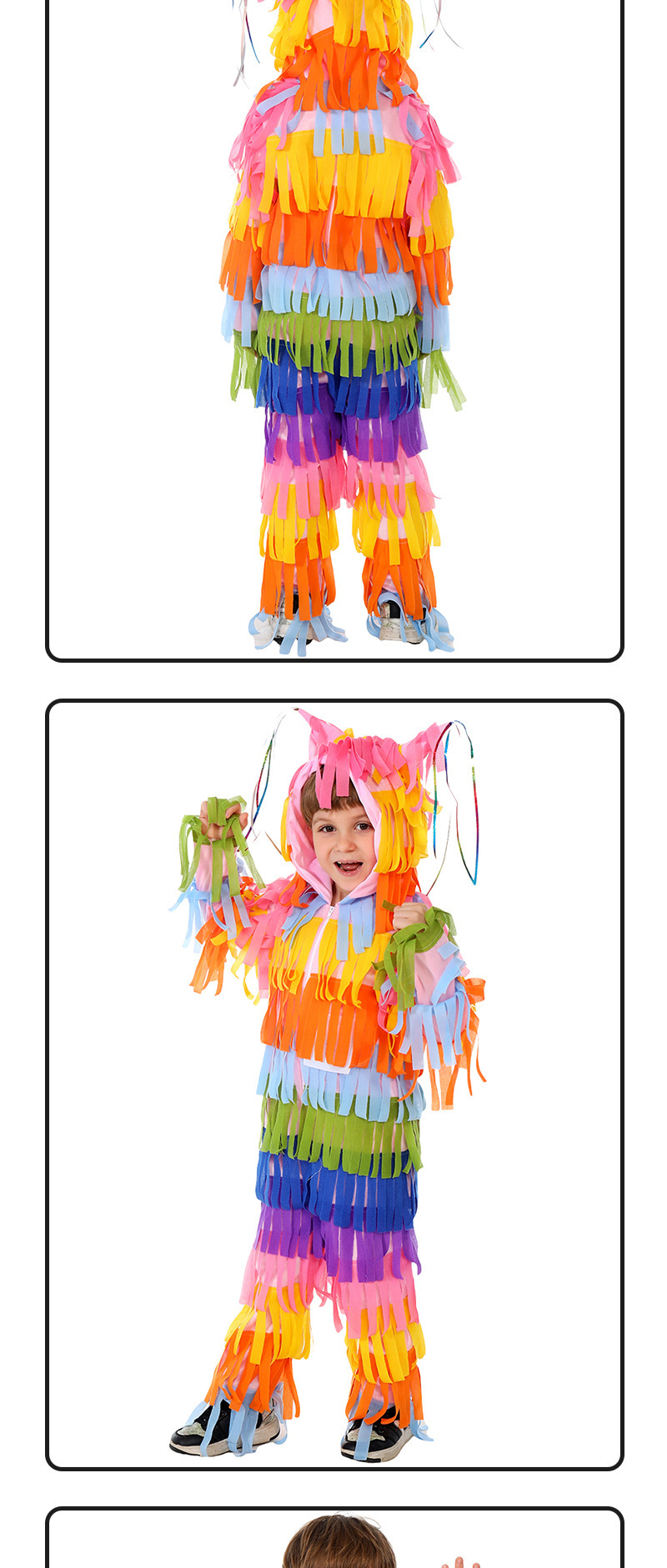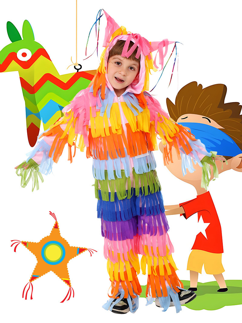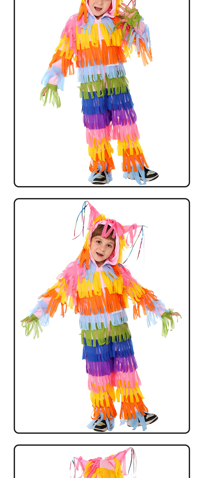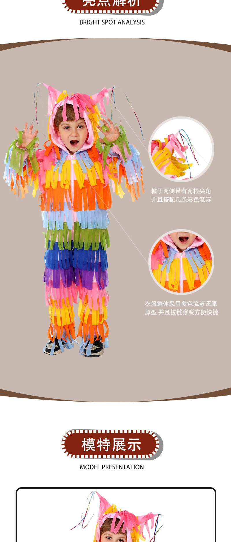 새로운 어린이 코스 세트 피나타 롤 플레잉 대비 컬러 점프 수트 유치원 무대 의상 A9