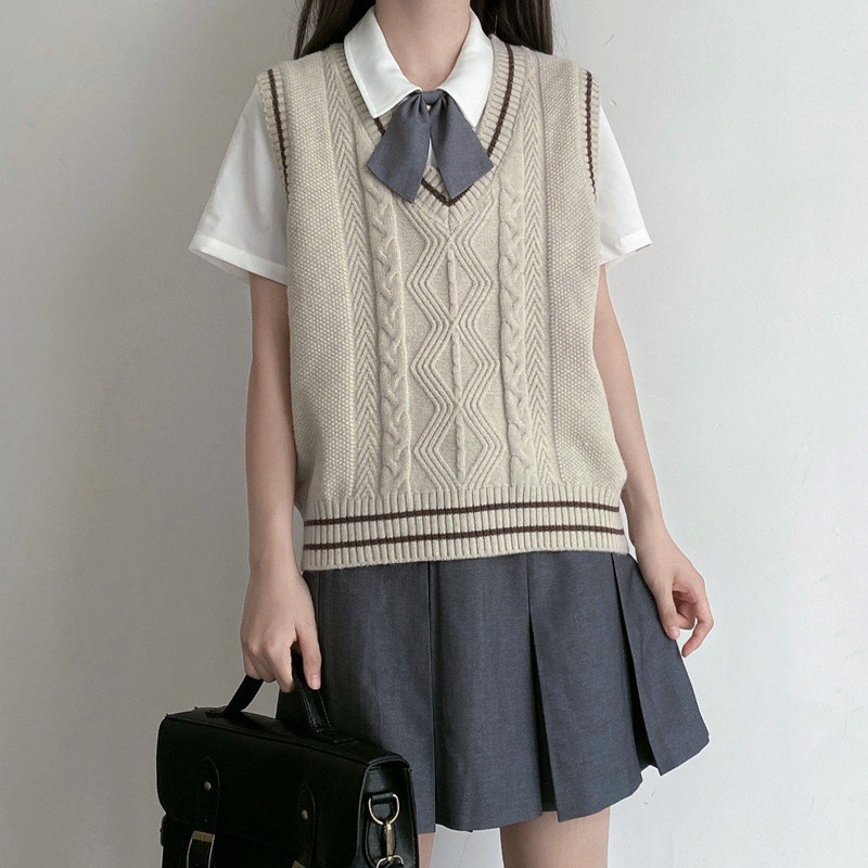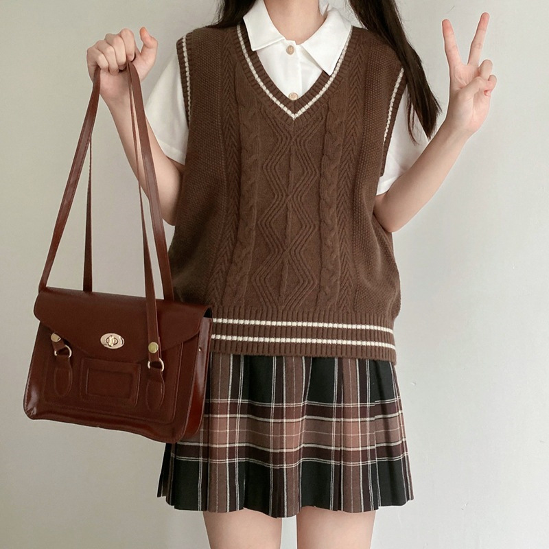 한국스타일 아카데미 스타일 V넥 니트 조끼 여성 봄 · 가을 뉴 콘트라스트 컬러 레트로 트위스트 JK 니트 조끼 여성 조끼스토어 가기
