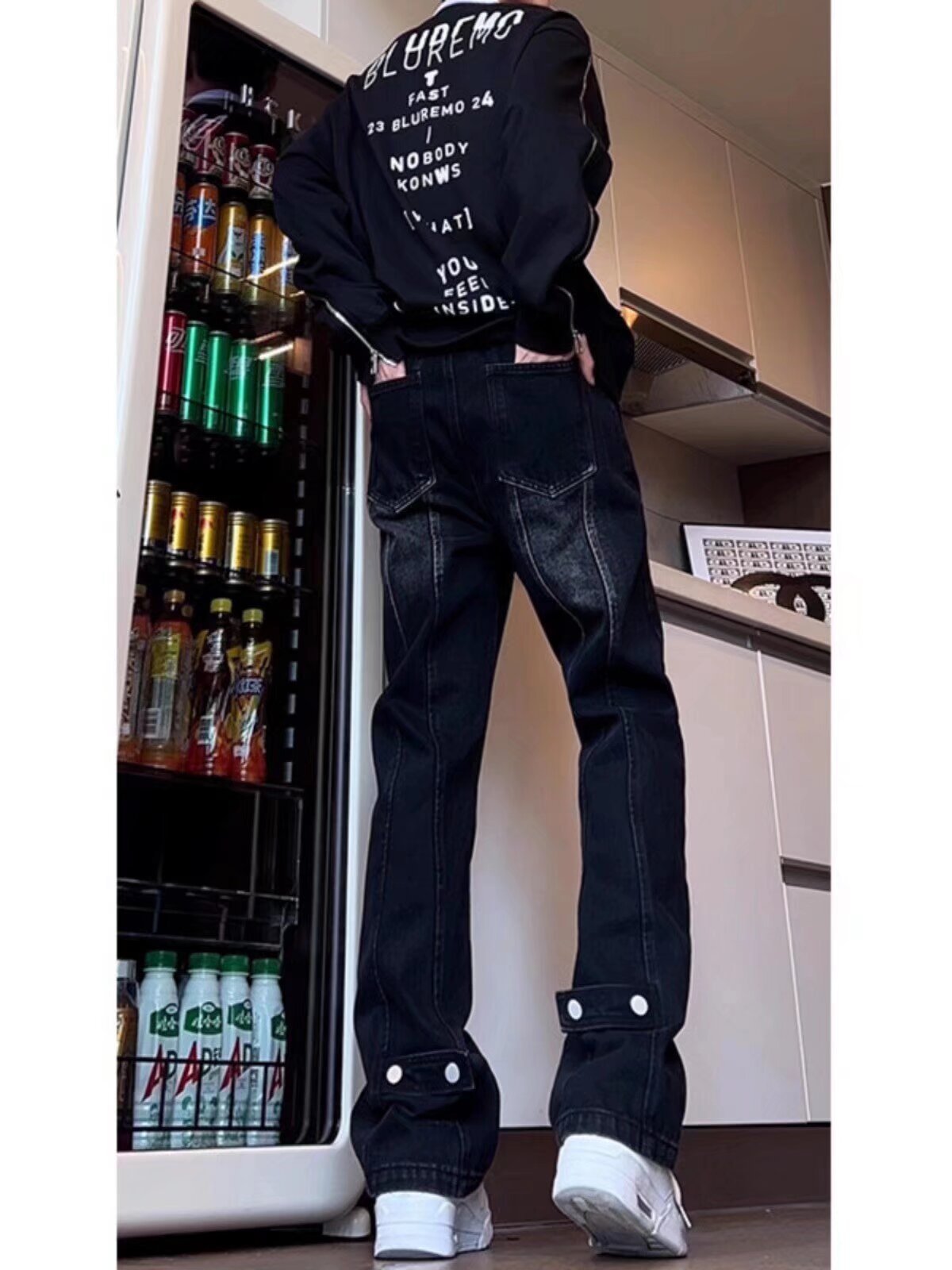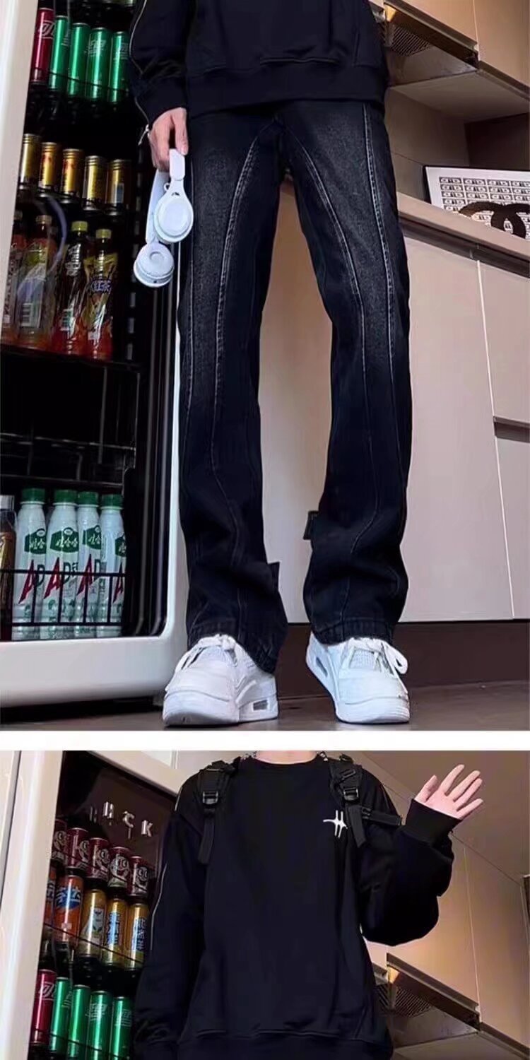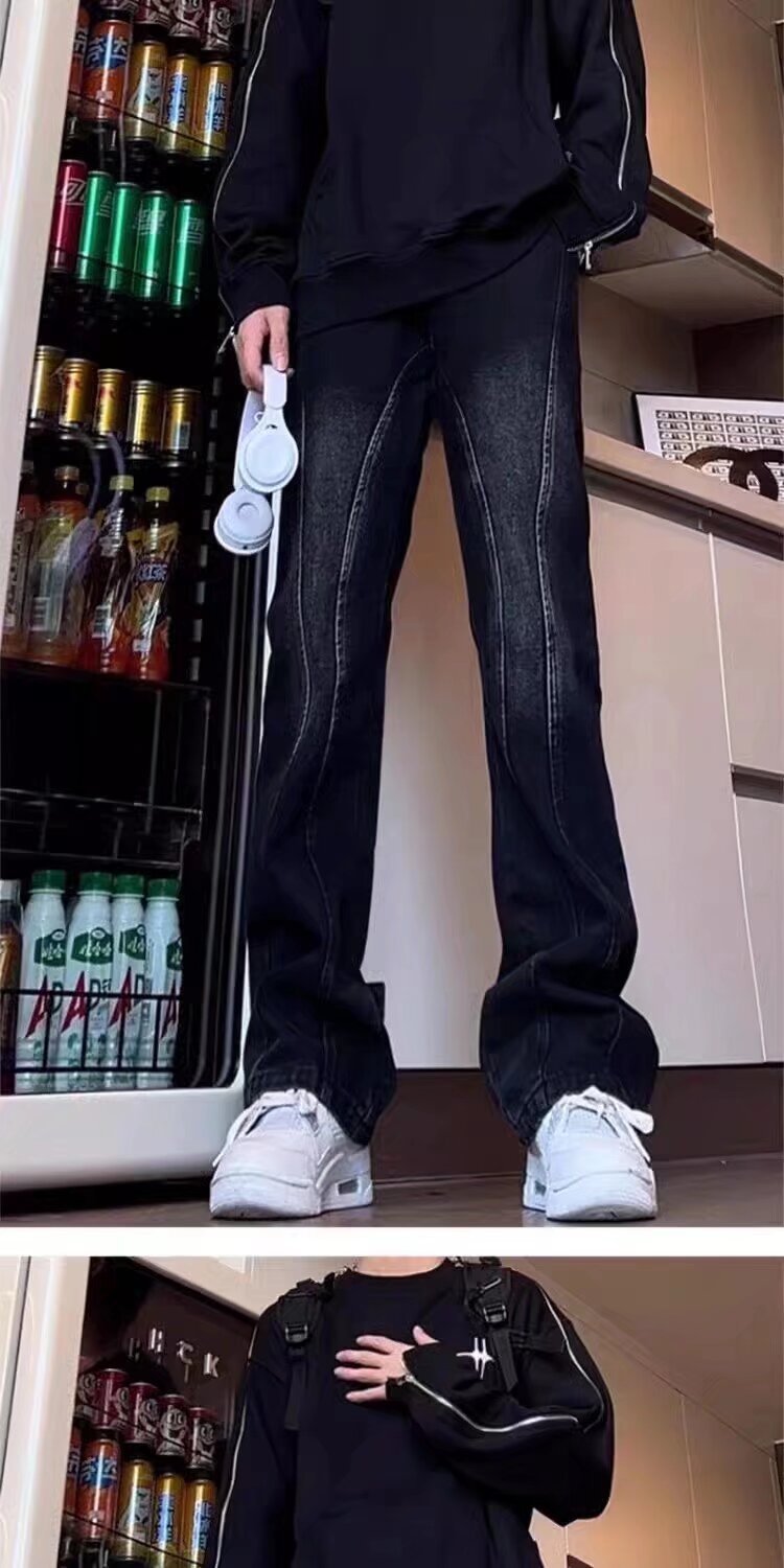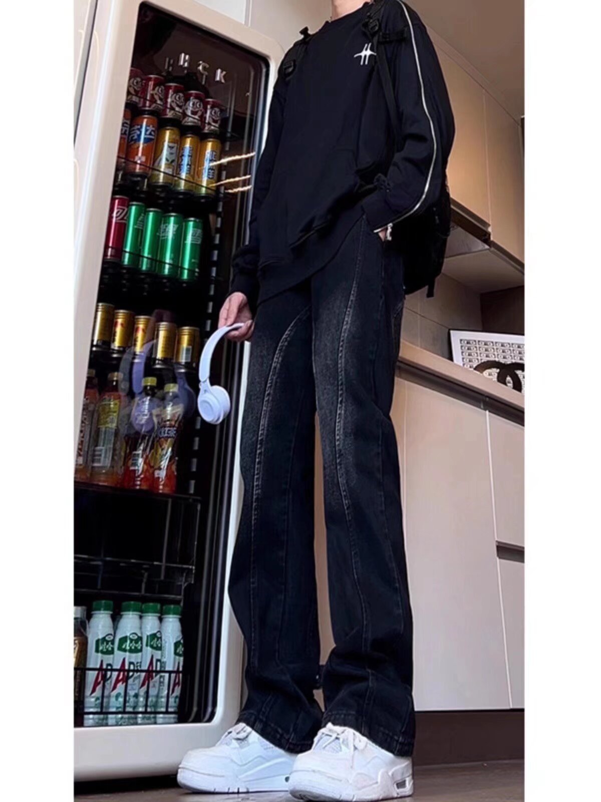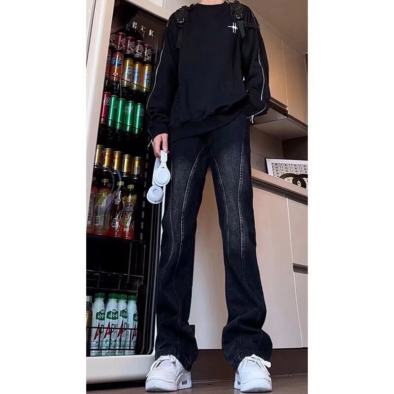 블랙 그레이 그라디언트 청바지 남성용 아메리칸 스타일 하이 스트리트 바이브 바지 리프팅 스타일 스트레이트 툴링 슬림핏 마이크로 라르 바지스토어 가기