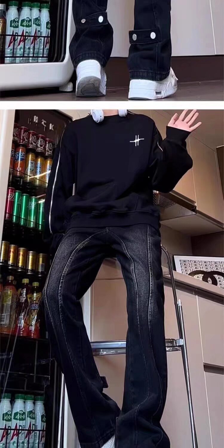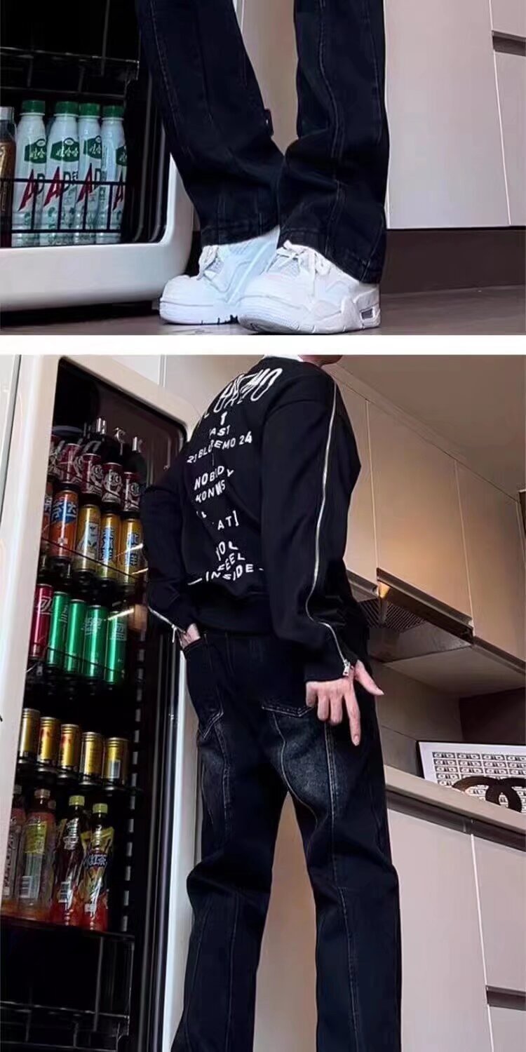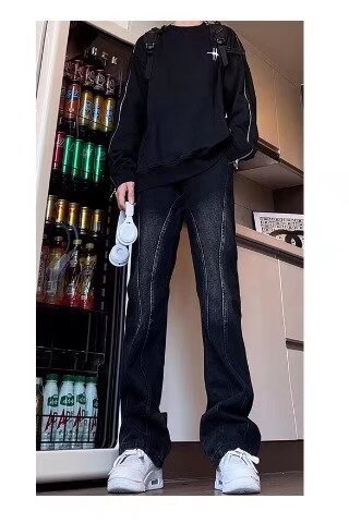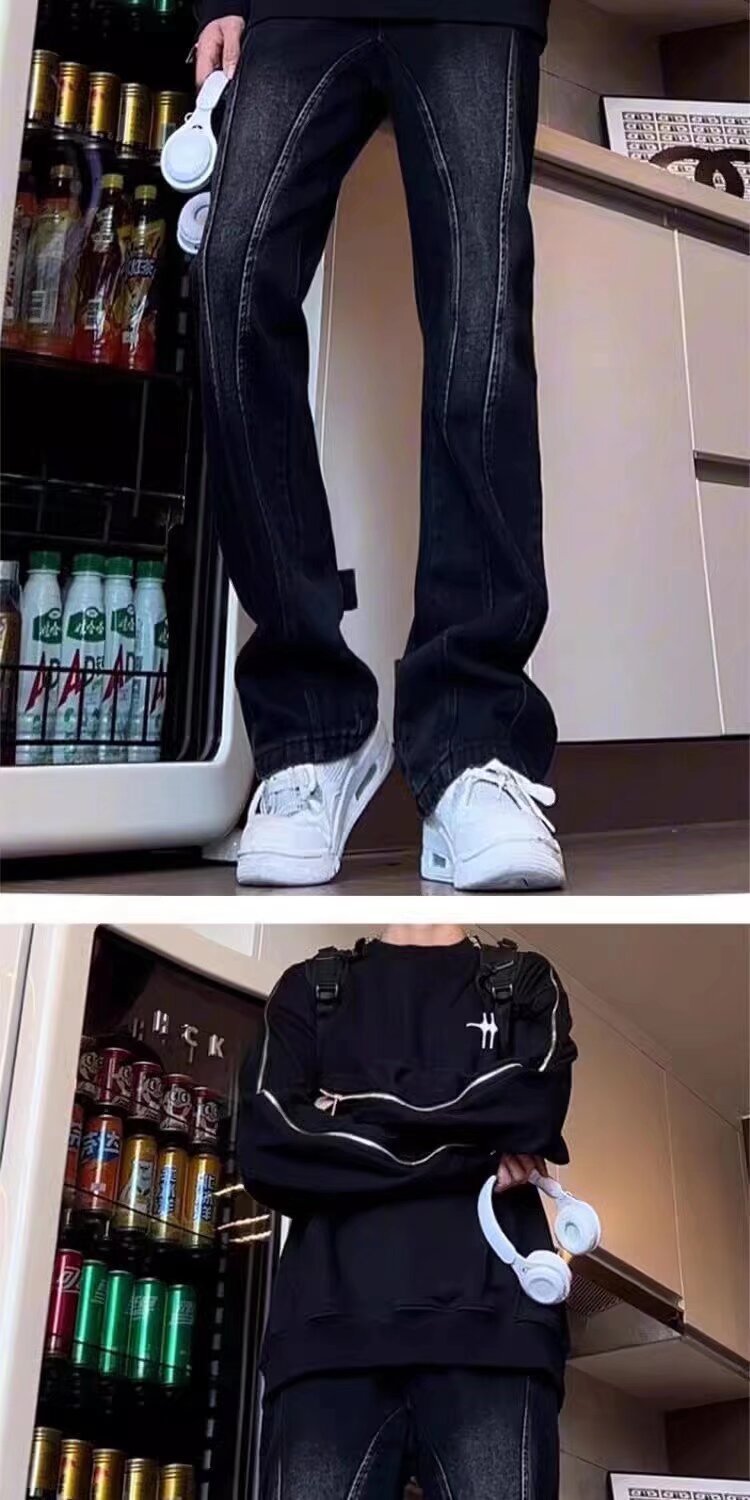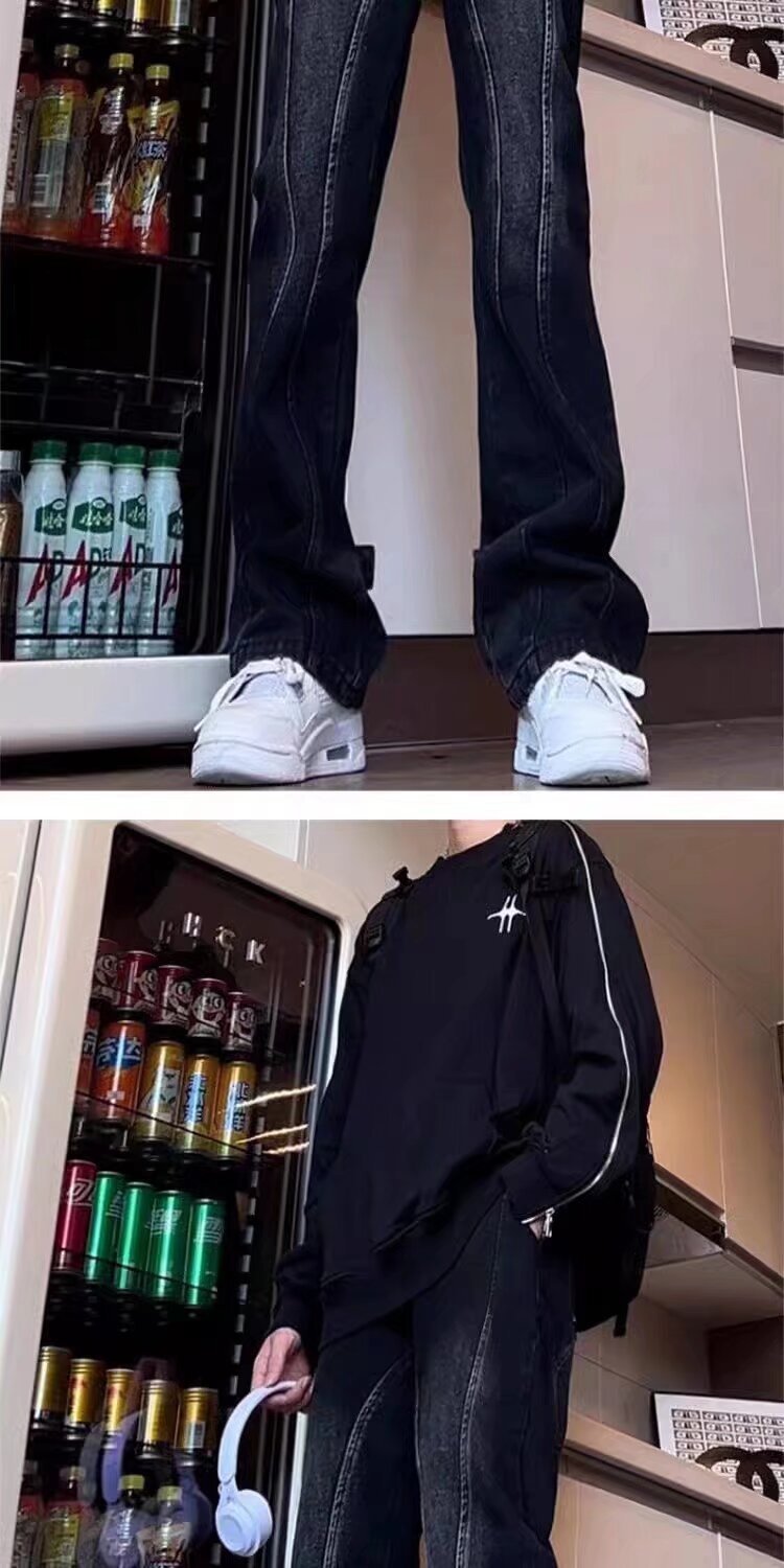 블랙 그레이 그라디언트 청바지 남성용 아메리칸 스타일 하이 스트리트 바이브 바지 리프팅 스타일 스트레이트 툴링 슬림핏 마이크로 라르 바지스토어 가기