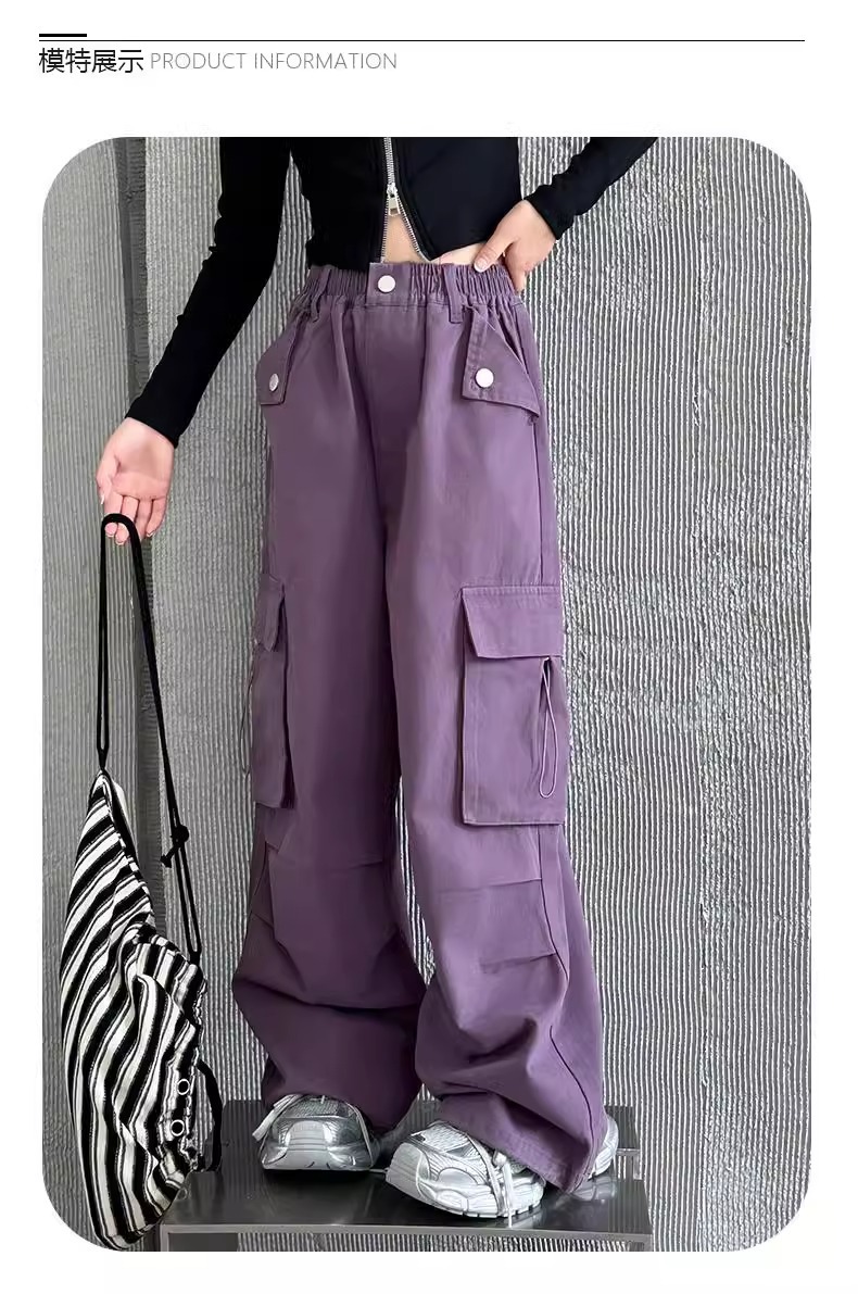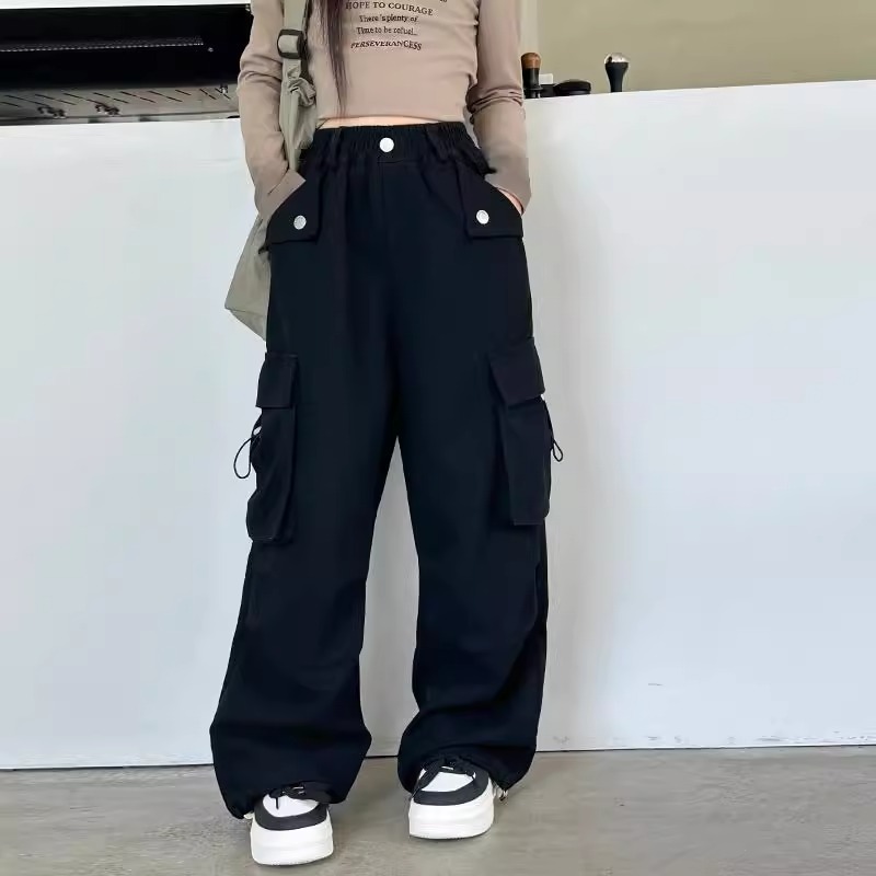소녀 캐주얼 바지 봄과 가을 2024 새로운 어린이 트렌디 쿨웨어 바지 소녀 가을 스트레이트-다리 와이드-다리 바지스토어 가기