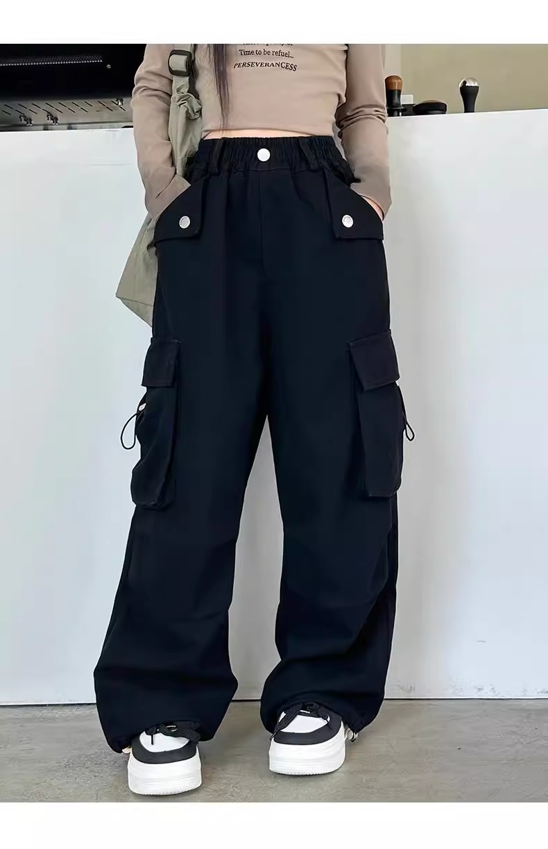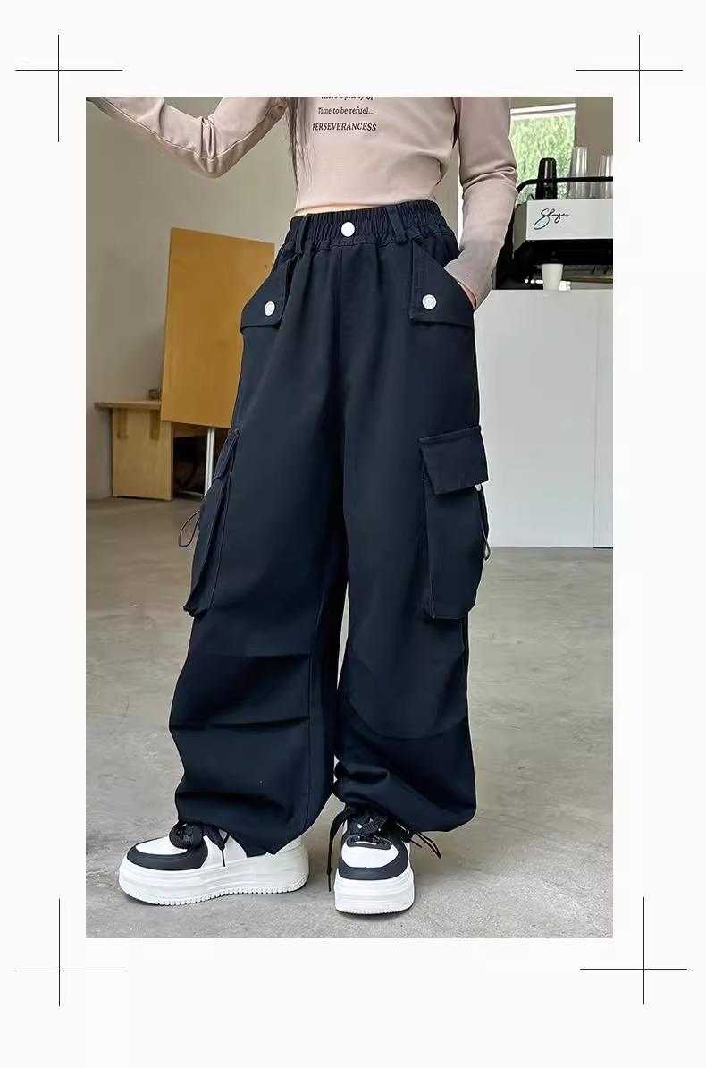 소녀 캐주얼 바지 봄과 가을 2024 새로운 어린이 트렌디 쿨웨어 바지 소녀 가을 스트레이트-다리 와이드-다리 바지