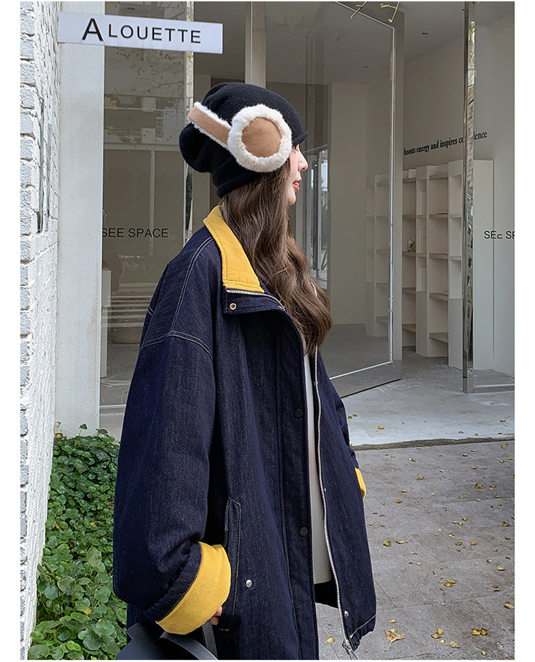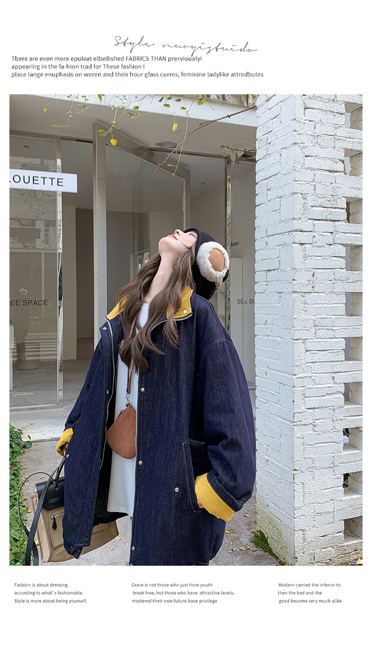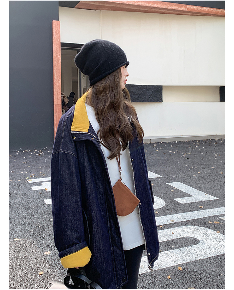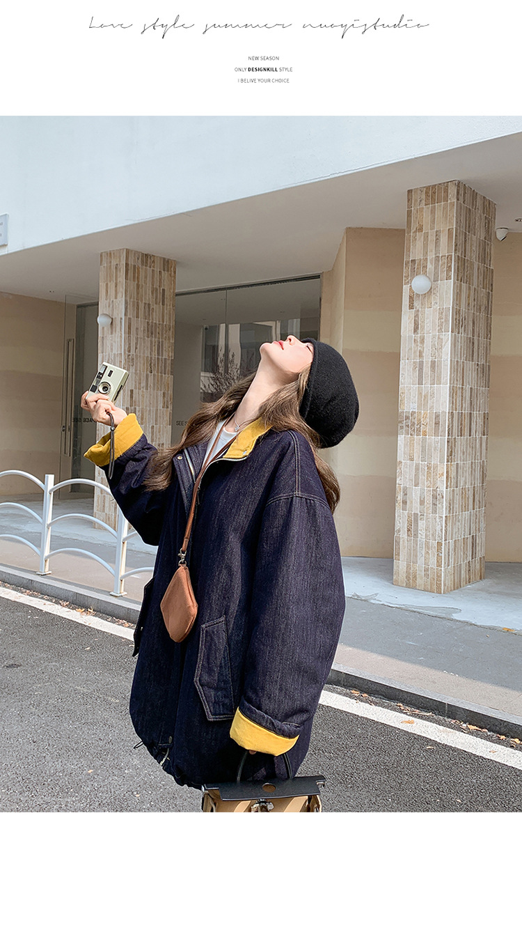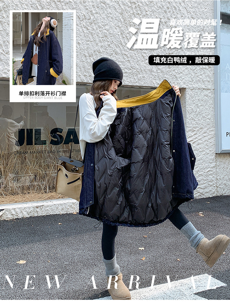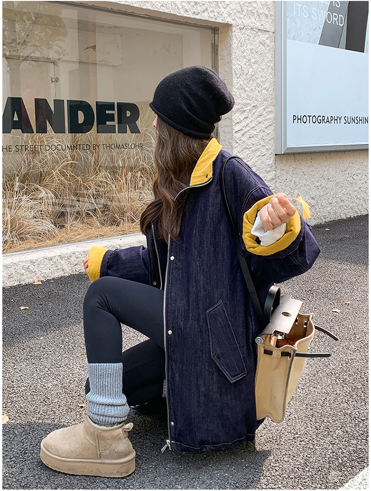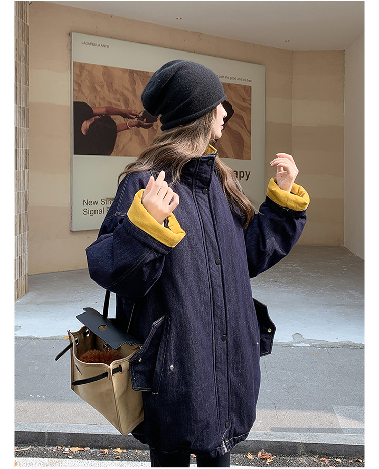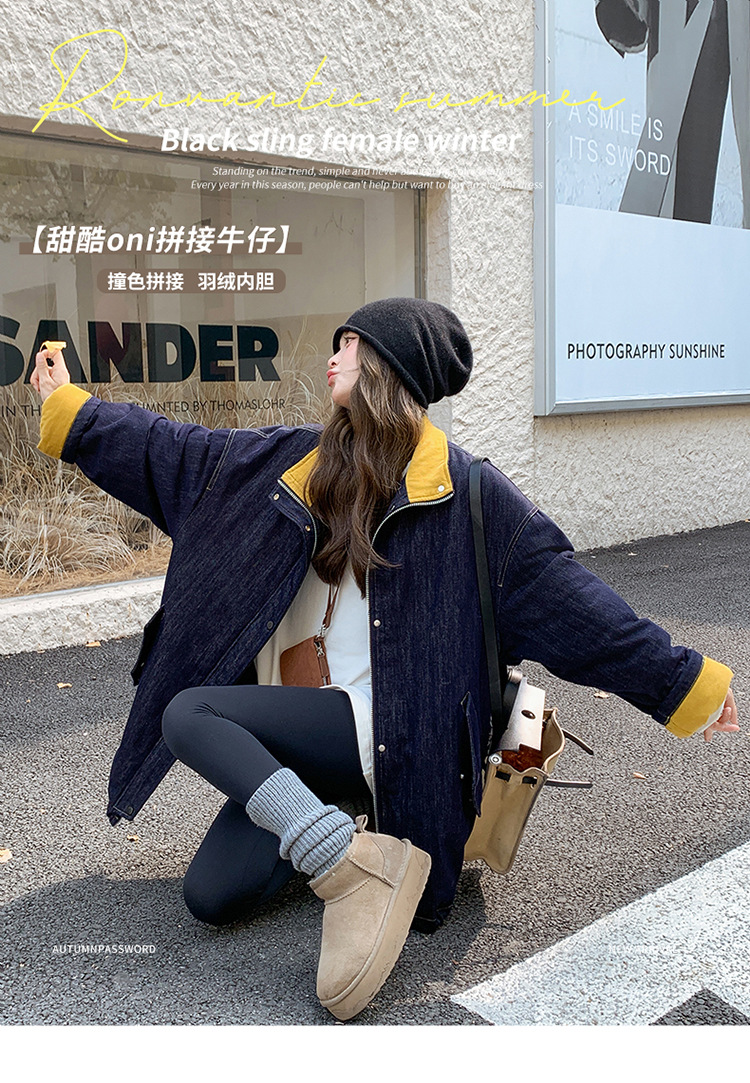 재고 구매자는 90 개의 벨벳 데님 다운 재킷 2C098-8637P265K398 을 스티칭하는 데님 보여줍니다.