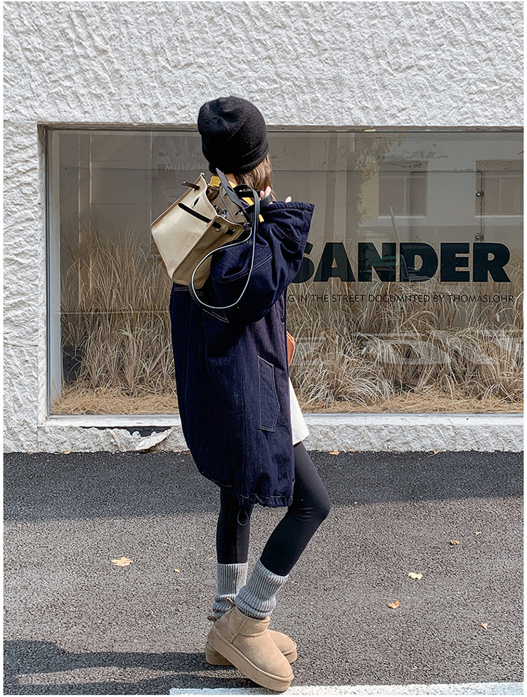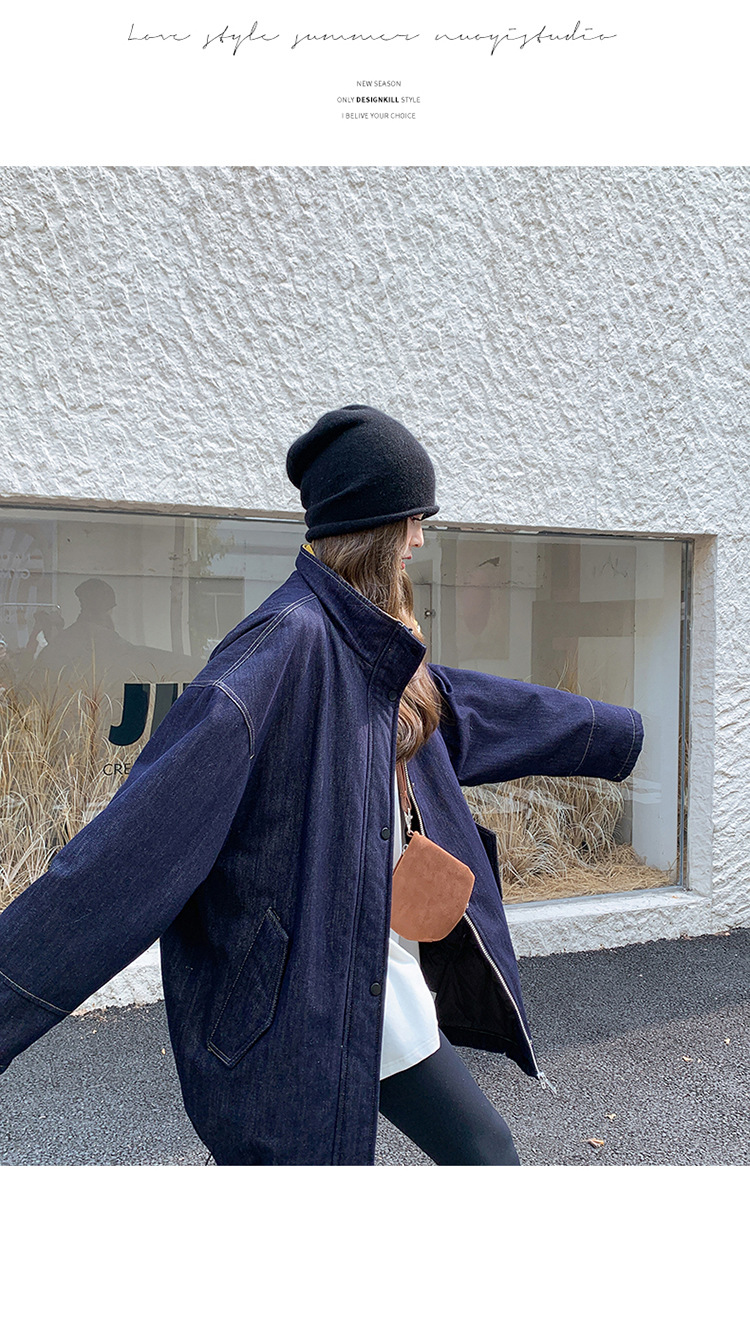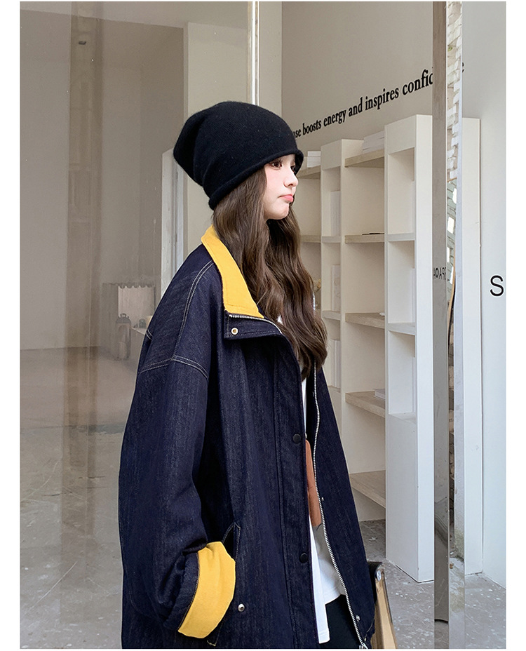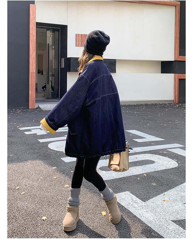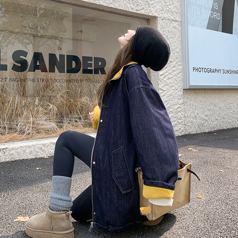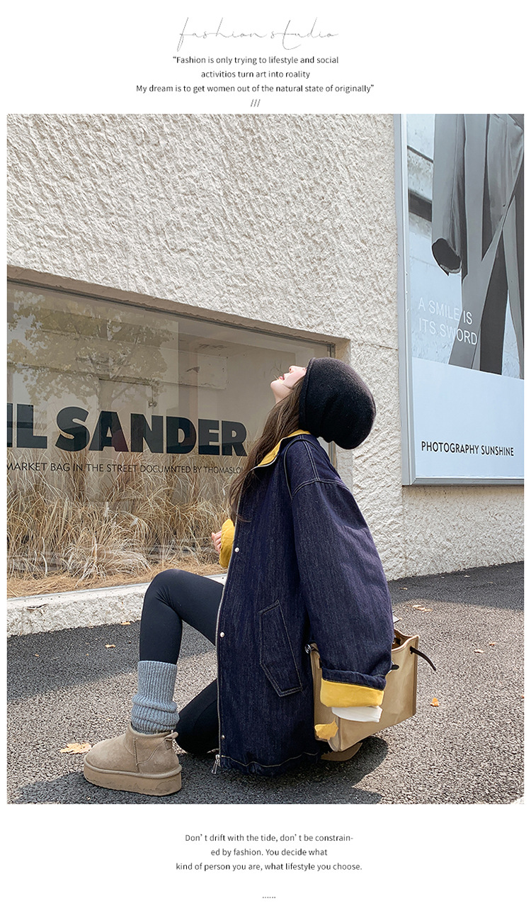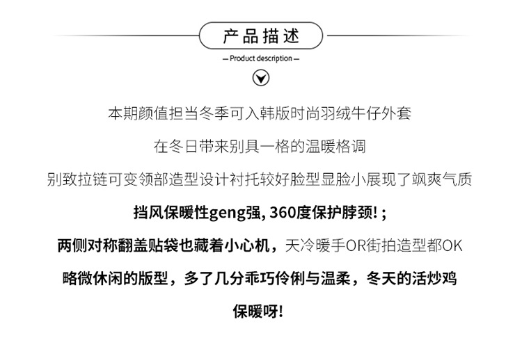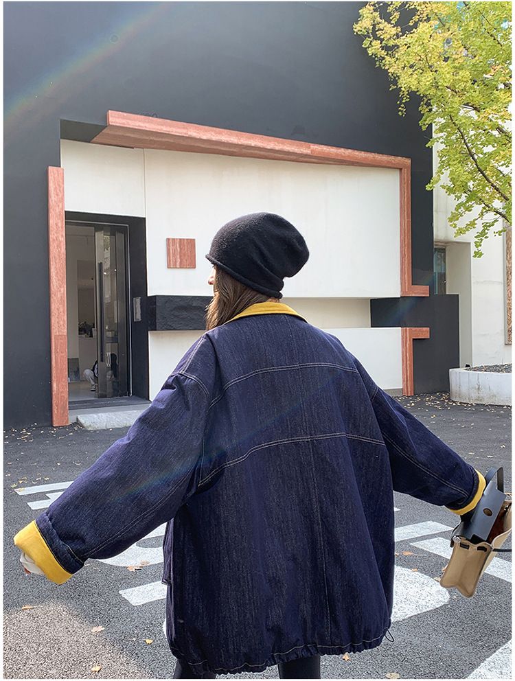 재고 구매자는 90 개의 벨벳 데님 다운 재킷 2C098-8637P265K398 을 스티칭하는 데님 보여줍니다.