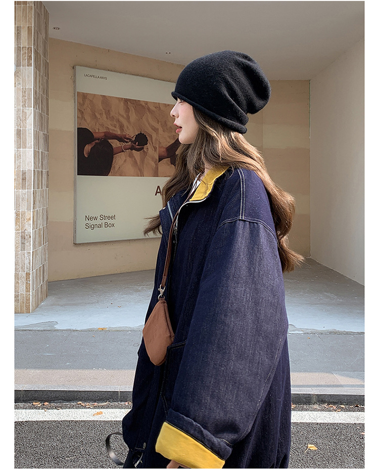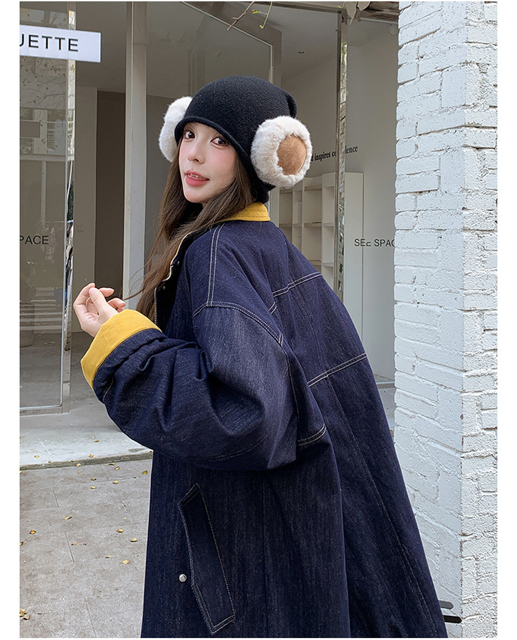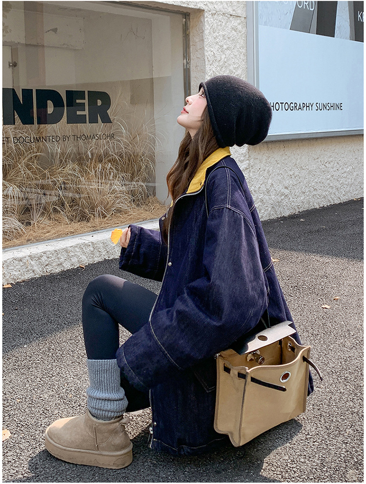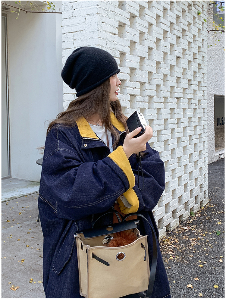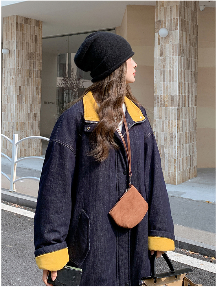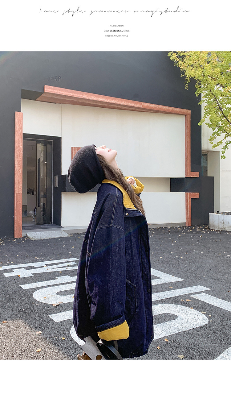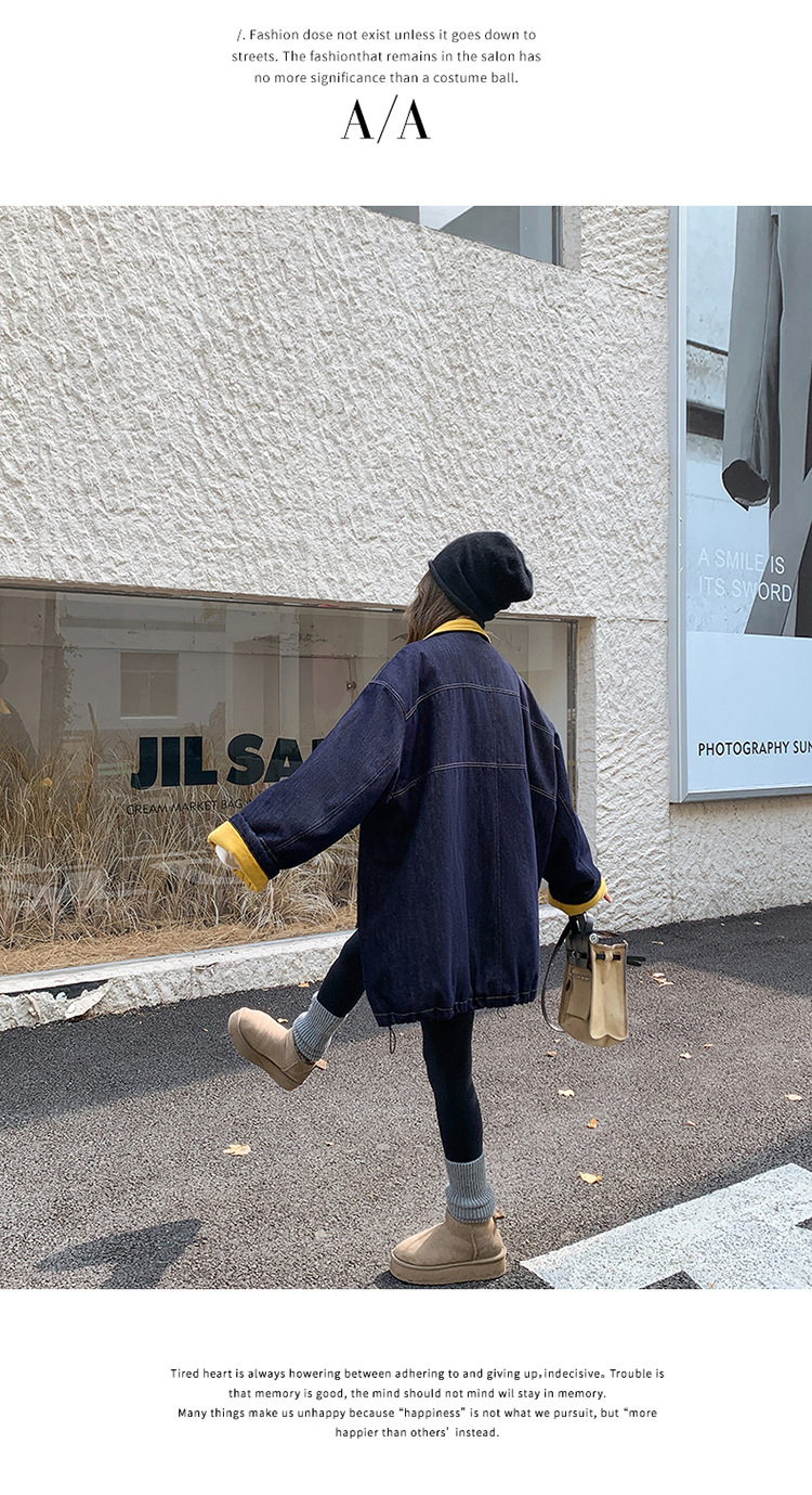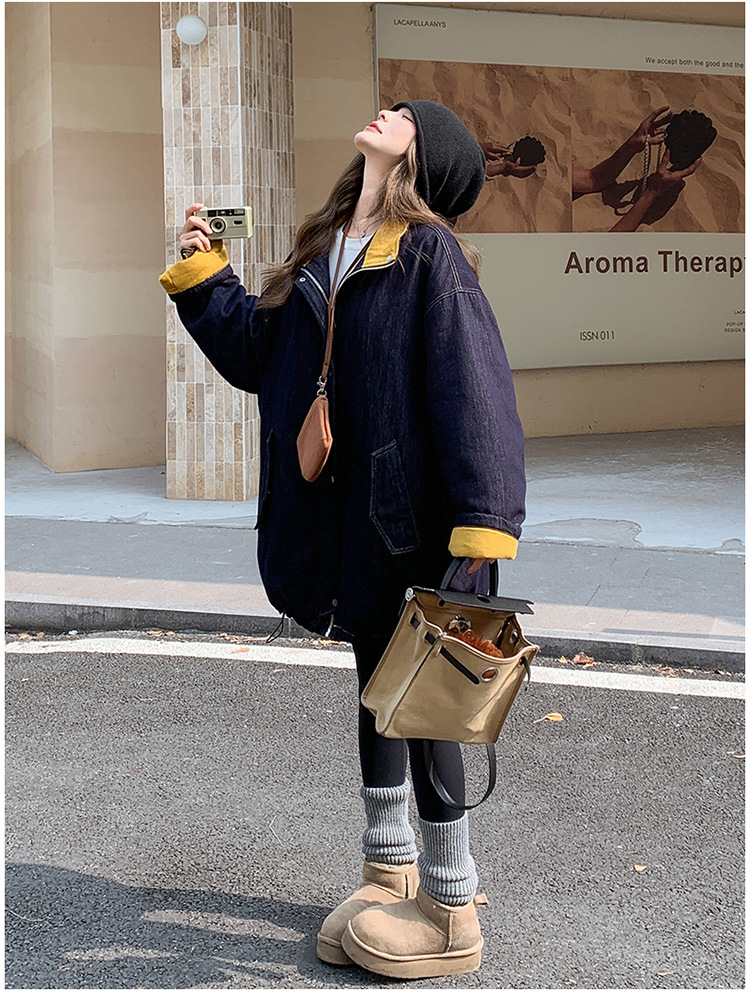 재고 구매자는 90 개의 벨벳 데님 다운 재킷 2C098-8637P265K398 을 스티칭하는 데님 보여줍니다.