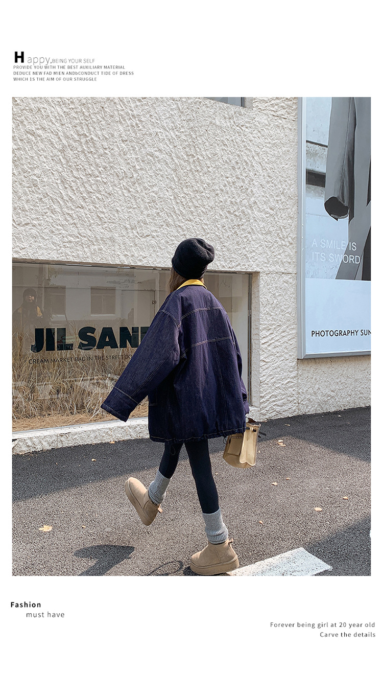 재고 구매자는 90 개의 벨벳 데님 다운 재킷 2C098-8637P265K398 을 스티칭하는 데님 보여줍니다.스토어 가기