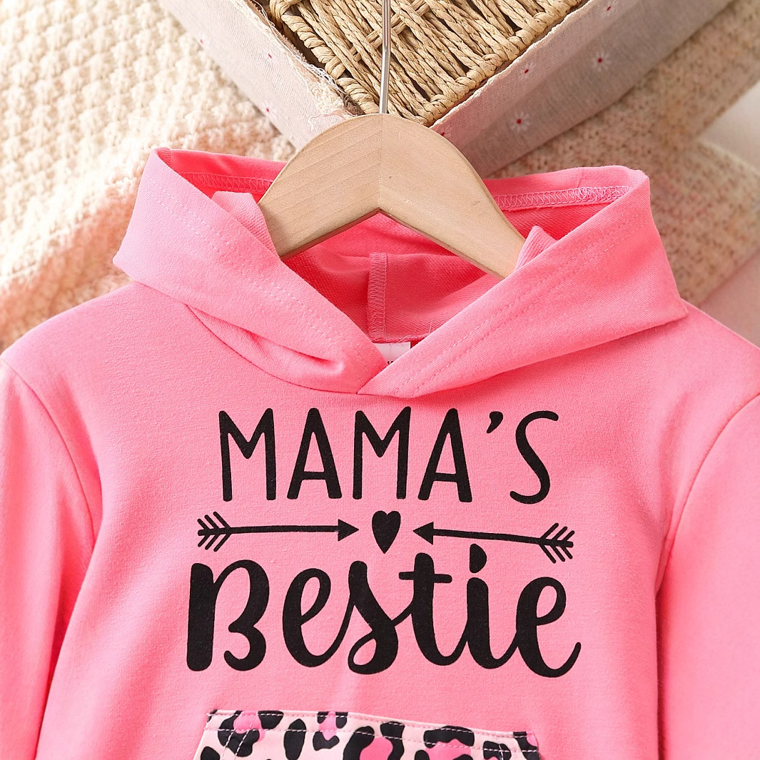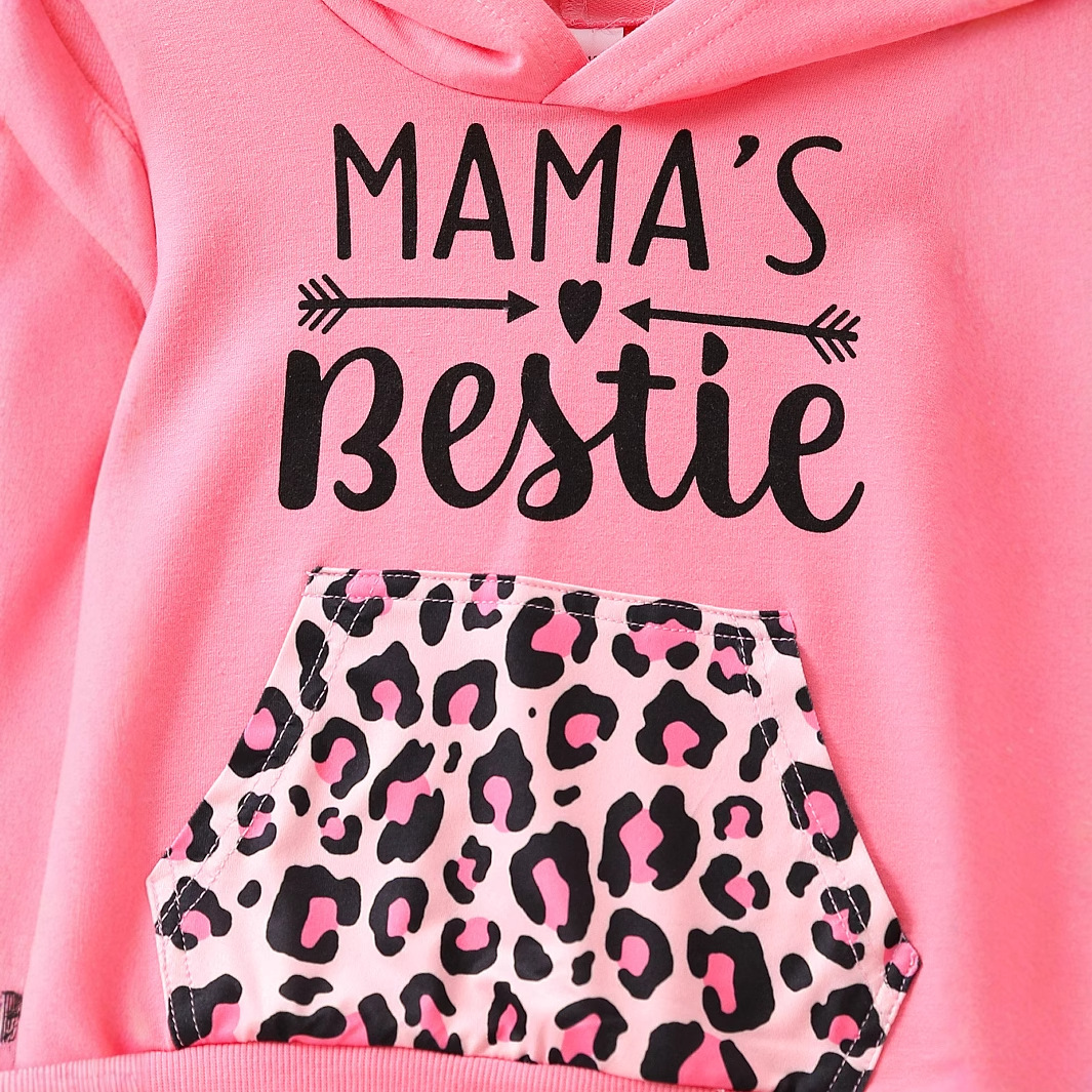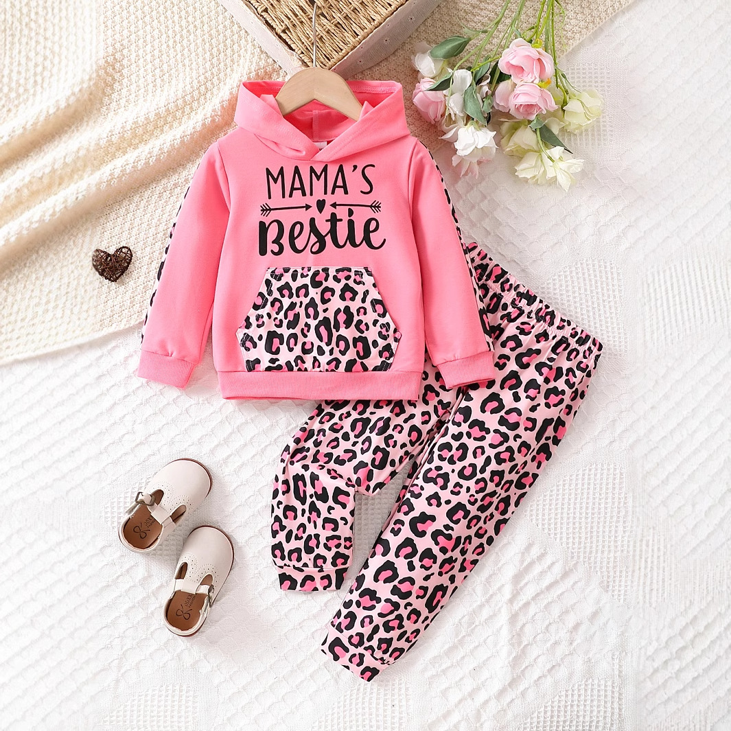 소녀 레오파드 무늬 후드 세트 봄과 가을 긴 소매 캐주얼 세트 편지 인쇄 레오파드 무늬 2 피스 레깅스 유럽 스타일스토어 가기