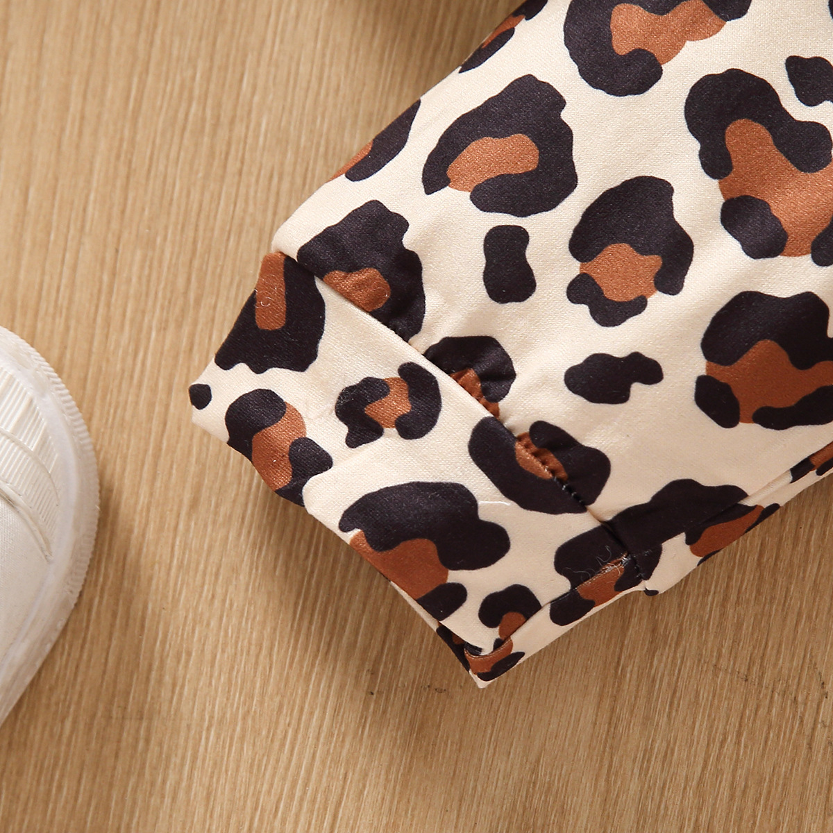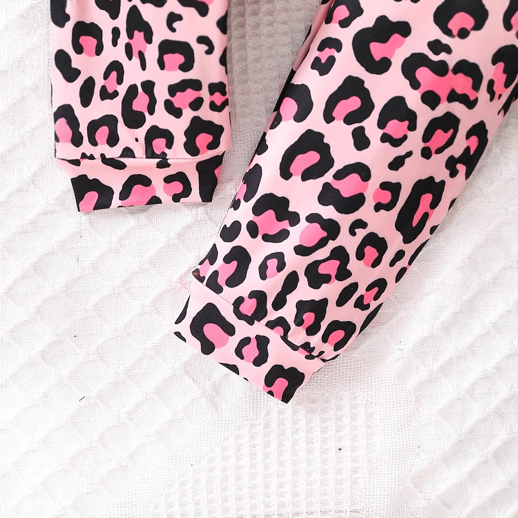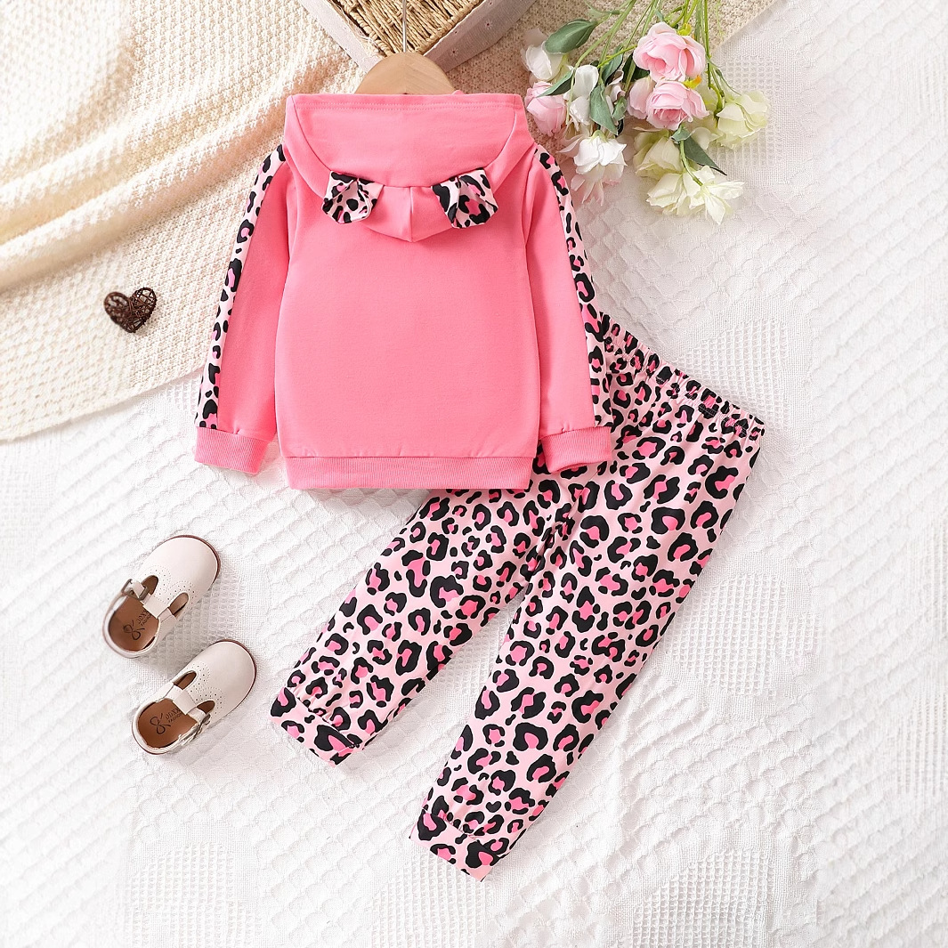 소녀 레오파드 무늬 후드 세트 봄과 가을 긴 소매 캐주얼 세트 편지 인쇄 레오파드 무늬 2 피스 레깅스 유럽 스타일