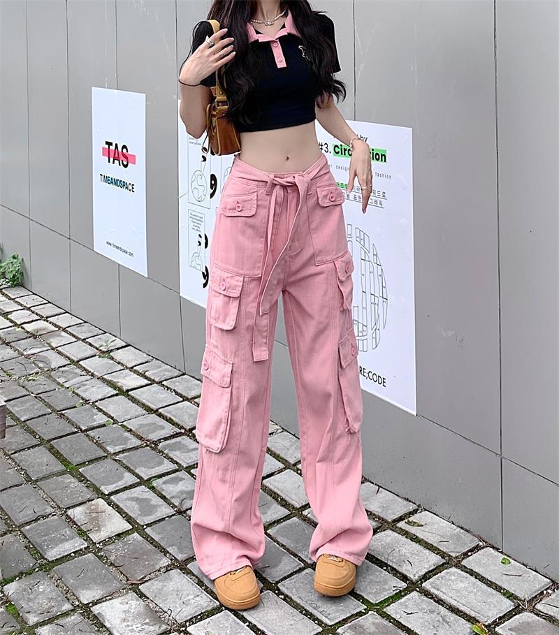 2024 새로운 미국 스타일 레트로 멀티 포켓 오래 된 크라우드 워크 바지 여성용 쿨 스트리트 느슨한 슬리밍 스트레이트 트렌디 팬츠