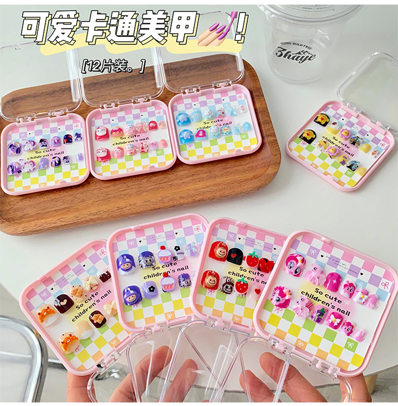 재고 있음 도매 어린이 만화 네일 스티커 귀여운 소녀 분리형 입체 웨어러블 네일 자체 접착 네일 아트 세트스토어 가기