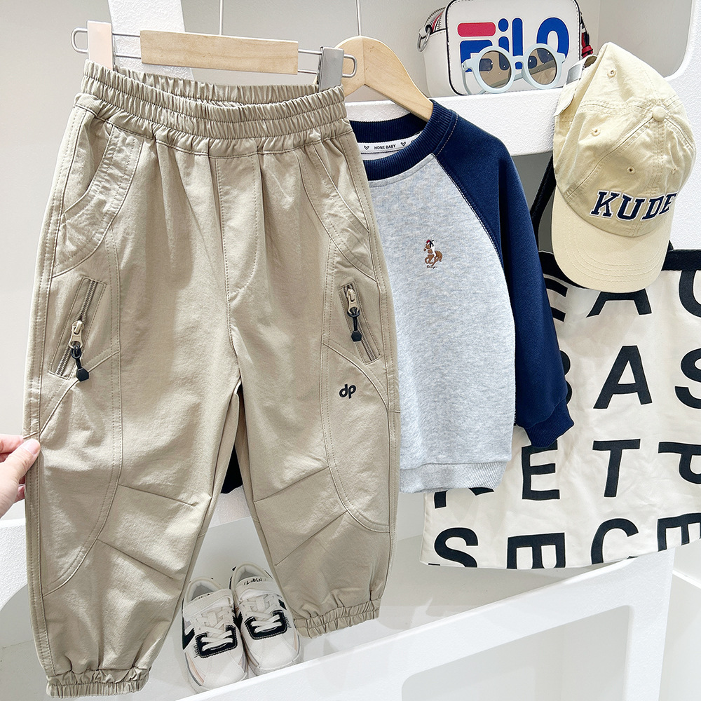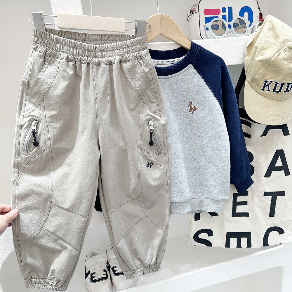 소년의 봄과 여름 새로운 바지 2025 소년 아기 서양 스타일 중 큰 어린이 다리에 묶인 캐주얼 바지 유행 도매 헤어스토어 가기