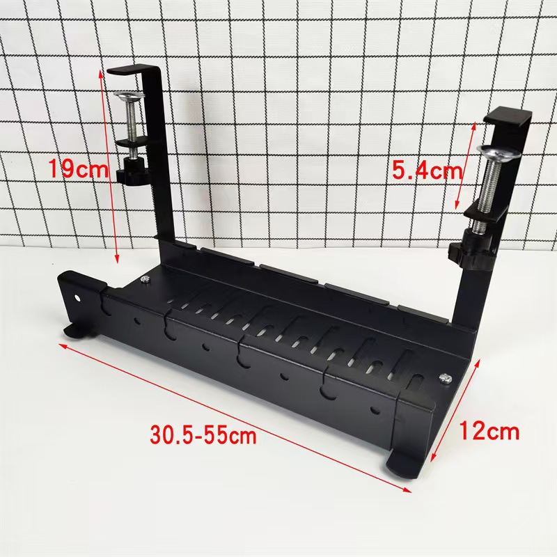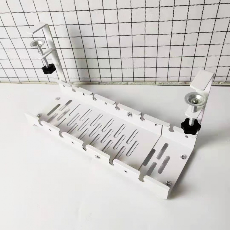 책상 아래에 구멍이 없는 케이블 관리 랙, 접이식 케이블 배치, 금속 보관함, 클램프가 있는 책상 아래 보관 트레이