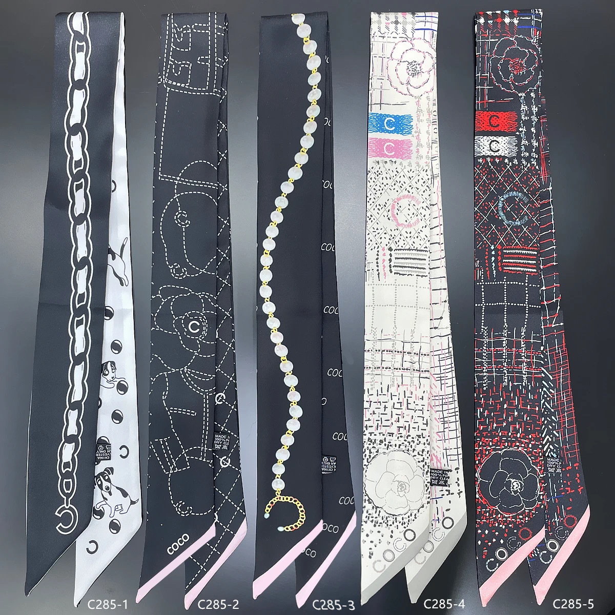봄 새로운 패션 예술적 동백 꽃 스카프 여성 포장 가방 장식 리본 헤어 벨트 재고 작은 스카프