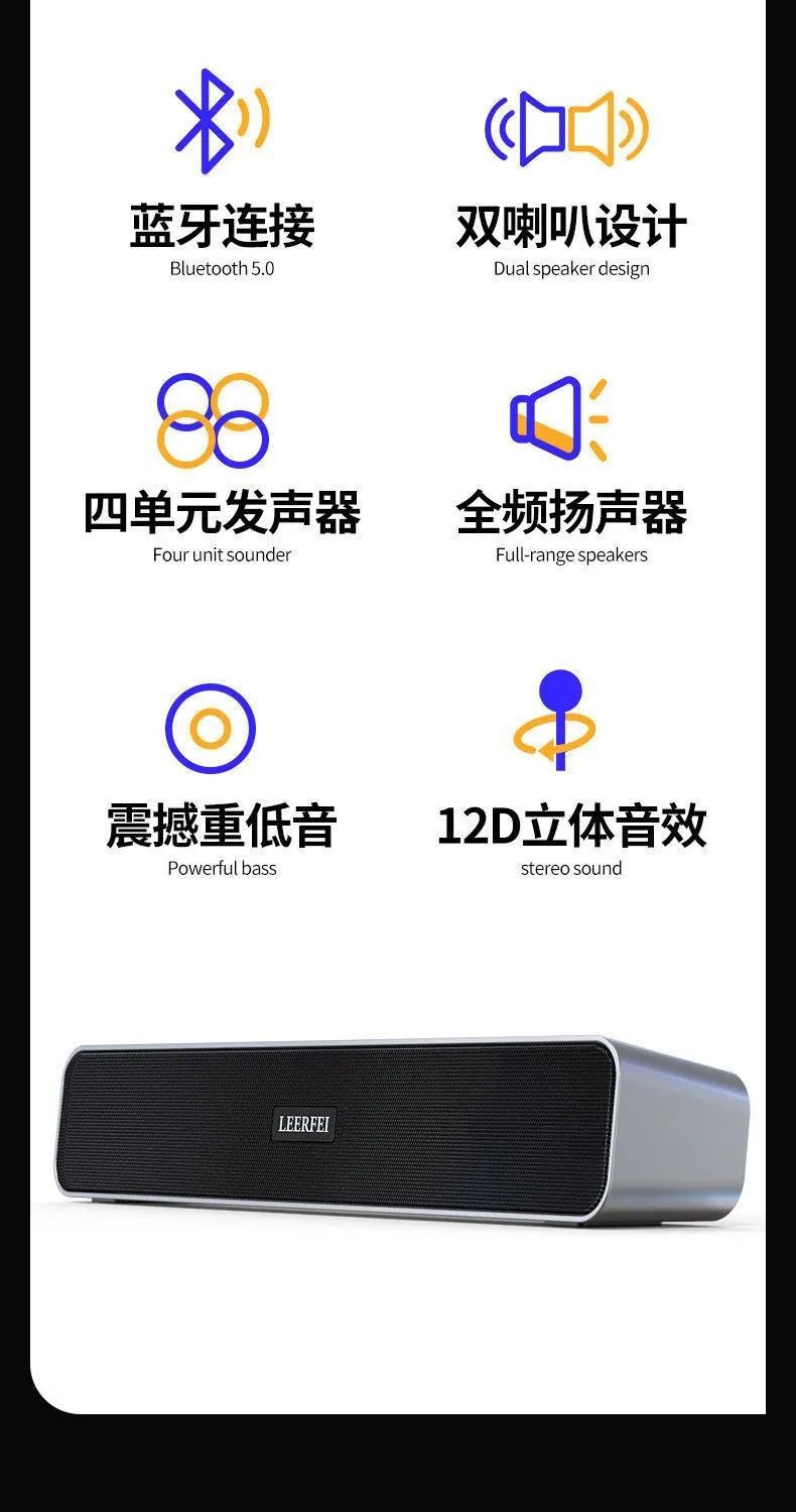 새로운 2024 홈 데스크톱 무선 블루투스 오디오 휴대 전화 긴 오디오 카드 데스크탑 무거운 서브 우퍼 스피커스토어 가기