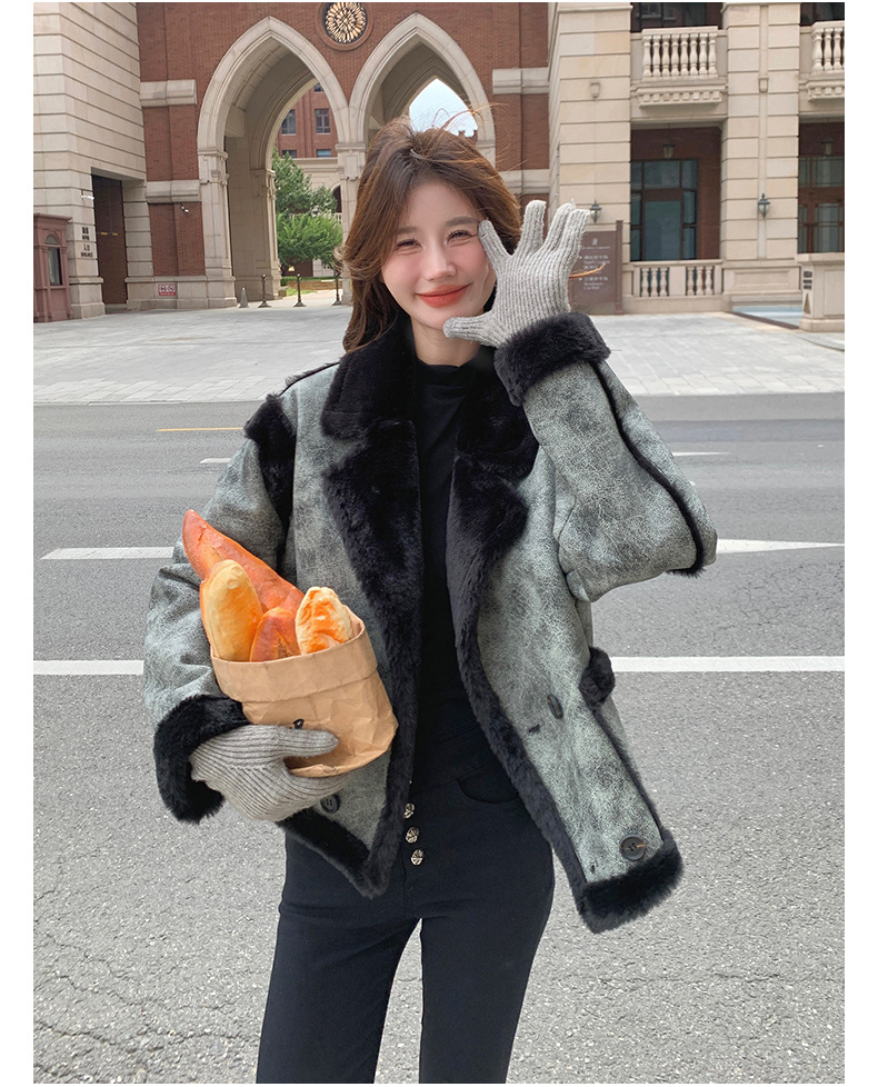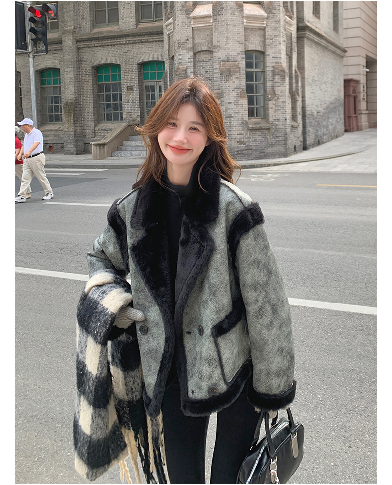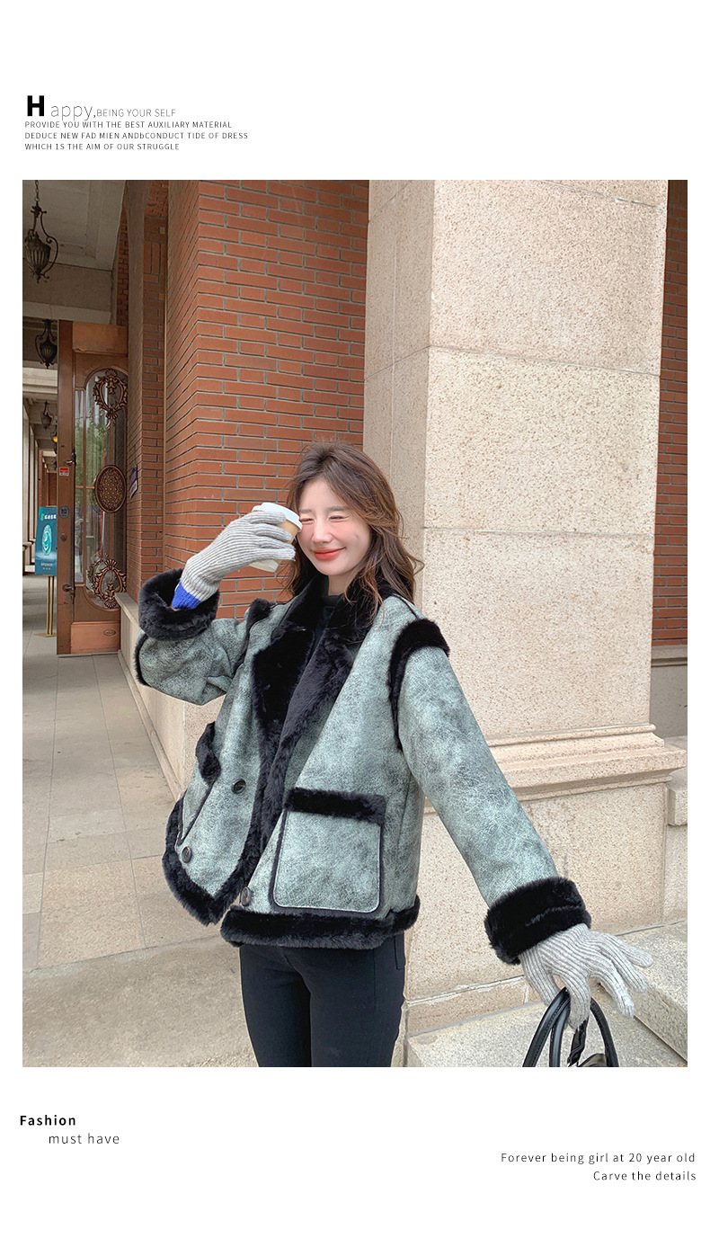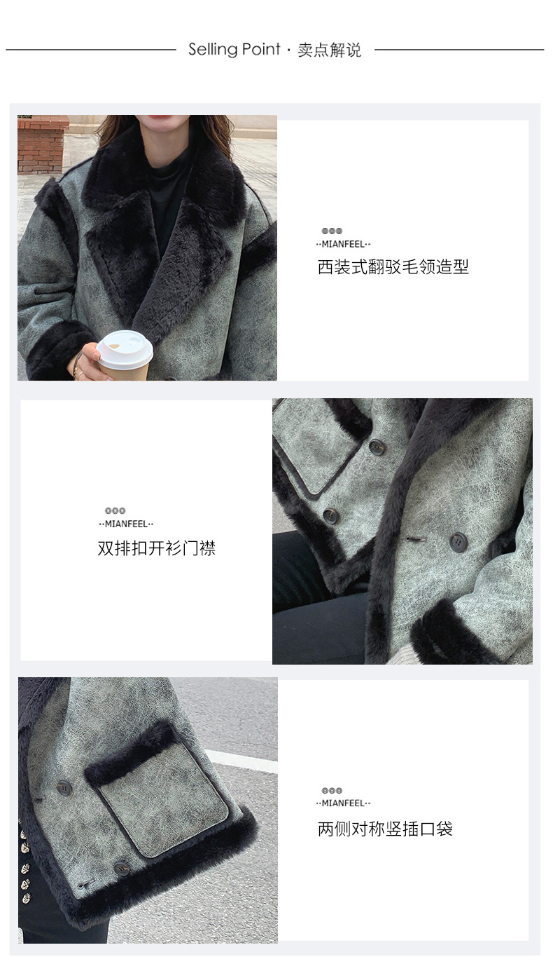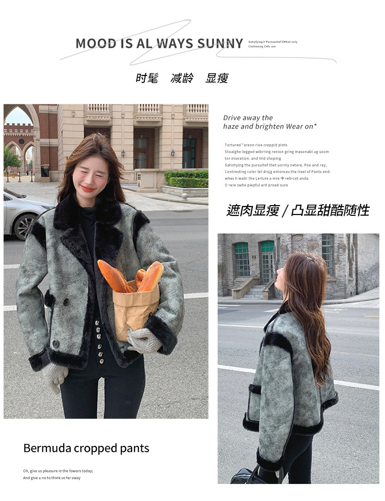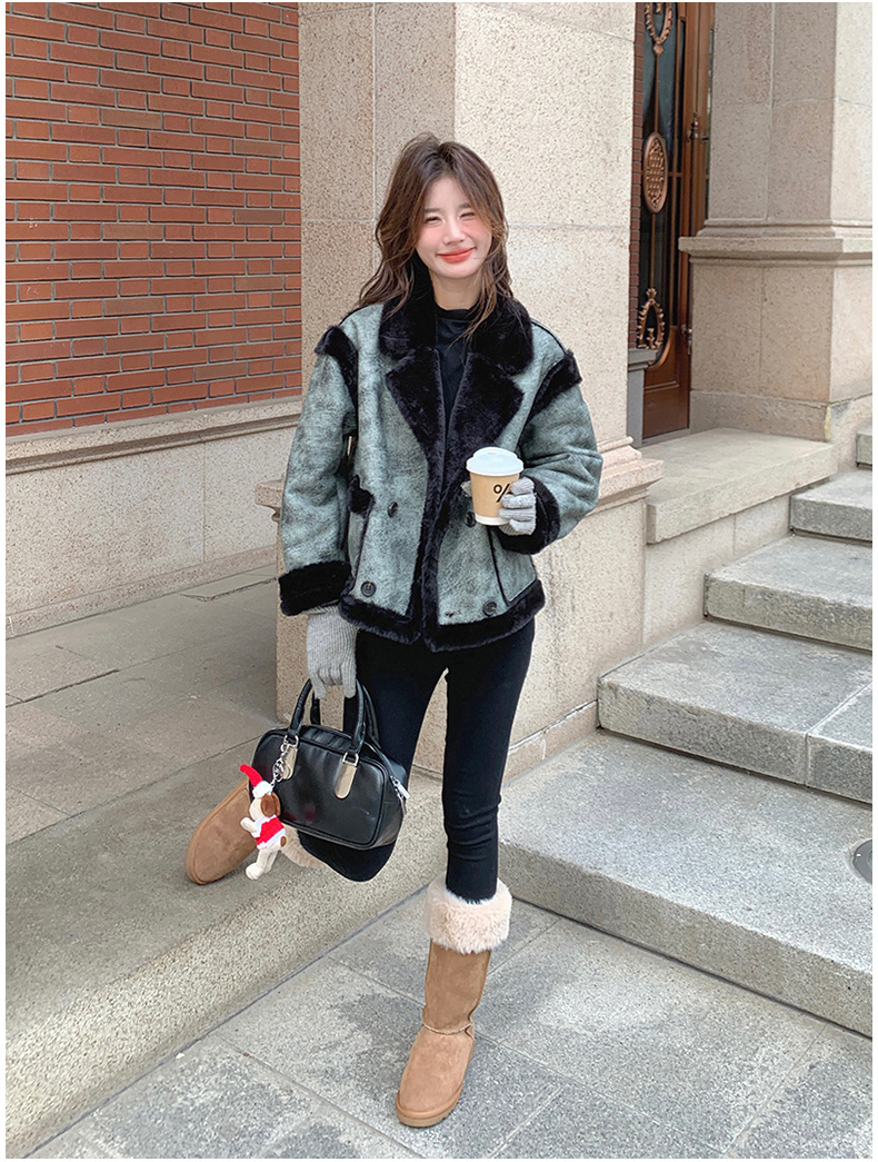 프랑스 세트 칼라 모피 한 여자 겨울 양고기 양모 짧은 코트 기모 오토바이 코튼 패딩 재킷 6077P195K278스토어 가기