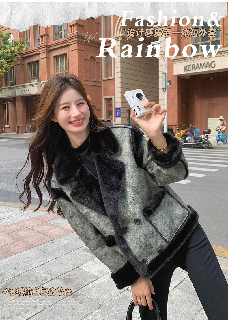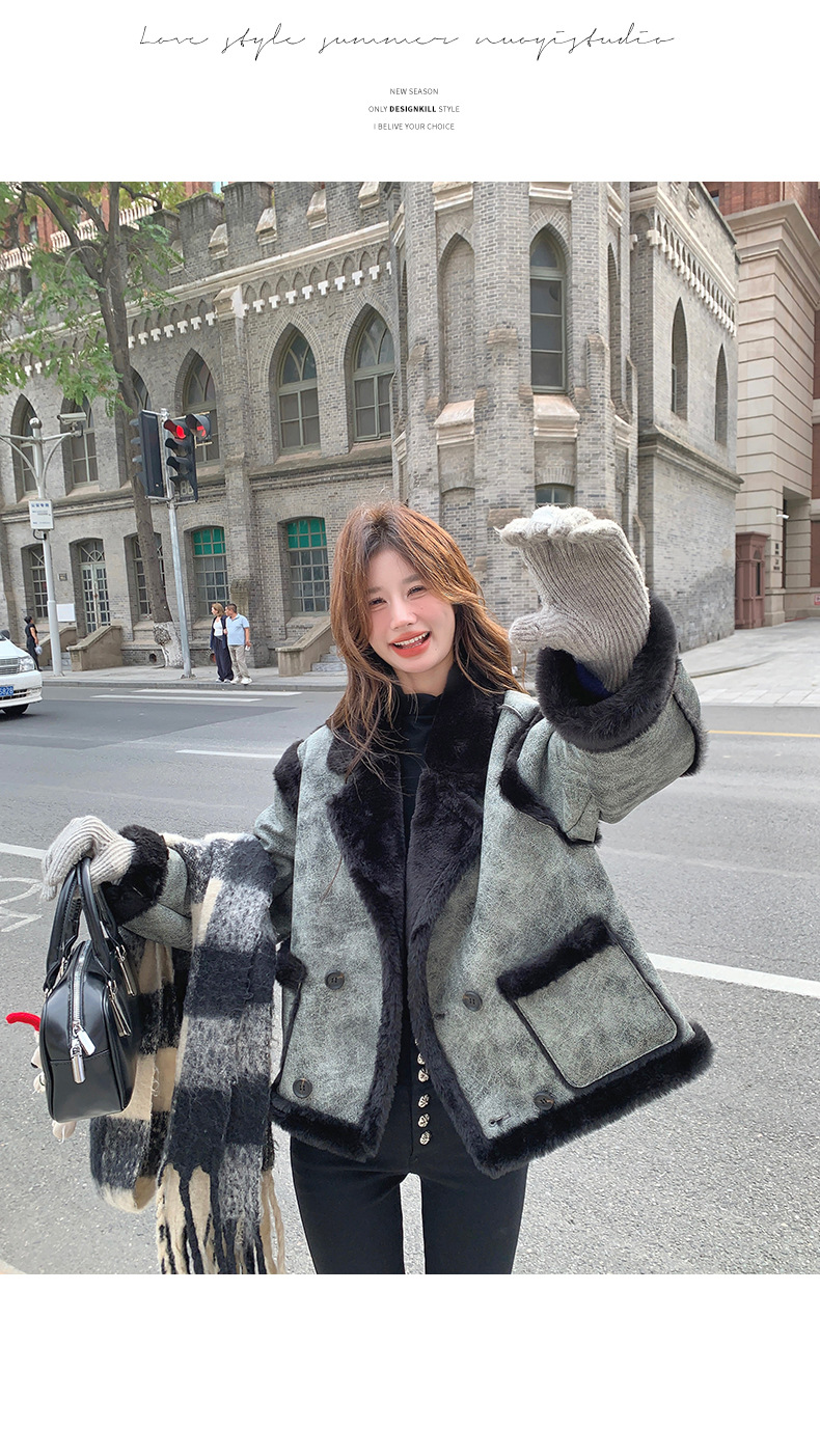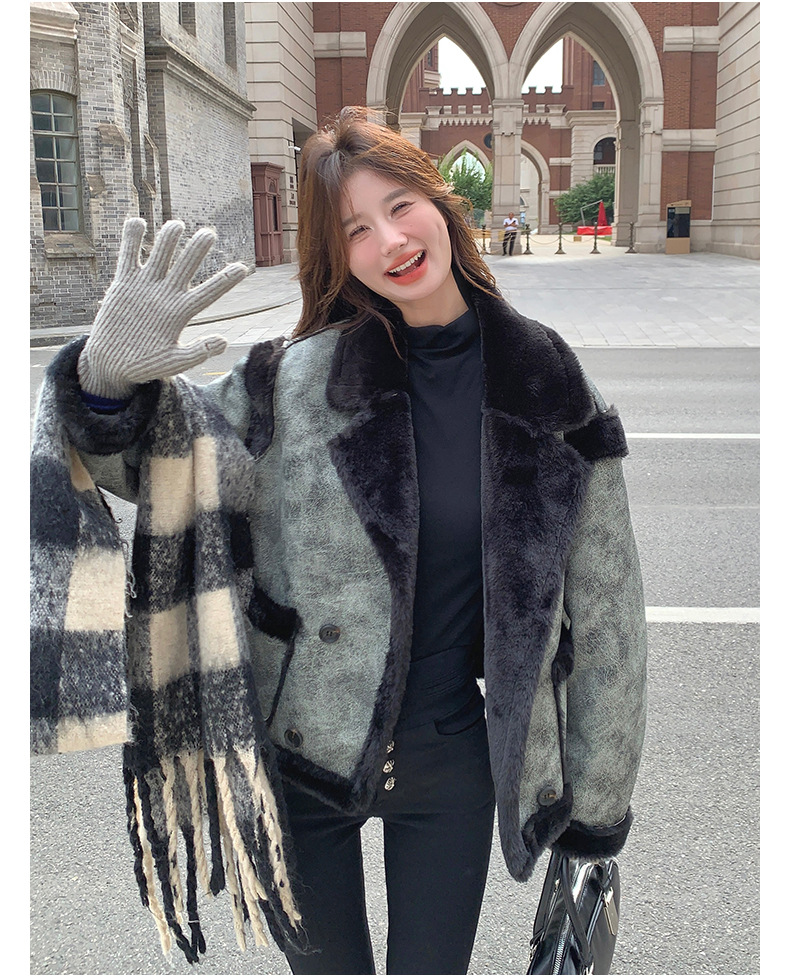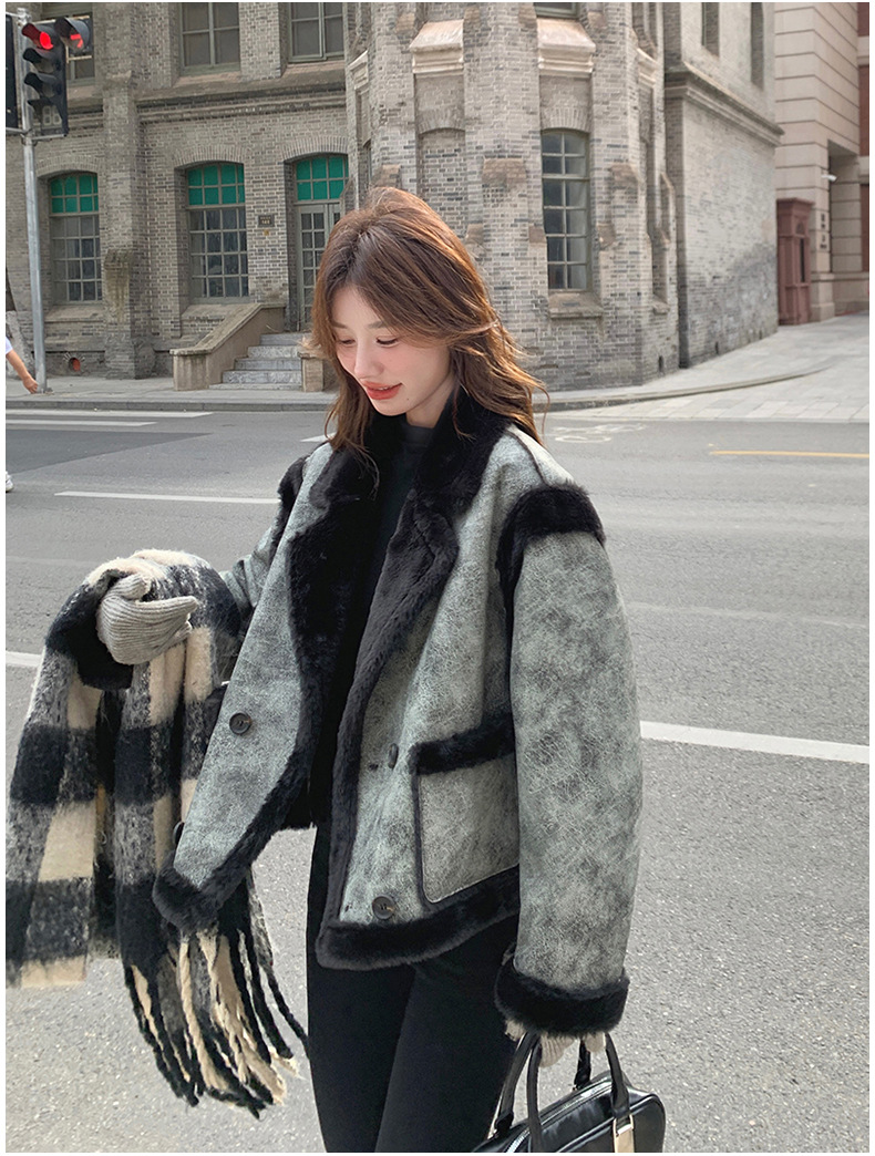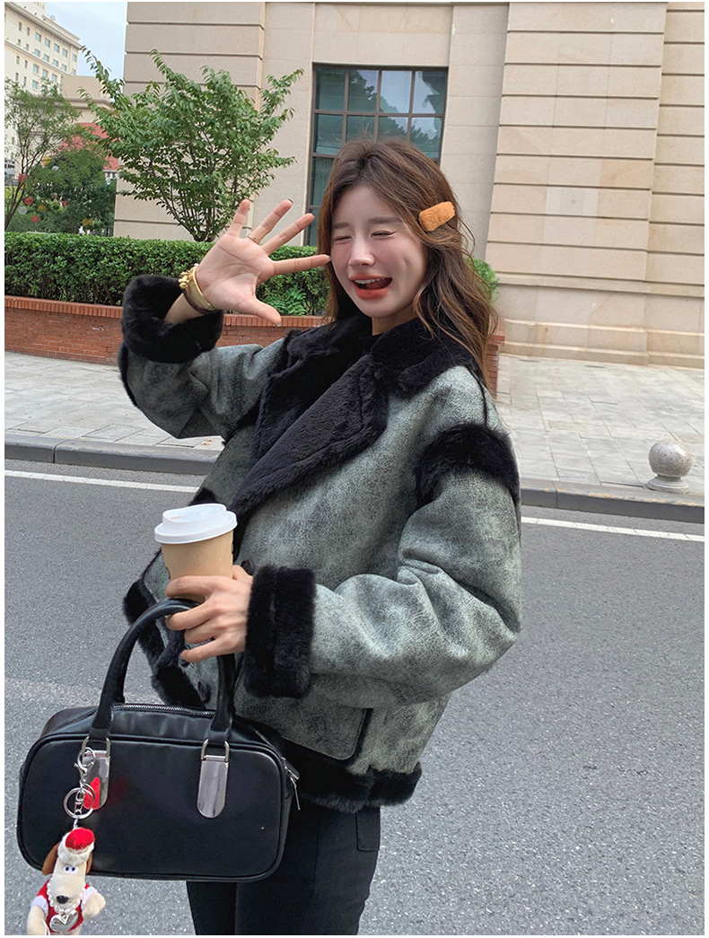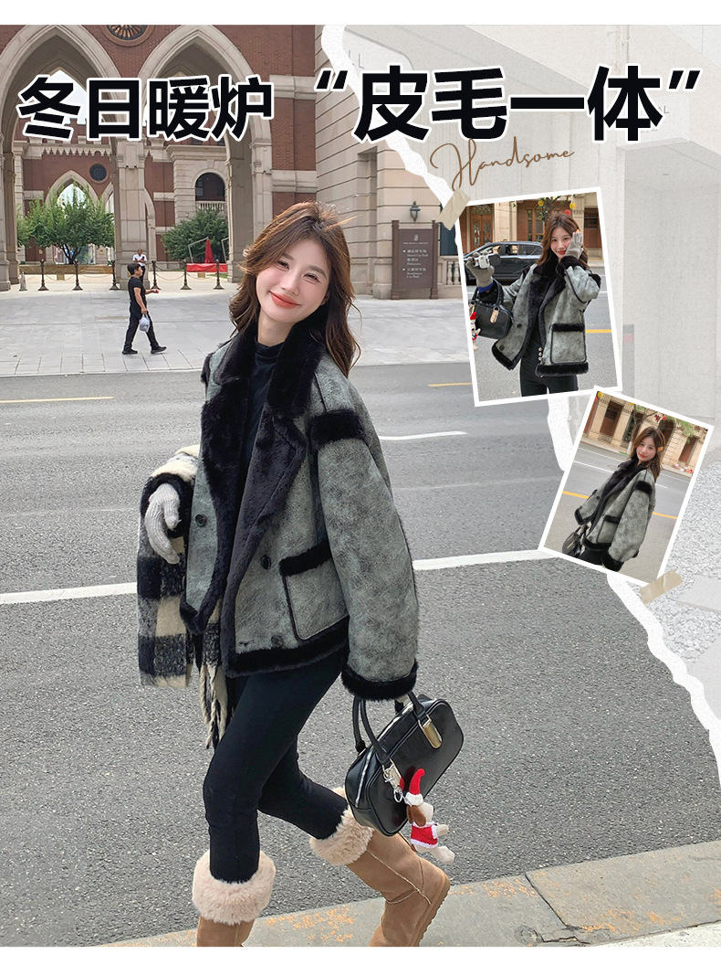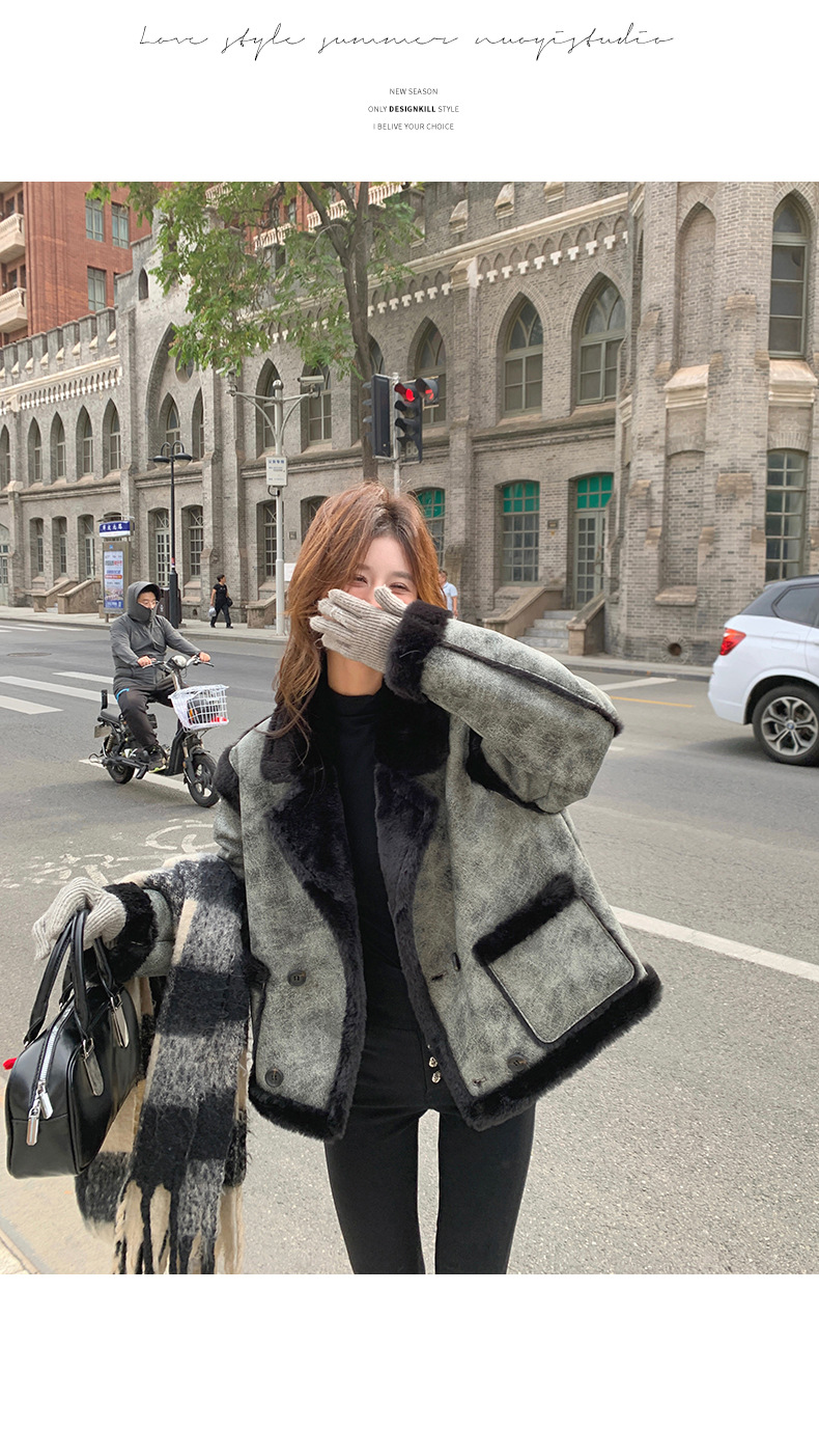 프랑스 세트 칼라 모피 한 여자 겨울 양고기 양모 짧은 코트 기모 오토바이 코튼 패딩 재킷 6077P195K278스토어 가기
