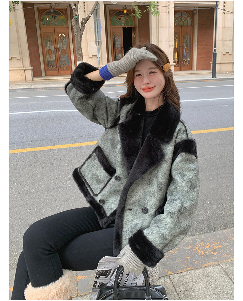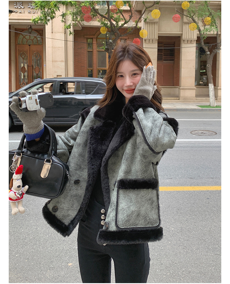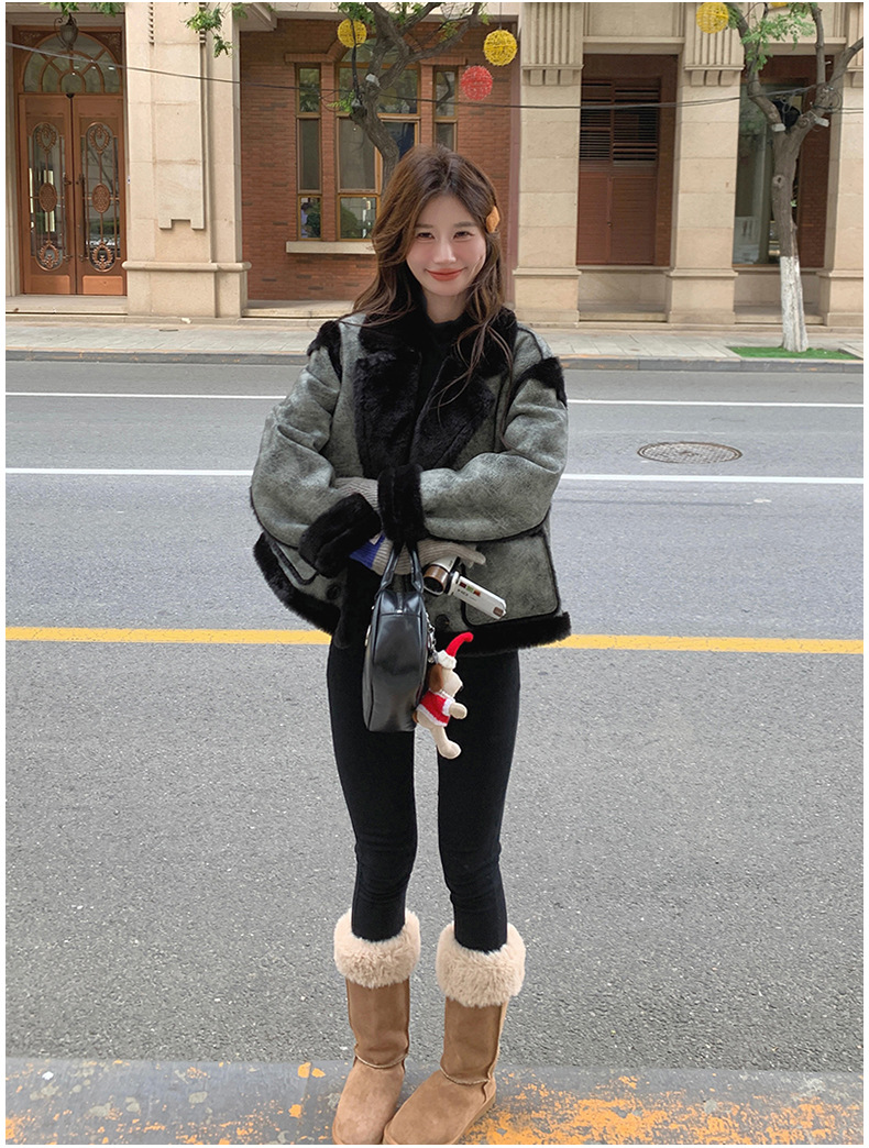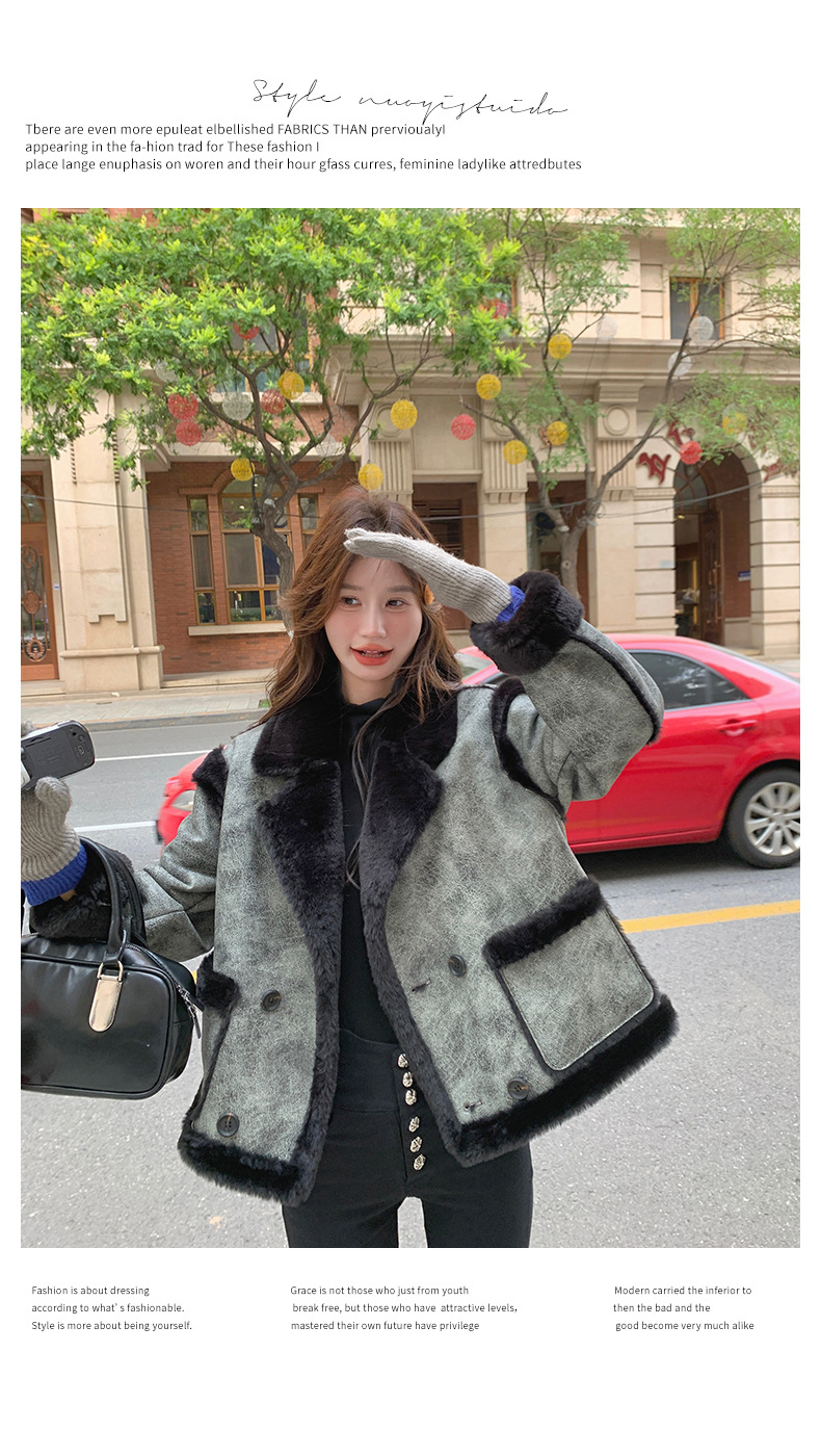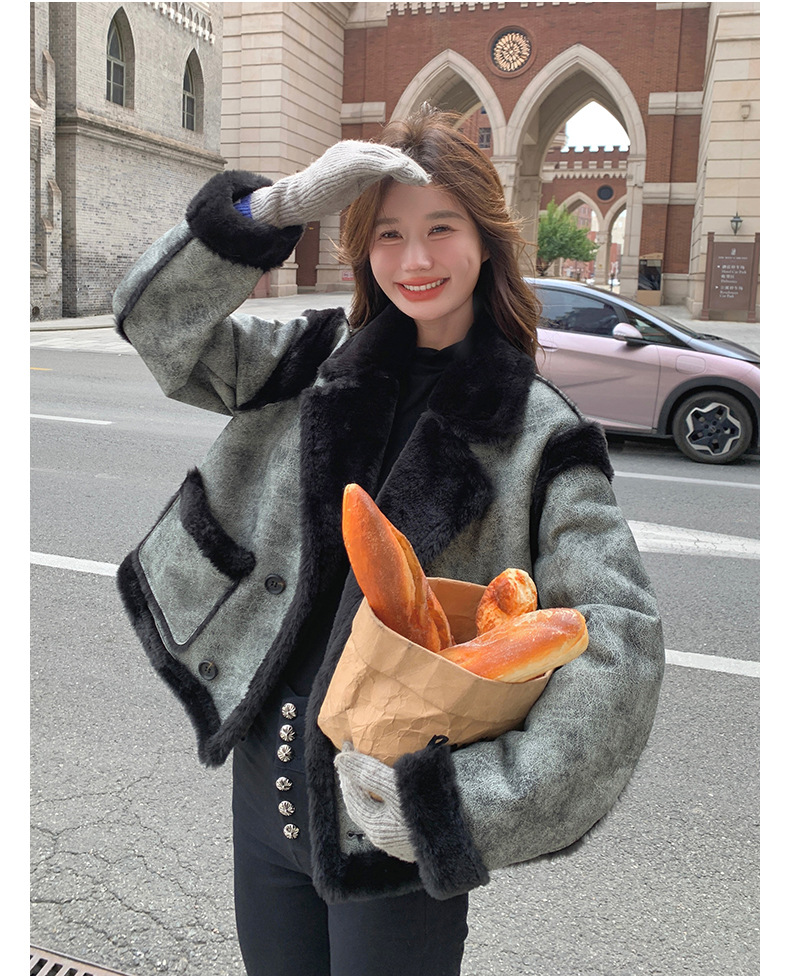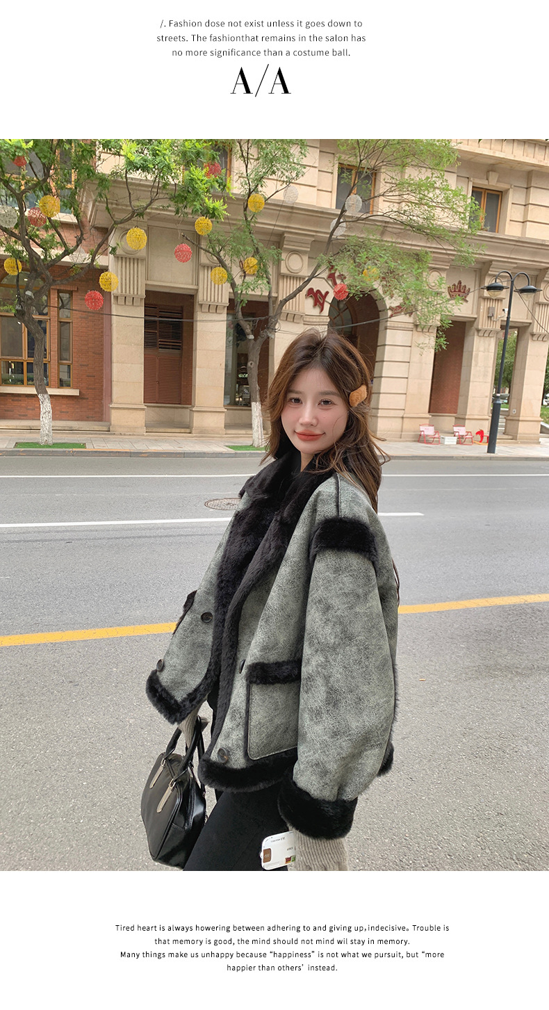 프랑스 세트 칼라 모피 한 여자 겨울 양고기 양모 짧은 코트 기모 오토바이 코튼 패딩 재킷 6077P195K278스토어 가기