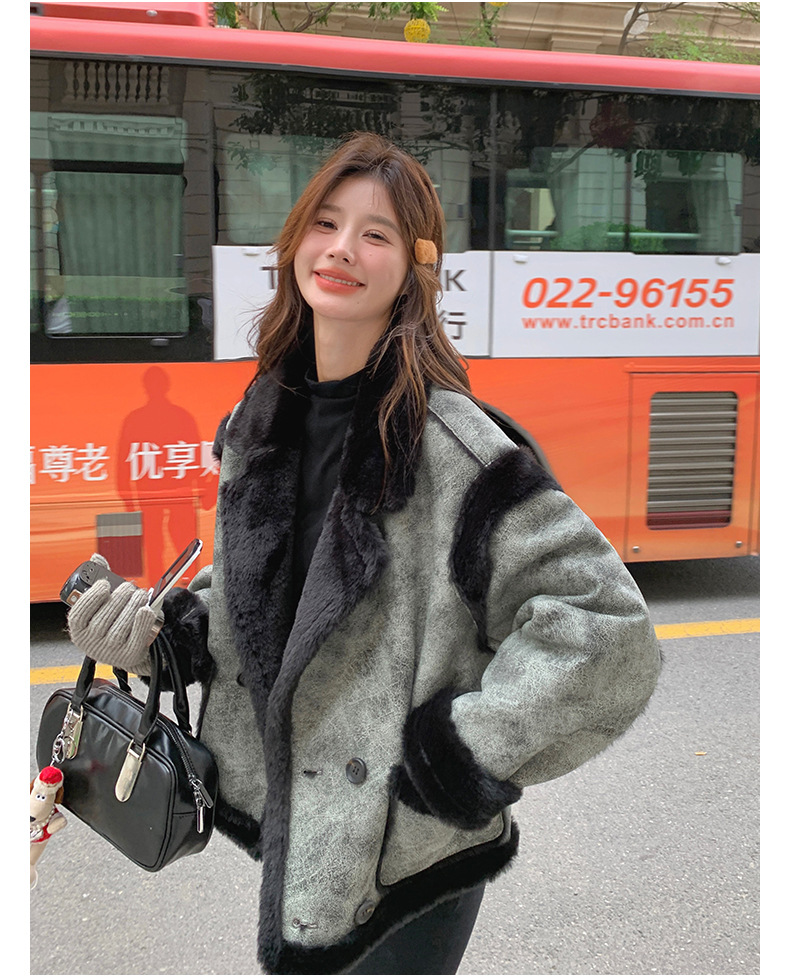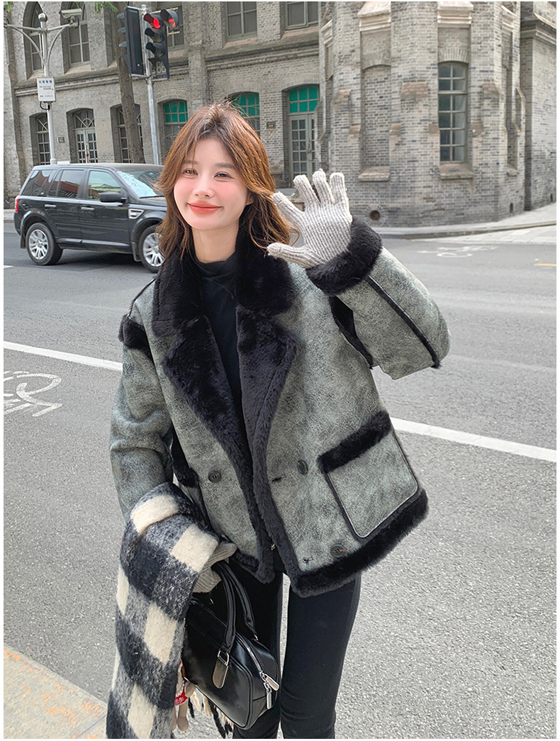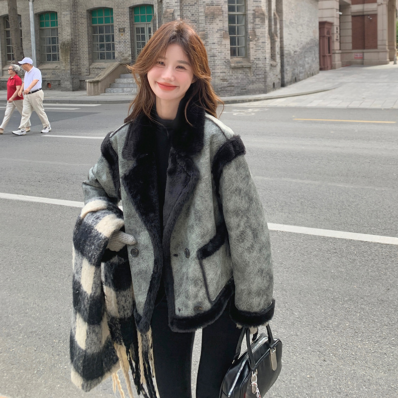 프랑스 세트 칼라 모피 한 여자 겨울 양고기 양모 짧은 코트 기모 오토바이 코튼 패딩 재킷 6077P195K278