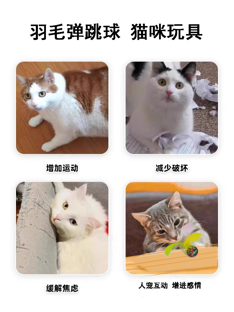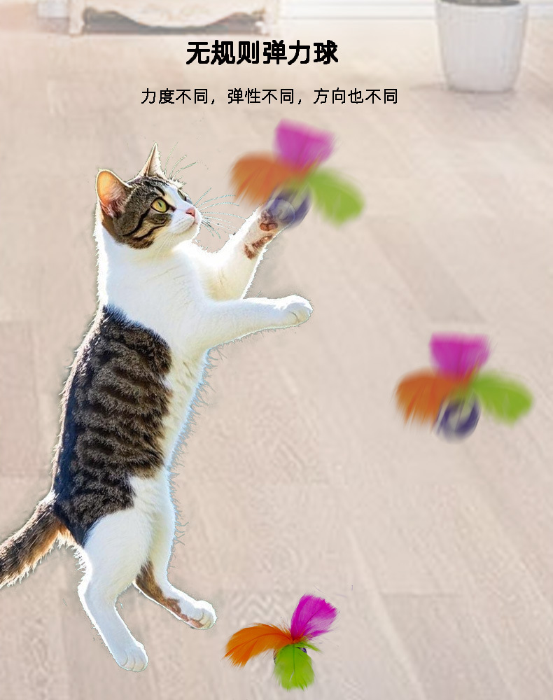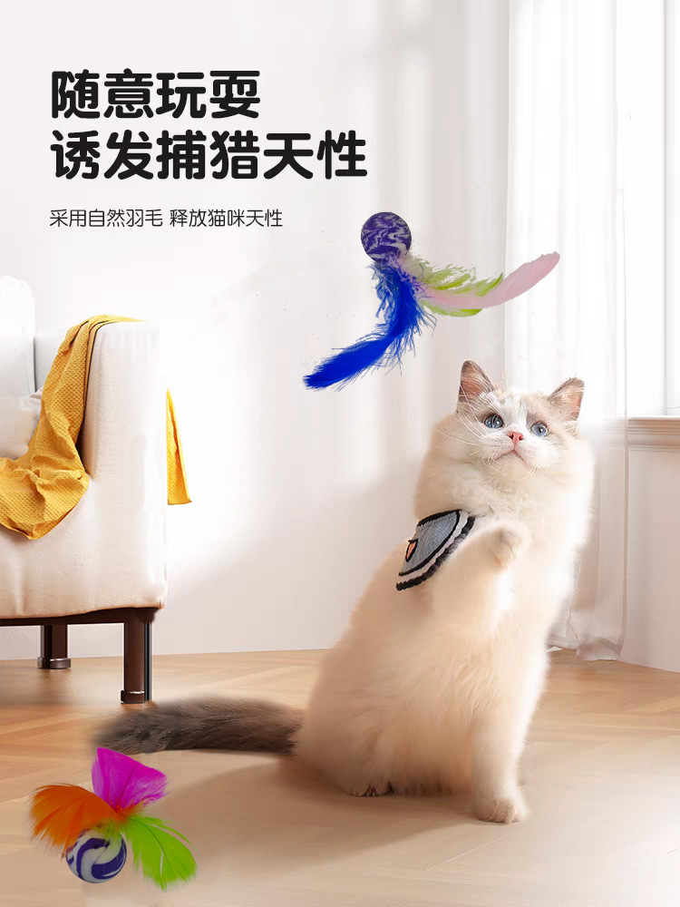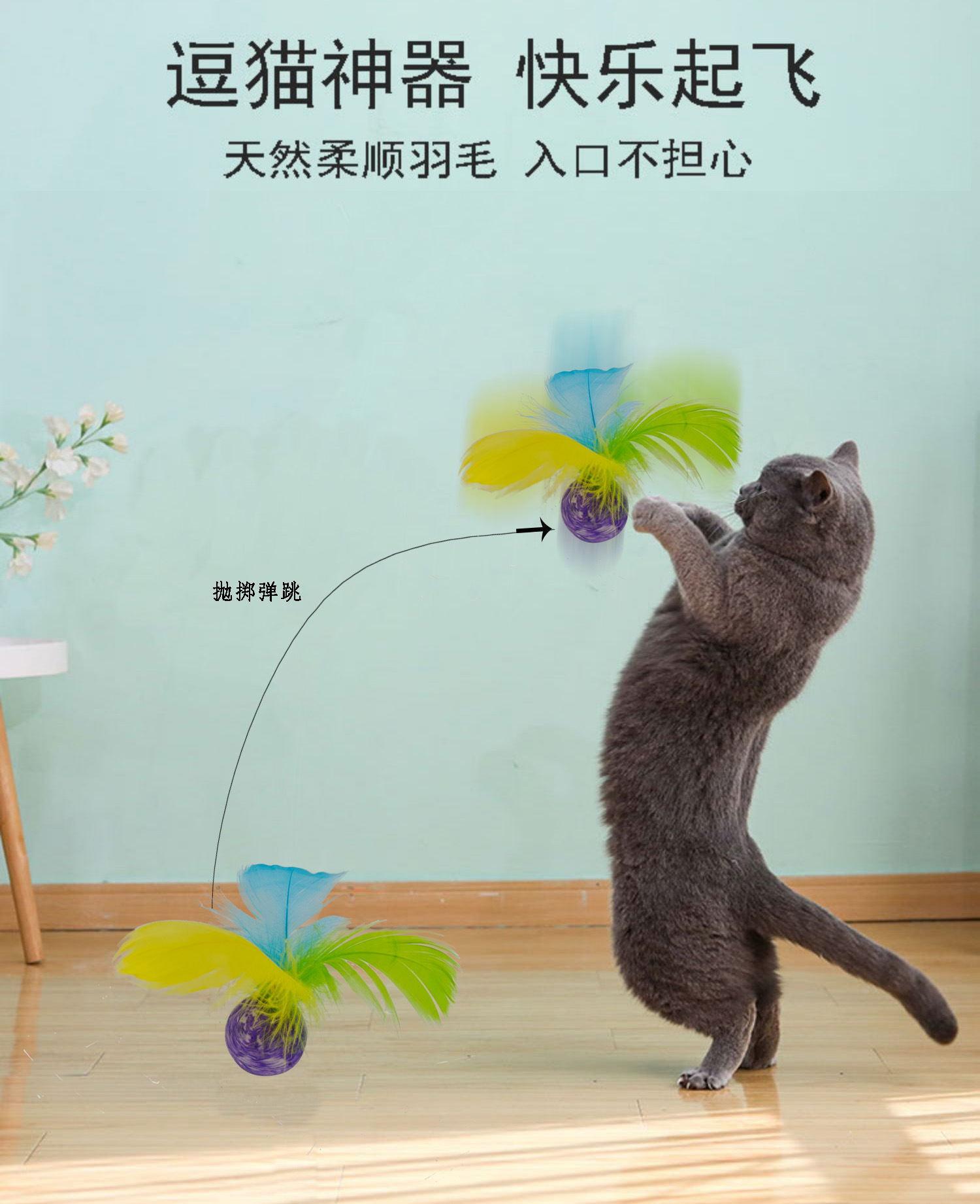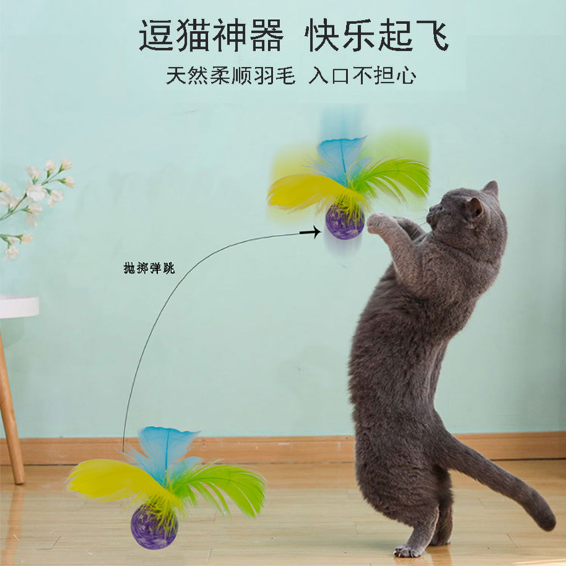 지루함을 덜어주는 국경 간 깃털 탄성 공 셀프 하이 고양이 장난감 공 대화 형 고양이 애완 동물 모피 스틱 공급 점프 공스토어 가기