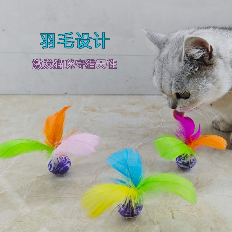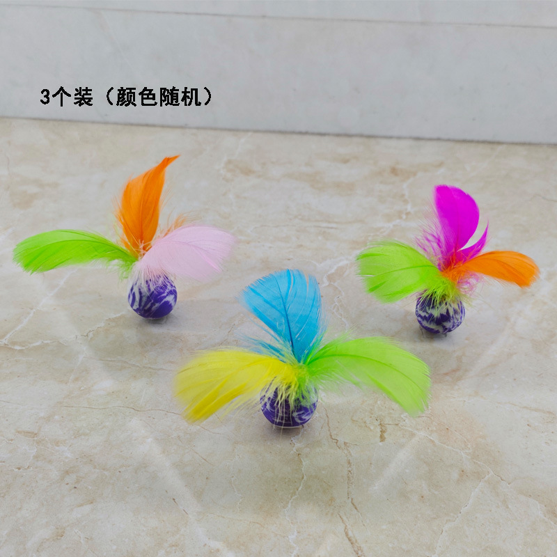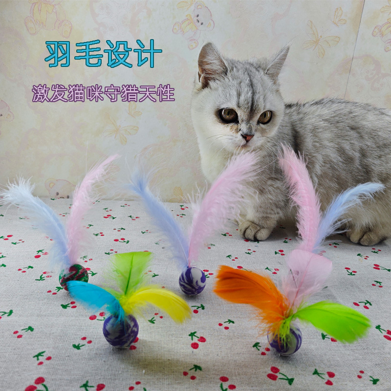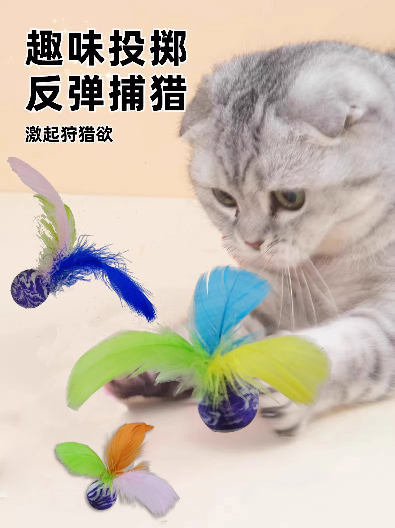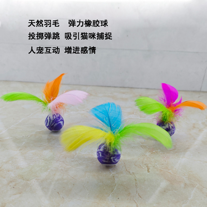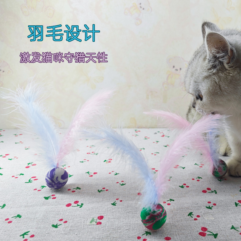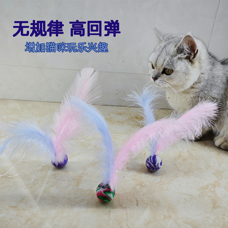 지루함을 덜어주는 국경 간 깃털 탄성 공 셀프 하이 고양이 장난감 공 대화 형 고양이 애완 동물 모피 스틱 공급 점프 공